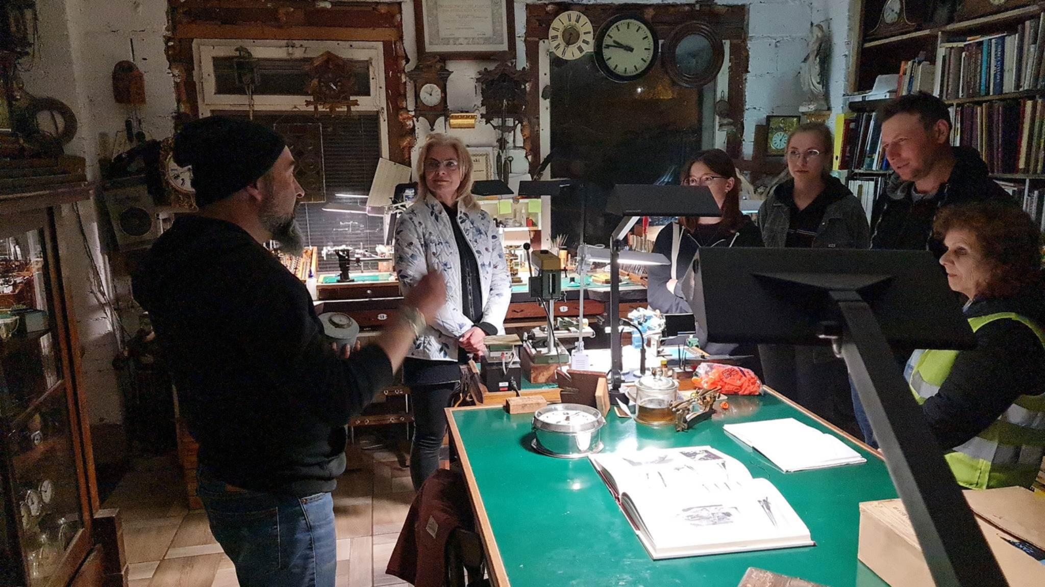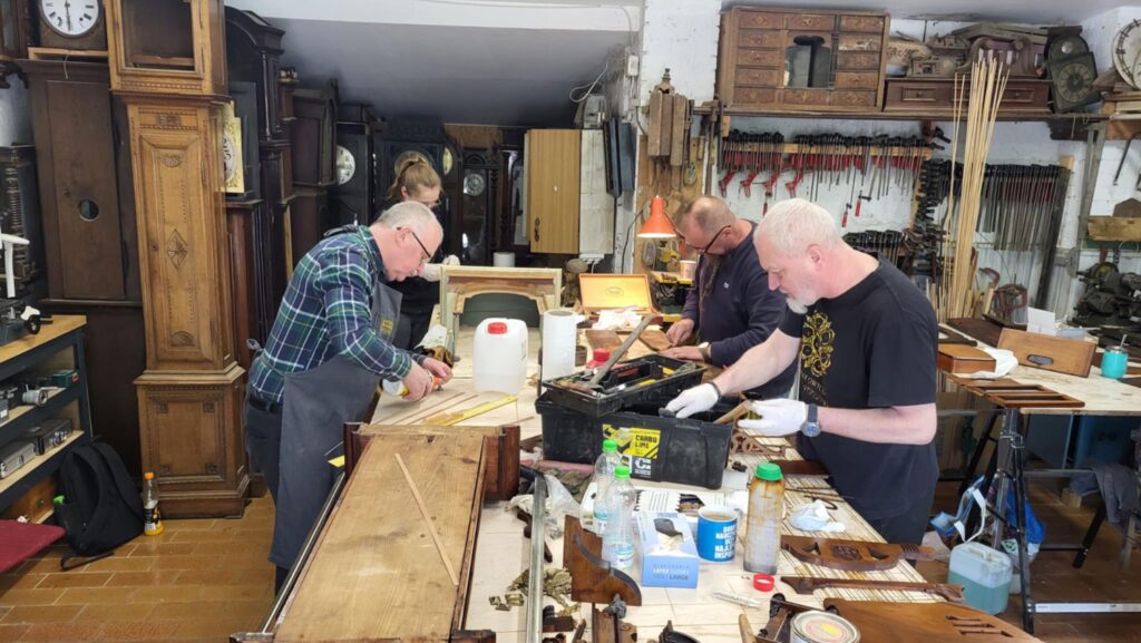 Warsztaty które prowadzę, to forma nauki przez wspólnie wykonywaną pracę, dzielenie się doświadczeniem. Staram się przekazywać techniki, z których ja korzystam. W trakcie spotkań uczestnicy zapoznają się z narzędziami i ich obsługą, poznają materiały potrzebne do renowacji, skrzyń zegarowych. Uczestniczą w całym procesie przywracania zegara do służby. Spotykamy się regularnie raz w miesiącu na dwa dni, są to spotkania weekendowe. Ale i też prowadzę kurs tygodniowy w miesiącach letnich. Podczas tego kursu uczestnik wychodzi z zegarem całkowicie odnowionym przez siebie pod nadzorem prowadzących. Organizuje też warsztaty dla dokształcających się zegarmistrzów, pod kierunkiem wyspecjalizowanych instruktorów, między innymi warsztaty z obsługi tokarki zegarmistrzowskiej, pozłotnictwa czy zastosowaniu chemii w renowacji. W planach mamy jeszcze propozycje z dziedziny galwanotechniki oraz obsługi urządzeń do badania pracy mechanizmu zegarowego.