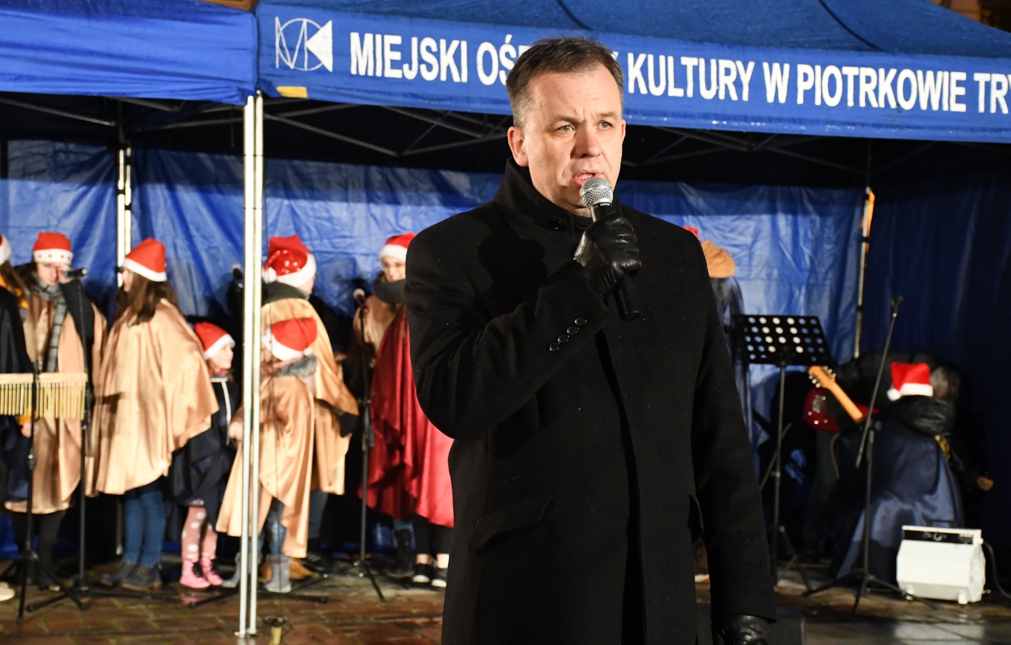 O godzinie 16.00 rozpoczęło się „Przedświąteczne spotkanie z mieszkańcami”. – Dziś spotykamy się w naszej piotrkowskiej wspólnocie, jako taka większa rodzina, aby dzielić się radością i złożyć sobie wzajemnie życzenia na zbliżające się święta narodzenia pańskiego – mówił prezydent Krzysztof Chojniak, rozpoczynając miejską wigilię w Rynku Trybunalskim, po czym złożył przybyłym świąteczno-noworoczne życzenia. – Życzę Państwu pięknych, dobrych, radosnych świąt zarówno w wymiarze rodzinnym, osobistym i tym dotyczącym naszego miasta. Niech będą to święta wyjątkowe, pięknie przeżyte i żeby inspirowały w kolejnych dniach nowego 2022 roku. Proszę również o przekazanie tych życzeń swoim bliskim. Pięknych świąt bożego narodzenia! – mówił prezydent.