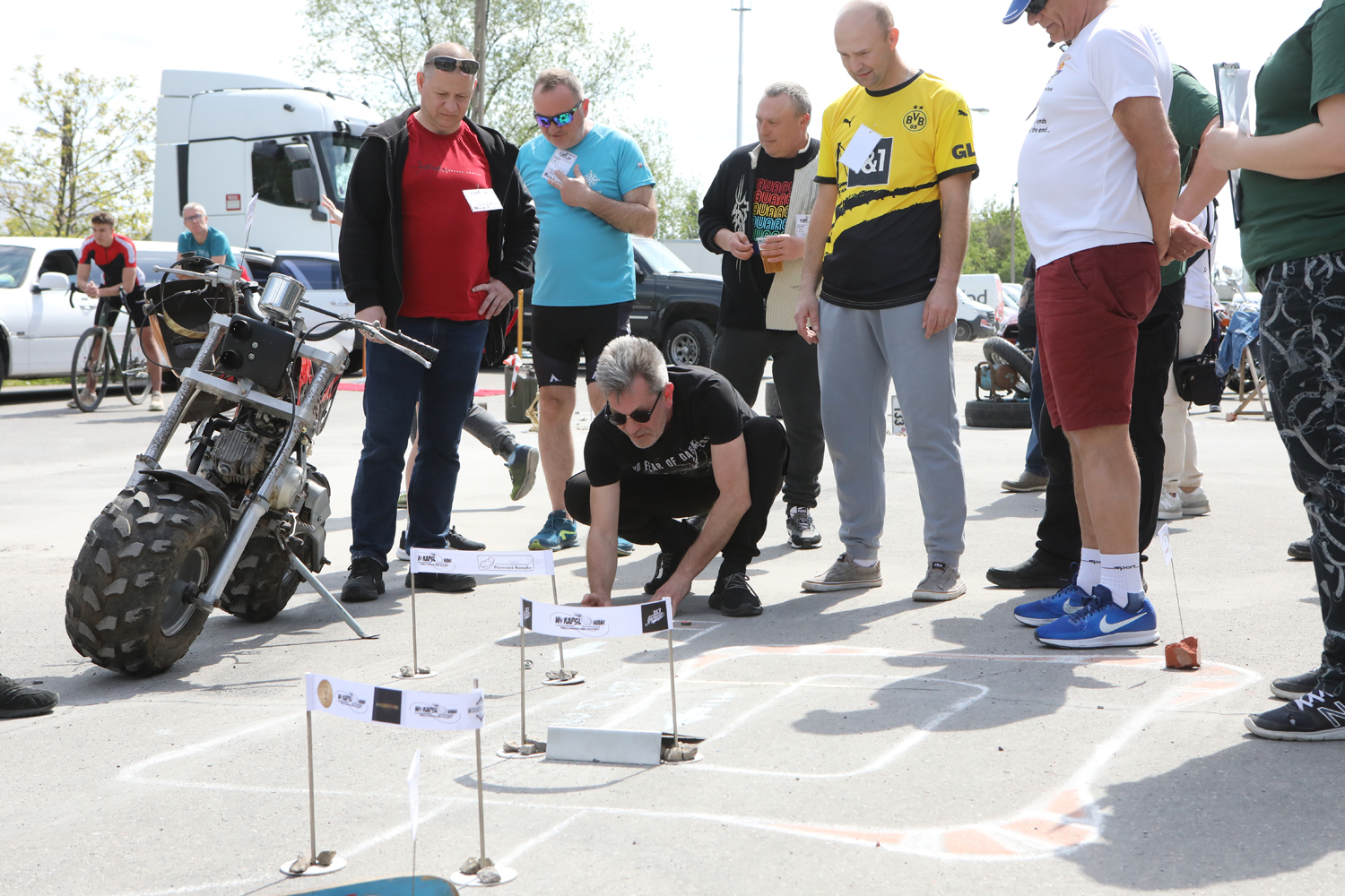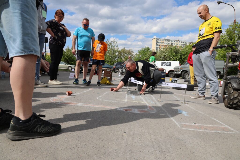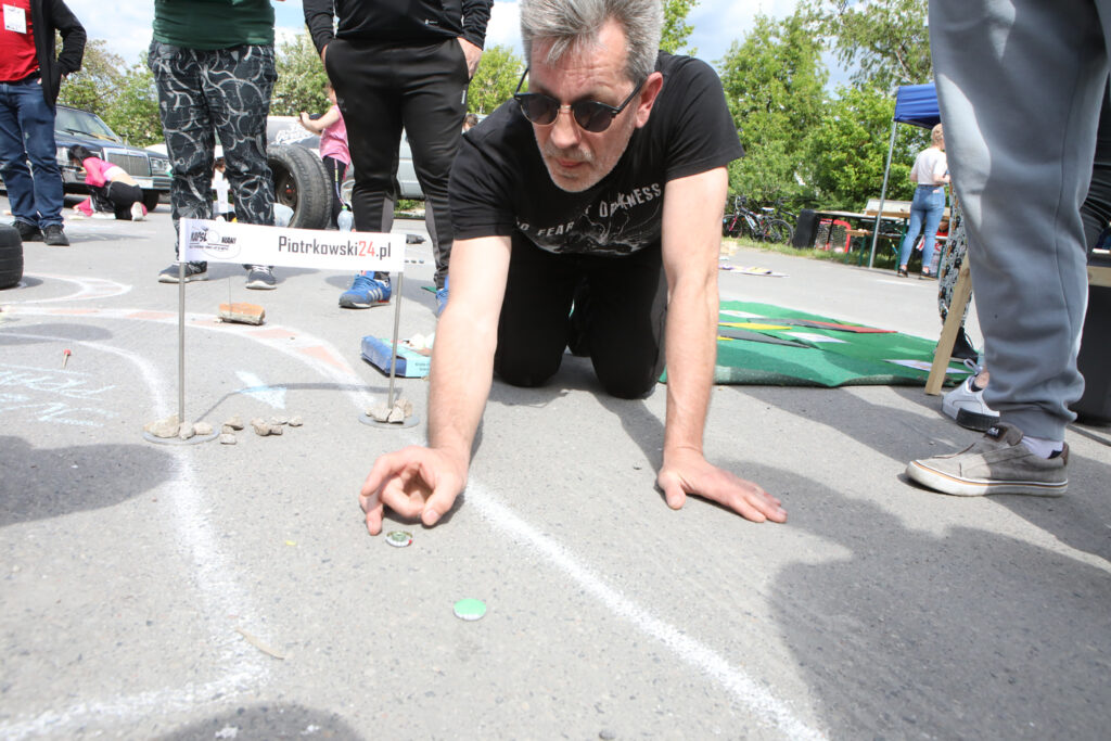 W turnieju wzięło udział kilkunastu zawodników. Zacięta rywalizacja odbywała się na dwóch torach. – Pomysł narodził się w głowie Maćka Szyposzyńskiego z 313 Garage. Zaproponował współprace przy organizacji i tak przeszliśmy od słów do czynów. To doskonała zabawa, ale i cel charytatywny, bowiem zbieramy pieniądze na leczenie i rehabilitację Mirosława Świecha – mówi Maciej Uhle. – W zeszłym tygodniu ze względu na niekorzystną aurę, nie udało się zorganizować tej imprezy, ale dziś pogoda wprost znakomita. Trzeba było namalowac tory. Zaczeliśmy po 6 rano. Są tunele, hopki, przeszkody i sporo zakrętów – dodaje.