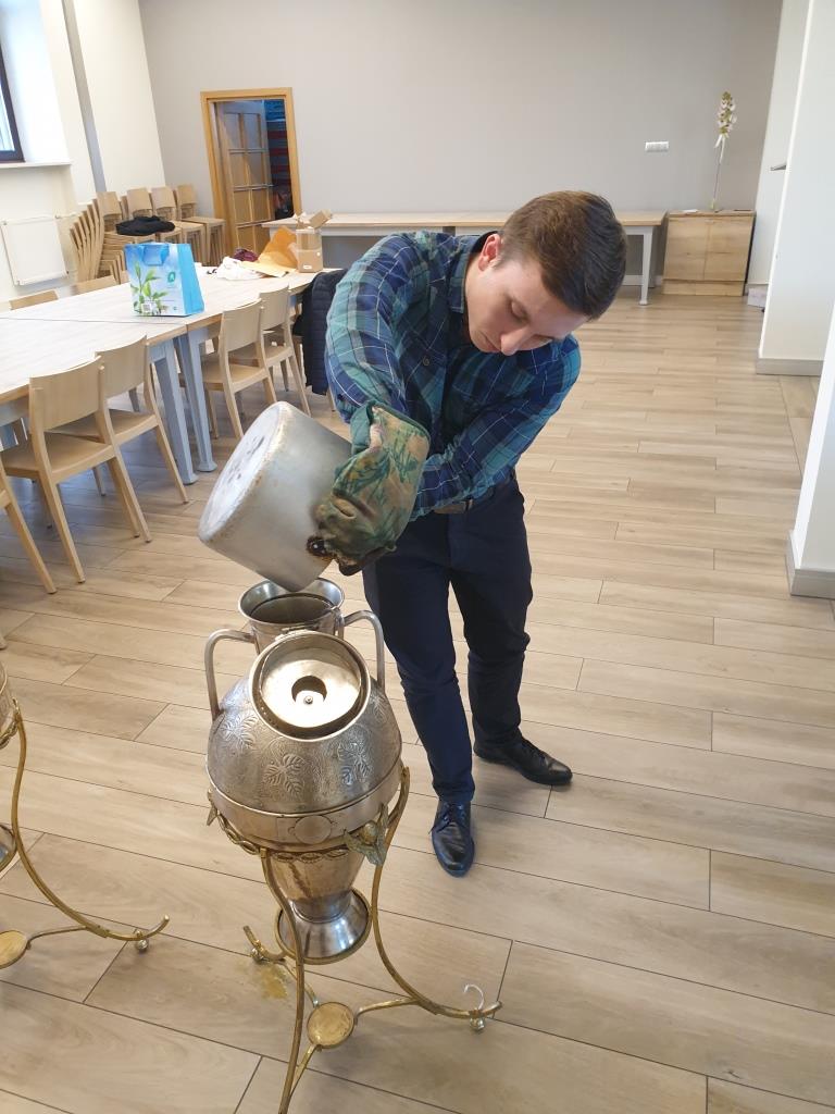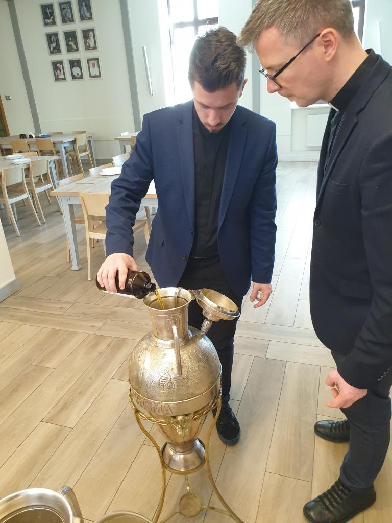 W Wyższym Seminarium Duchownym w Łodzi ksiądz Hubert Kempiński – ceremoniarz diecezjalny wraz z dwoma ceremoniarzami seminaryjnymi – kl. Krystianem Leśniewskim i kl. Piotrem Wojczykiem przygotowywali oleje, które w czwartek zostaną pobłogosławione w łódzkiej katedrze.