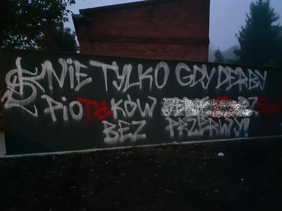 Pierwszy raz (w nocy z środy na czwartek) zrobili to prawdopodobnie sympatycy Łódzkiego Klubu Sportowego, bowiem napisy są skierowane do kibiców Widzewa. Kolejnej nocy (z czwartku na piątek) niestety sytuacja się powtórzyła. Jednak tym razem to prawdopodobnie kibice Widzewa zmienili napis tak, by był dopiec kibicom ŁKS.