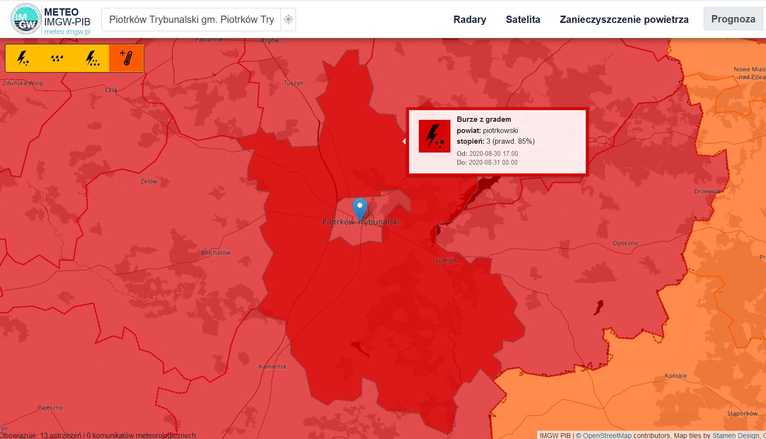 IMGW oraz Rządowe Centrum Bezpieczeństwa wydały ostrzeżenie 3 stopnia o możliwości wystąpienia silnych burz z gradem.