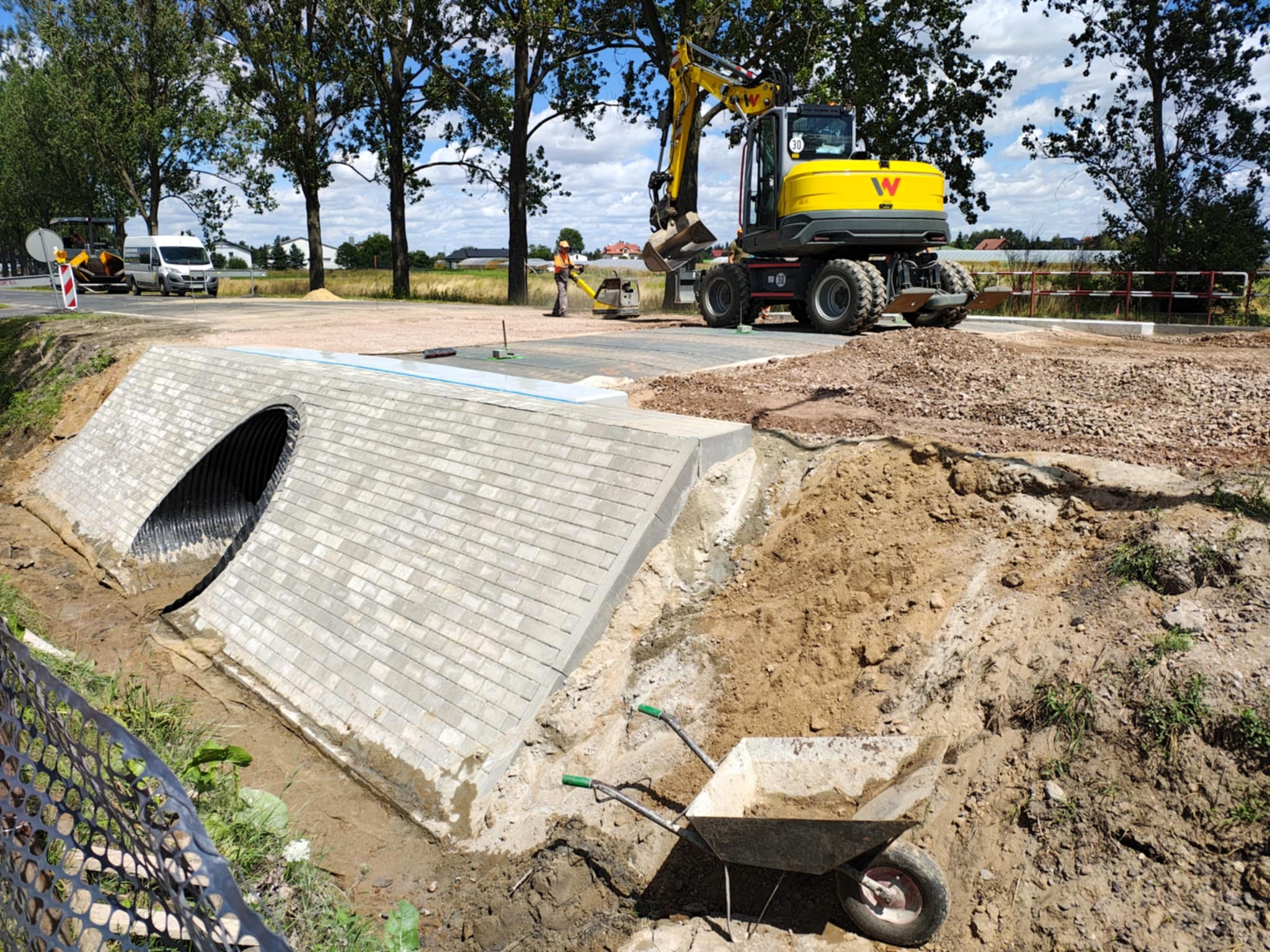 Przepust na ul. Łódzkiej jest prawie gotowy, a to oznacza, że odcinek drogi między ul. Gęsią a Kasztelańską wkrótce będzie przejezdny. Obecnie trwa już układanie warstw masy bitumicznej, a w kolejnych dniach wykonawca zamontuje bariery, pojawi się także oznakowanie.
