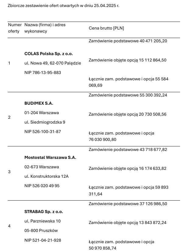 Remont 9-kilometrowego odcinka to zamówienie podstawowe i jego dotyczą podane kwoty. Ponadto przetarg obejmuje remont kolejnych 3 km jako rozszerzenie zamówienia podstawowego. Całość odcinka przeznaczonego do remontu liczy 12 km.