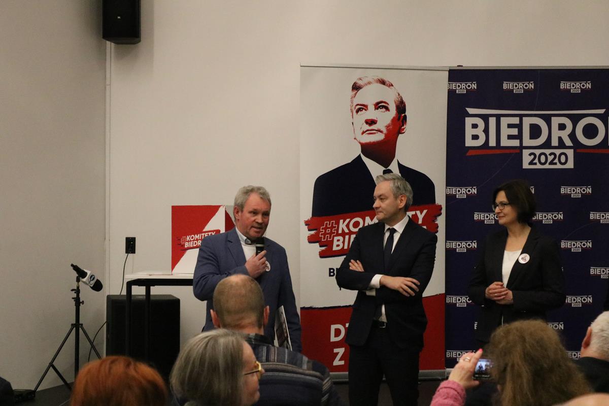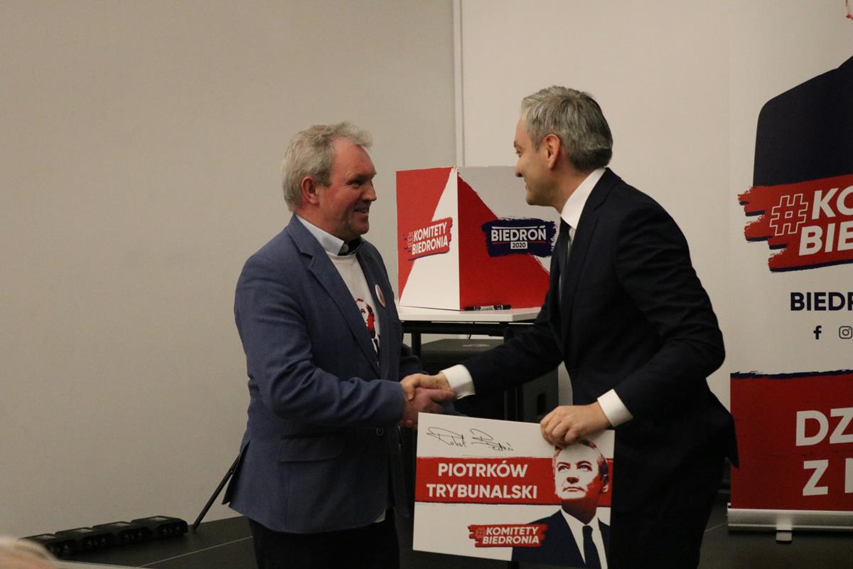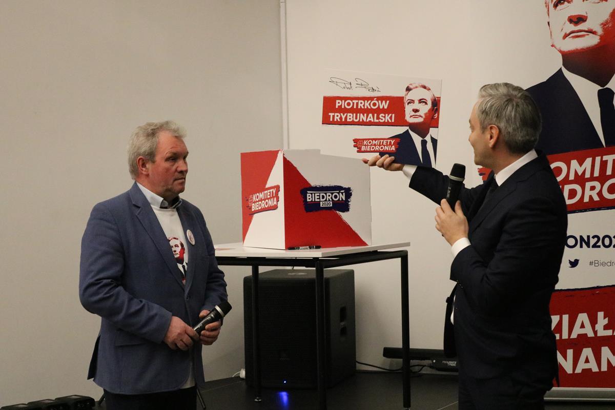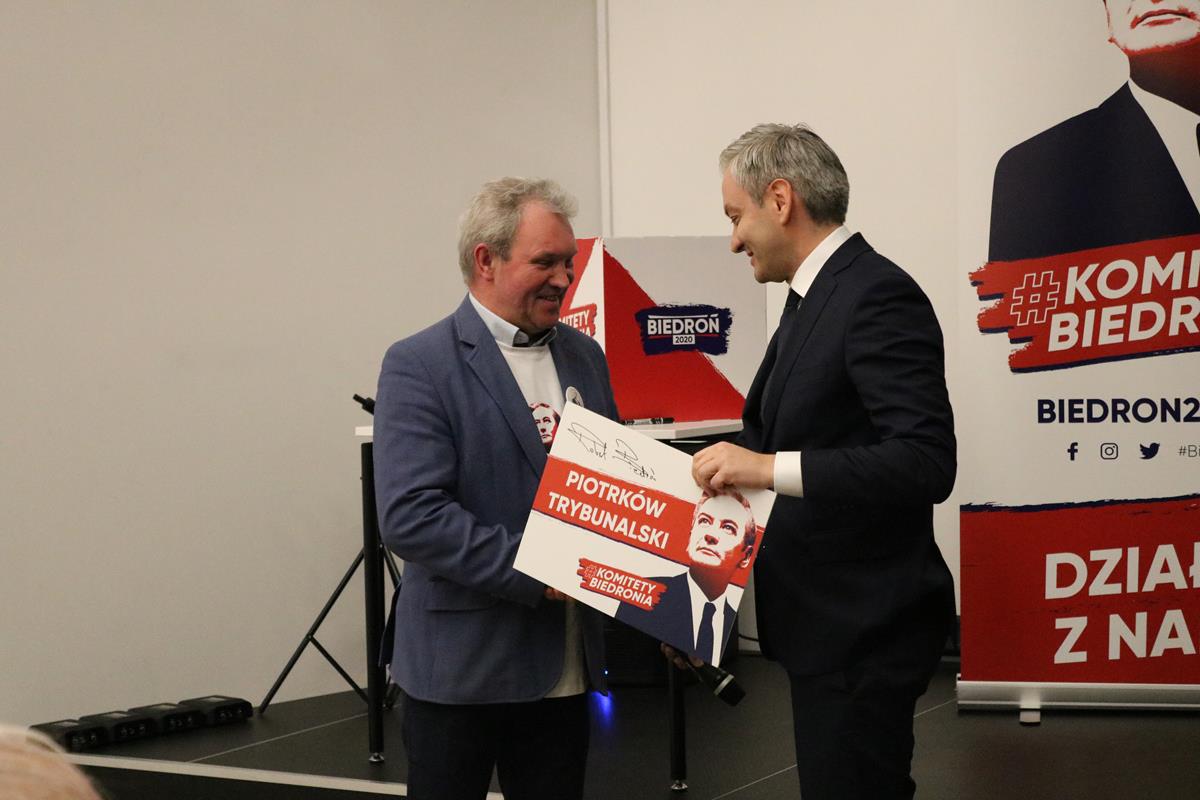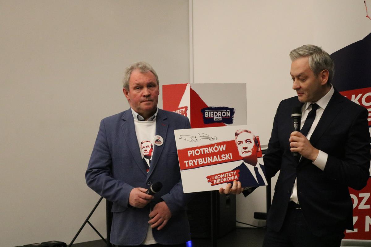 Robert Biedroń zawiązał w Piotrkowie swój lokalny komitet poparcia. Jego przewodniczącym został Grzegorz Adamczyk, były wicestarosta piotrkowski, od lat związany z SLD. – Wszystkich komitetów będzie 380, czyli tyle samo ile jest w Polsce powiatów. Dziś zakładamy 346. „Komitet Biedronia”, to ruch społeczny, który ma na celu zebrać wszystkich ludzi dobrej woli, którzy nie chcą, żeby było tak jak jest, ale żebyśmy wybrali prezydenta który będzie realizował konstytucję od pierwszego do ostatniego artykułu – mówił Robert Biedroń.