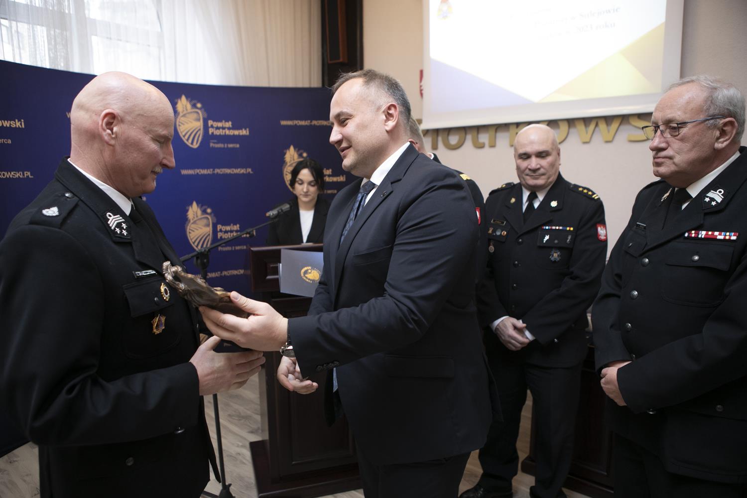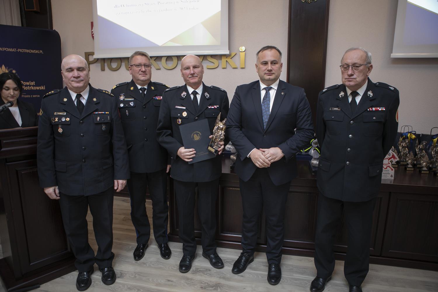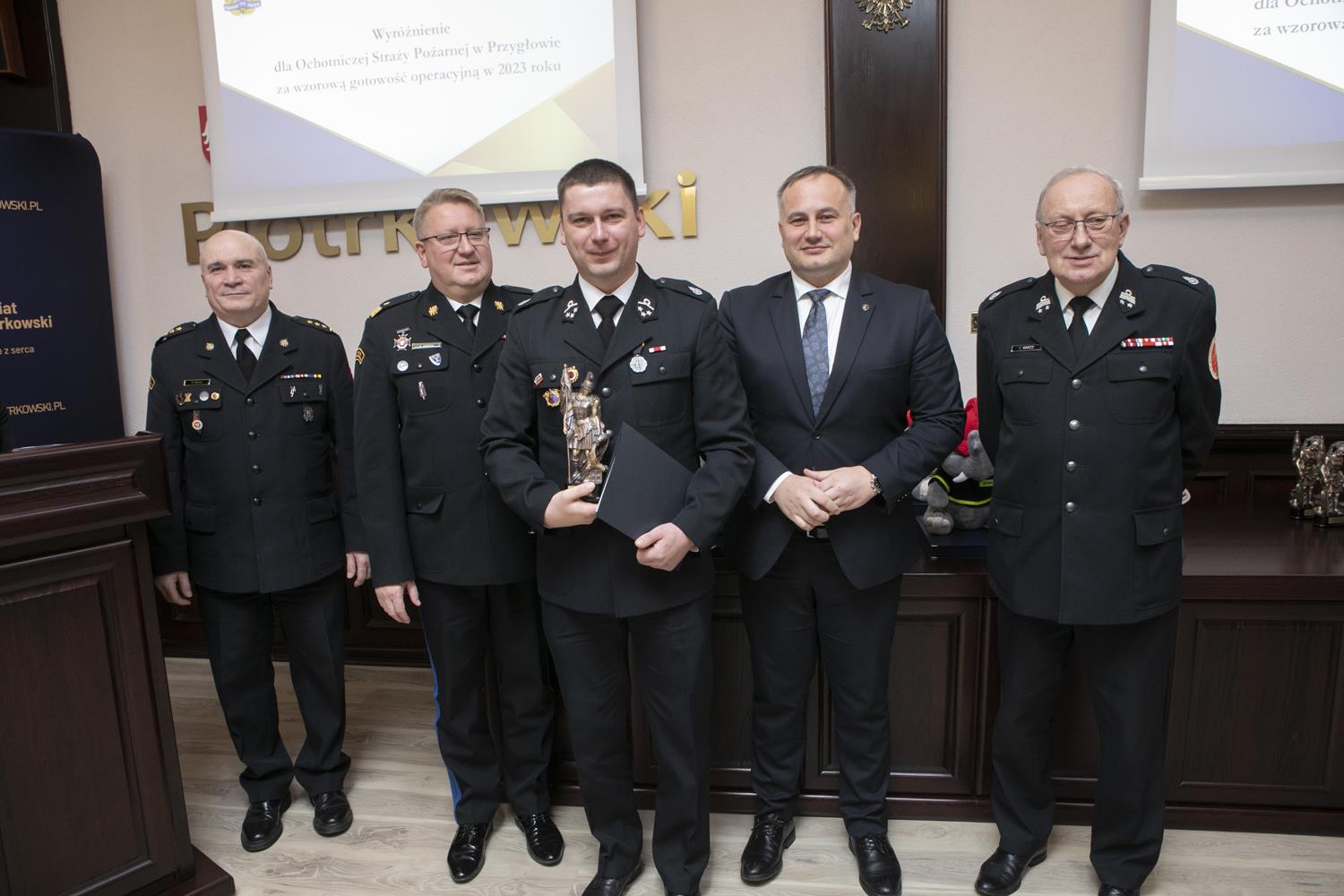 Ubiegłoroczną działalność w zakresie ochrony przeciwpożarowej i akcji ratowniczych podsumowano podczas Narady rocznej Starosty Powiatu Piotrkowskiego, która odbyła się w piotrkowskim starostwie. W podziękowaniu za całoroczną służbę starosta Piotr Wojtysiak wraz z Łódzkim Komendantem Wojewódzkim Państwowej Straży Pożarnej nadbrygadierem Grzegorzem Janowskim, Prezesem Zarządu Oddziału Powiatowego Związku Ochotniczych Straży Pożarnych w Piotrkowie Trybunalskim druhem Tadeuszem Karczem i Komendantem Miejskim Państwowej Straży Pożarnej w Piotrkowie Trybunalskim st. bryg. Pawłem Delą, nagrodził druhów, jednostki OSP oraz młodzieżowe drużyny pożarnicze, którzy wyróżnili się swoją działalnością w strukturach OSP w 2023 roku.