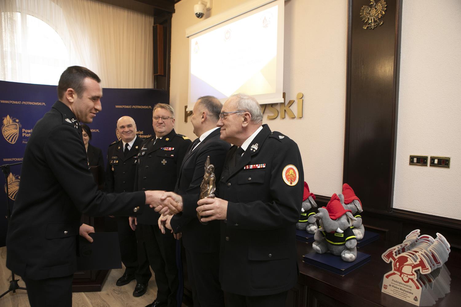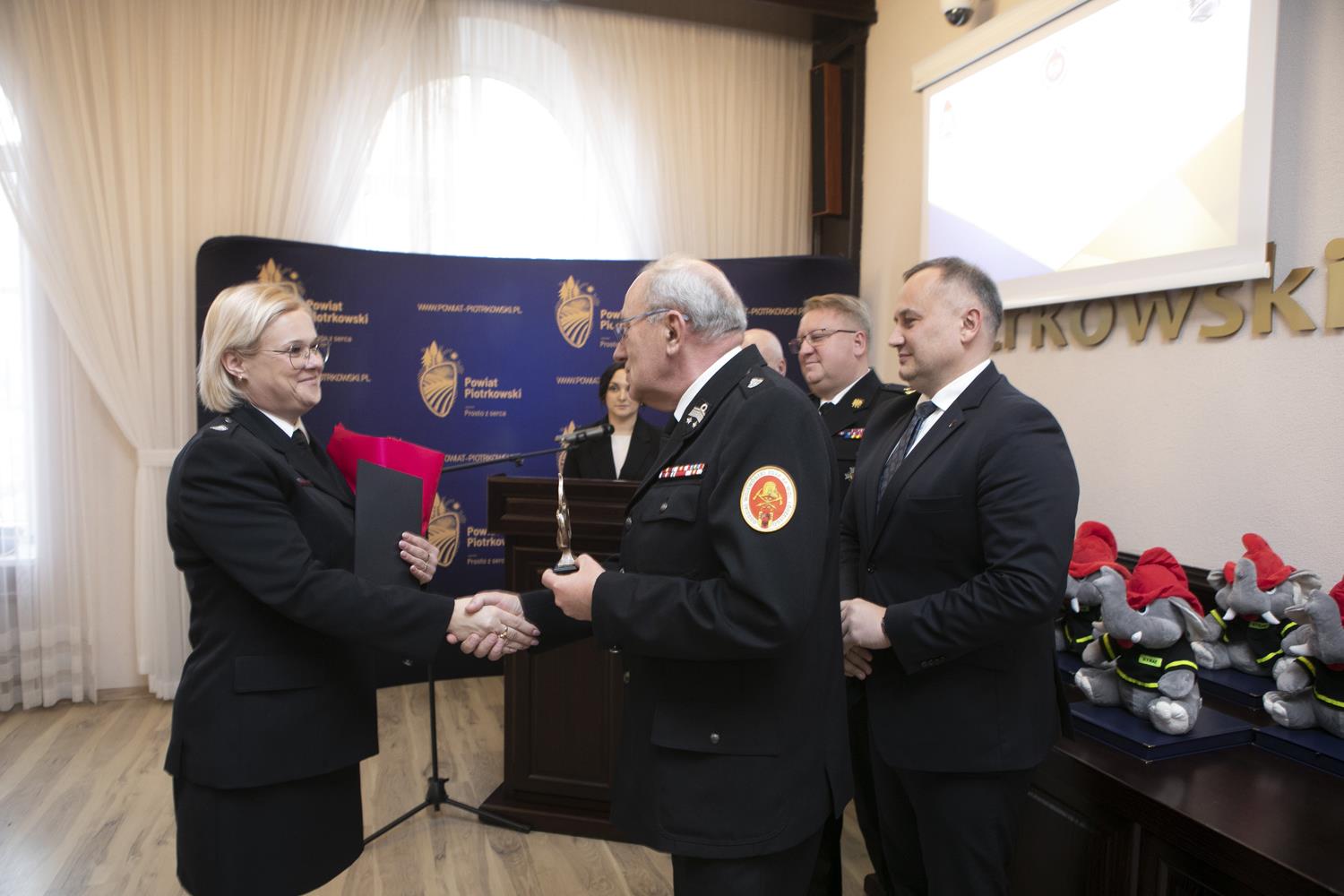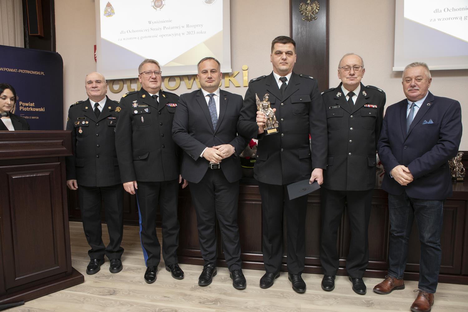 Ubiegłoroczną działalność w zakresie ochrony przeciwpożarowej i akcji ratowniczych podsumowano podczas Narady rocznej Starosty Powiatu Piotrkowskiego, która odbyła się w piotrkowskim starostwie. W podziękowaniu za całoroczną służbę starosta Piotr Wojtysiak wraz z Łódzkim Komendantem Wojewódzkim Państwowej Straży Pożarnej nadbrygadierem Grzegorzem Janowskim, Prezesem Zarządu Oddziału Powiatowego Związku Ochotniczych Straży Pożarnych w Piotrkowie Trybunalskim druhem Tadeuszem Karczem i Komendantem Miejskim Państwowej Straży Pożarnej w Piotrkowie Trybunalskim st. bryg. Pawłem Delą, nagrodził druhów, jednostki OSP oraz młodzieżowe drużyny pożarnicze, którzy wyróżnili się swoją działalnością w strukturach OSP w 2023 roku.