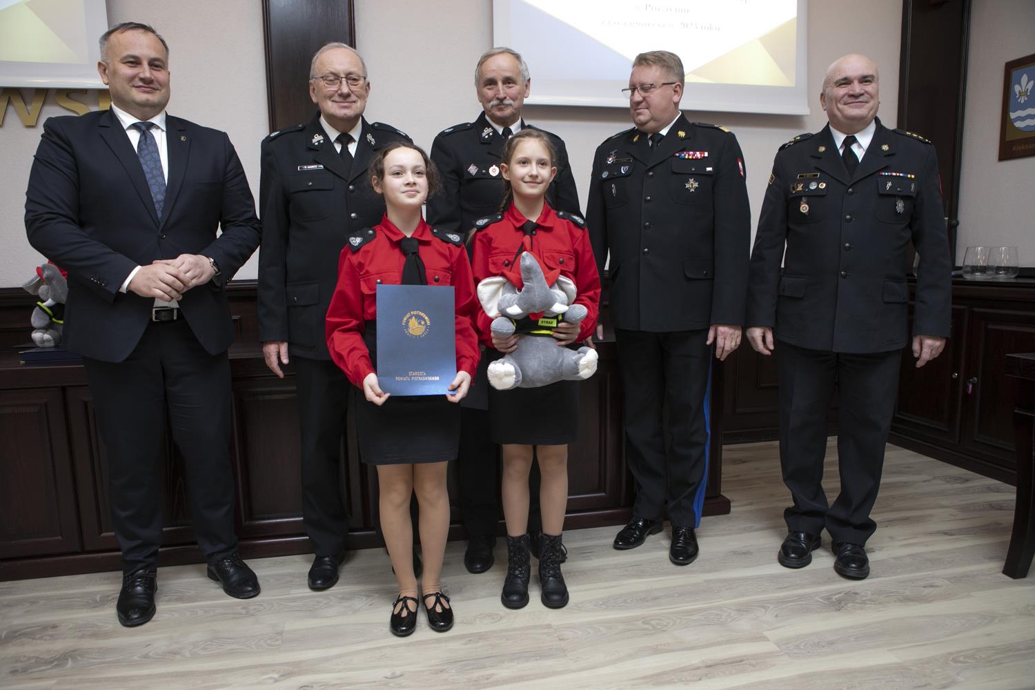 W podziękowaniu za zaangażowanie, podejmowane inicjatywy, udział i osiągnięcia w I Powiatowych Mistrzostwach Pierwszej Pomocy oraz zawodach sportowo – pożarniczych wyróżniono 7 z 71 działających Młodzieżowych Drużyn Pożarniczych z powiatu piotrkowskiego: