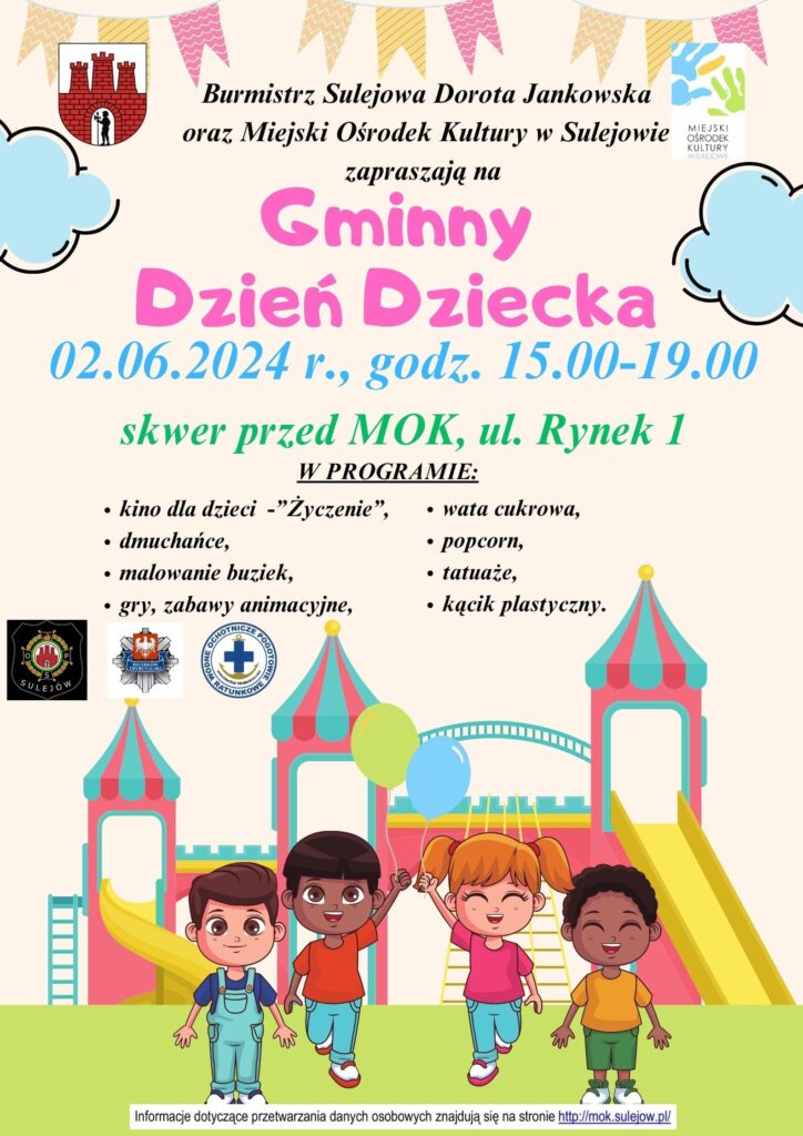 Dla wszystkich dzieci to szczególny dzień, dlatego sulejowski urząd przygotował niespodziankę dla najmłodszych mieszkańców. Dorota Jankowska, burmistrz Sulejowa oraz pracownicy Miejskiego Ośrodka Kultury w Sulejowie zapraszają na piknik, który odbędzie się w najbliższą niedzielę, 2 czerwca 2024 roku na skwerze przed sulejowskim MOK-iem, przy ulicy Rynek 1.