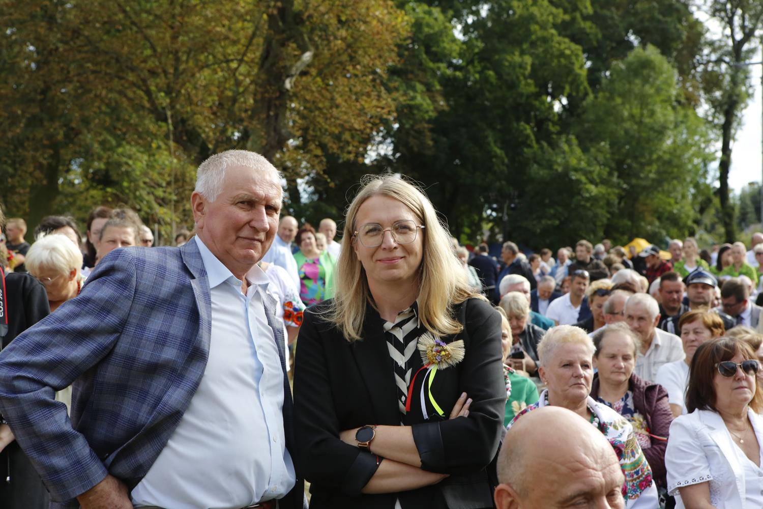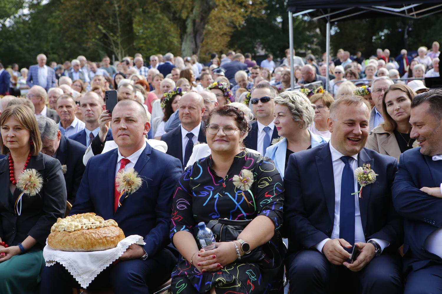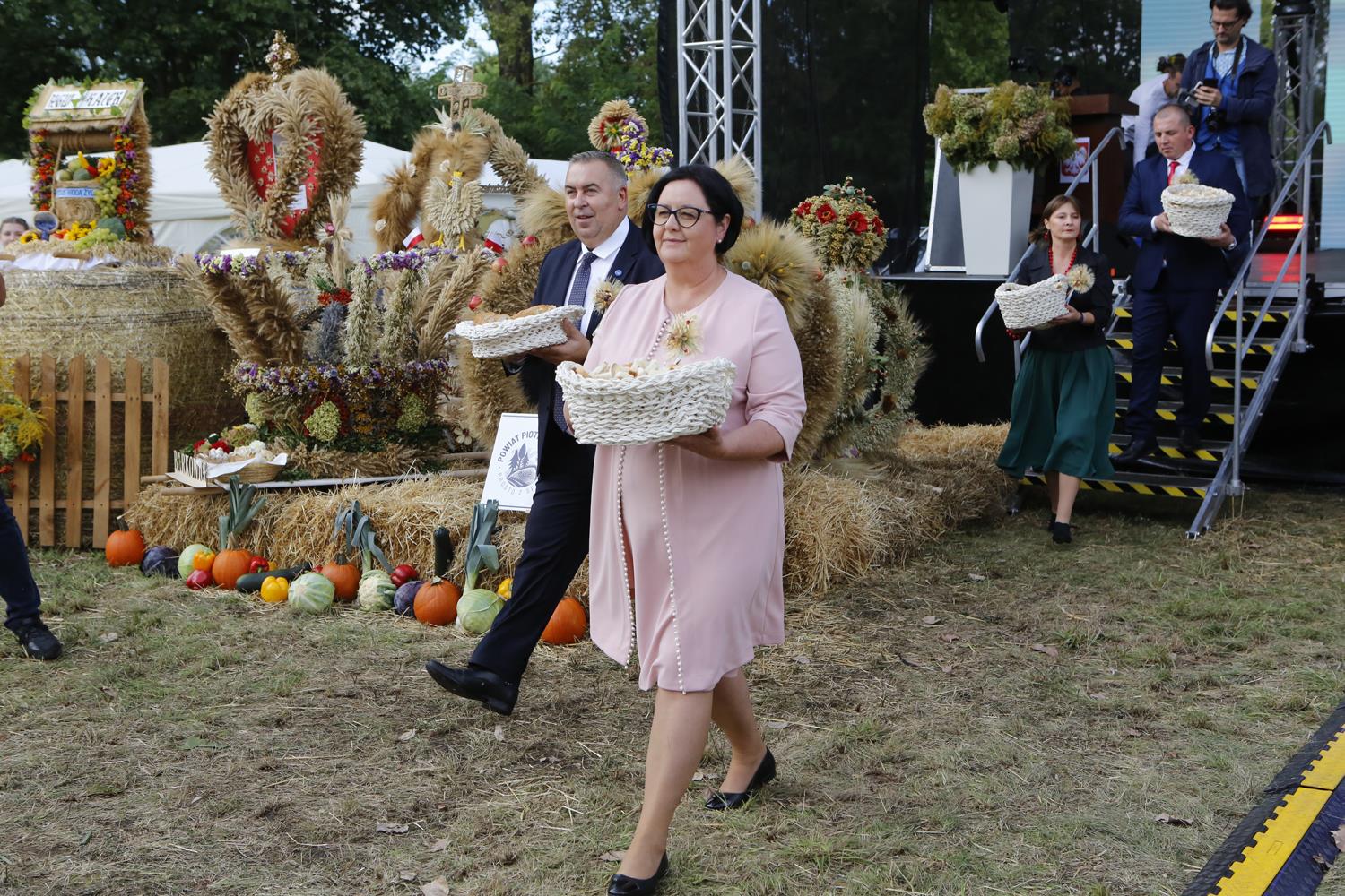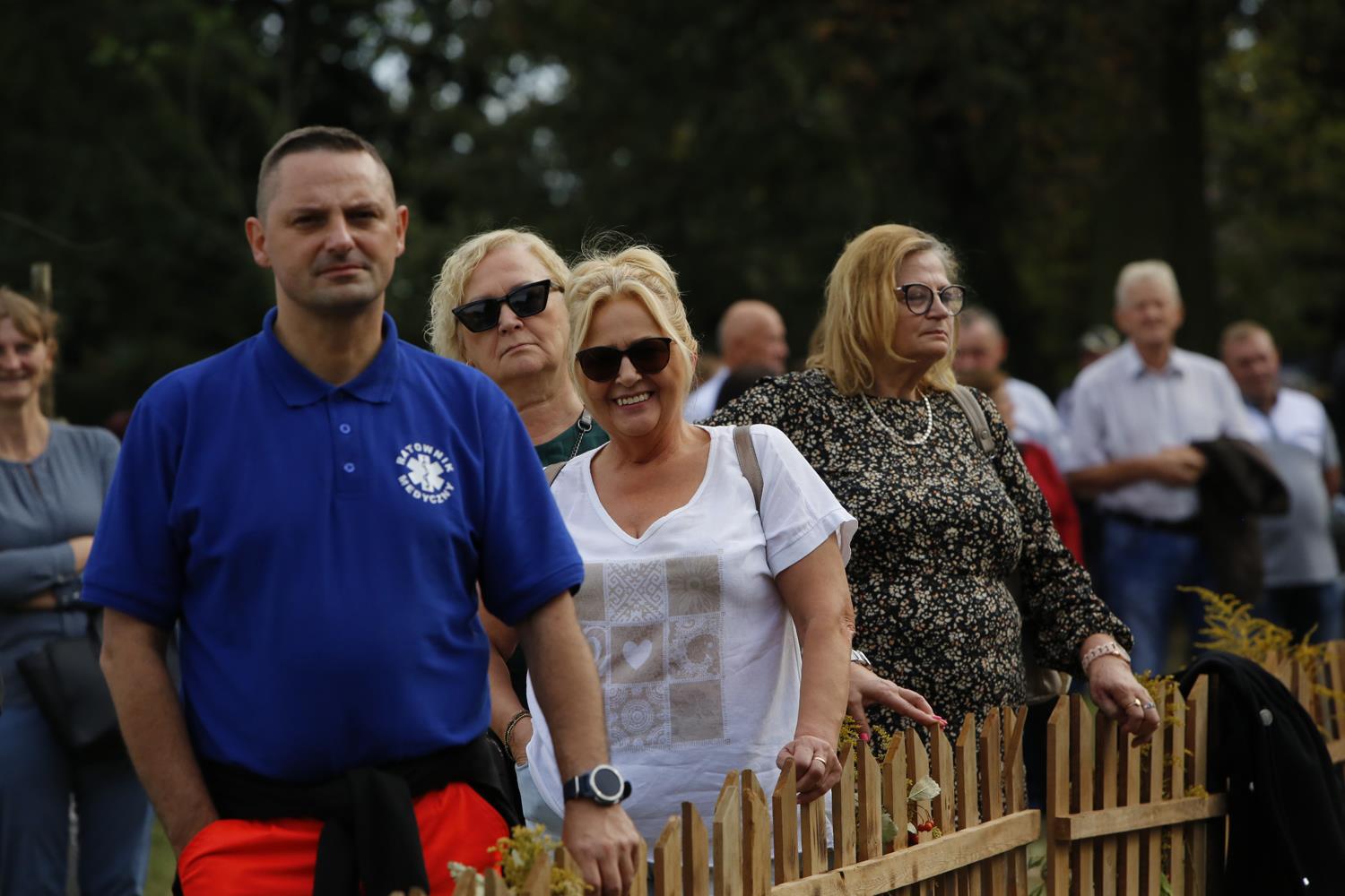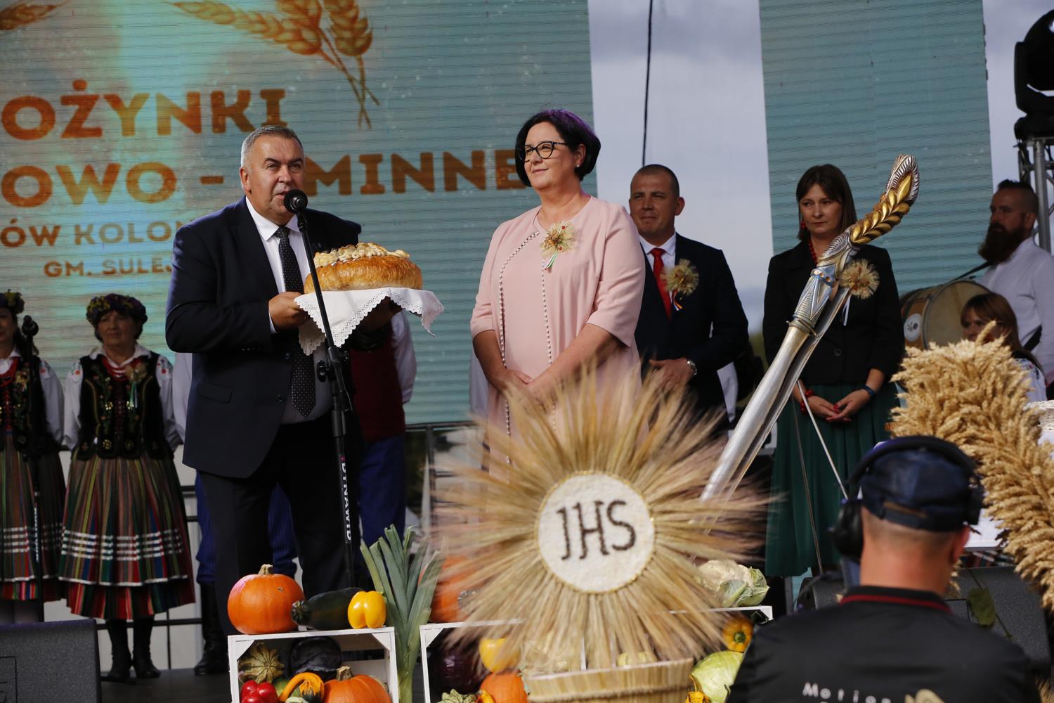 Do zebranych zwróciła się także burmistrz Sulejowa, Dorota Jankowska. – Dziękujemy dziś za plony w 2024 roku, a cytując papieża Jana Pawła II: „Oddajcie hołd spracowanym rękom polskiego rolnika, tym rękom, które w trudnej, ciężkiej ziemi wydobywały chleb dla kraju. W chwilach zagrożenia były gotowe tej ziemi strzec i bronić”. Oddajemy szacunek i podziękowanie. Dożynki to jeden z najpiękniejszych dni w roku dla rolnika. Święto plonów i radości, dzisiejsze święto jest niestety w cieniu dużego dramatu, który się dzieje na południu Polski. Dużo niepokoju jest w komunikatach meteorologicznych. Jak państwo pamiętają, gmina Sulejów przeżyła powódź w 2010 roku, my też mamy jeden, jedyny most w naszym mieście i mamy świadomość, co by to dla nas znaczyło, gdybyśmy ten most stracili. Dlatego dzisiaj solidaryzujemy się bardzo mocno ze wszystkimi, którzy przeżywają dramat powodzi, deklarując, że jeśli będziemy potrzebni, jesteśmy do dyspozycji i na pewno solidarnie wesprzemy. W tej chwili nic nie wskazuje, żeby naszej gminie groziło niebezpieczeństwo, ale śledzimy bardzo uważnie komunikaty, mamy również plan działania i chciałabym państwa zapewnić, że w razie jakiegokolwiek zagrożenia, mogą państwo liczyć na nasze pełne zaangażowanie. Drodzy rolnicy, nieprzewidywalność warunków atmosferycznych to codzienność waszej pracy, dożynki przypominają nam, że to dzięki ciężkiej pracy rolnika chleb codziennie pojawia się na naszym stole. Dziękujemy wam za to. Tereny rolnicze w gminie Sulejów zajmują 48% jej powierzchni. Przez ostatnie cztery miesiące bardzo staraliśmy się o was zadbać, tak, żeby na początek skomunikować mieszkańców tych terenów z Sulejowem i Piotrkowem, likwidując wykluczenia komunikacyjne. Jesteśmy w kontakcie z podmiotami podłączającymi światłowód, w przyszłym roku cały teren gminy będzie pokryty szybkim Internetem. Wiem, że to dla państwa było bardzo ważne, szczególnie na terenach rolniczych, odległych od Sulejowa. Planujemy również szereg inwestycji drogowych, które umożliwią poruszanie się, między innymi po drogach dojazdowych do pól. Wszystko to po to, by podnieść jakość życia mieszkańców naszej gminy. Rolnicy, pszczelarze, producenci żywności, dziękują wam za wasz trud, za pracę i życzę wam dobrej pogody i dobrych plonów w kolejnych latach – dodała Dorota Jankowska.