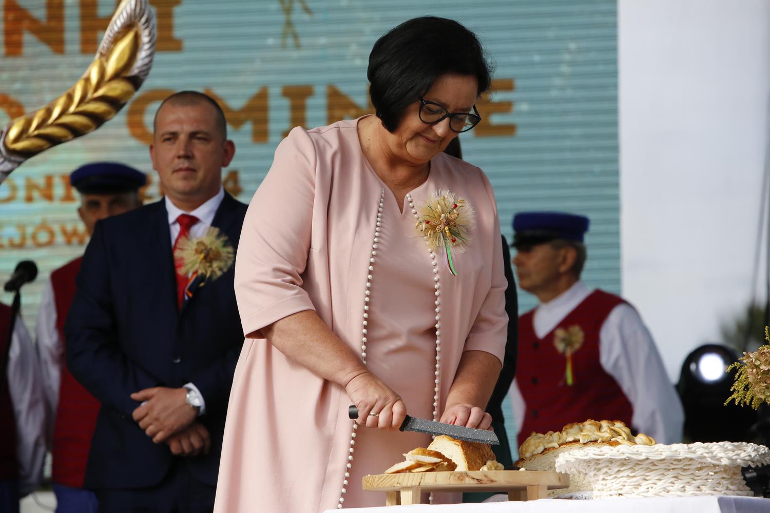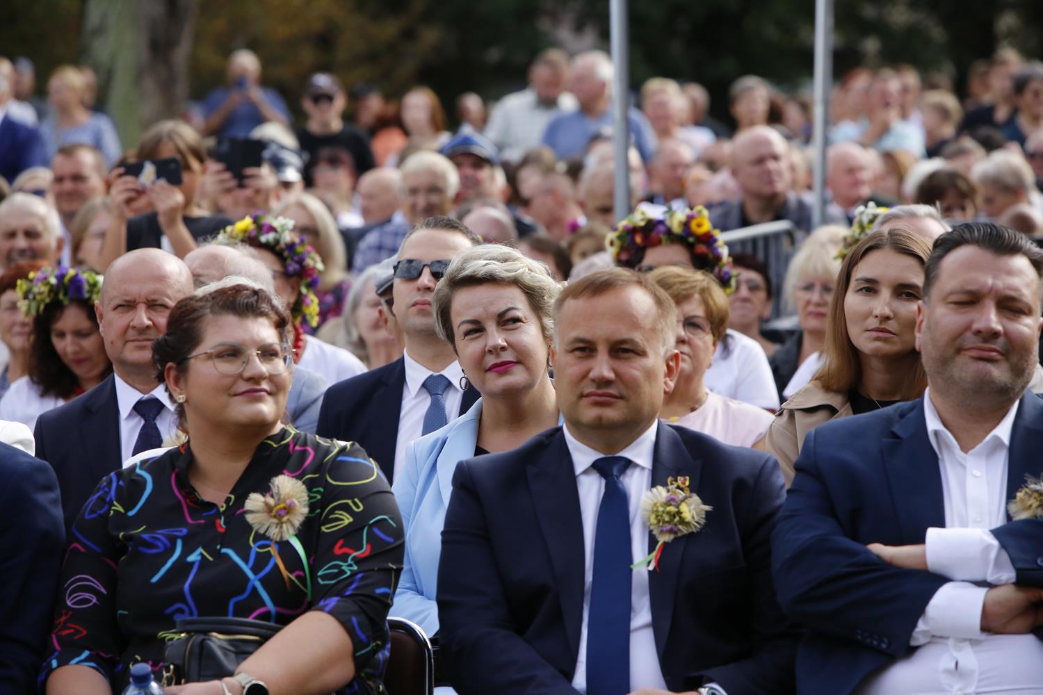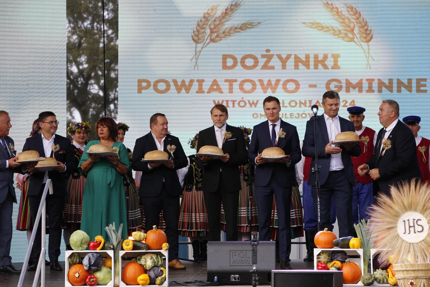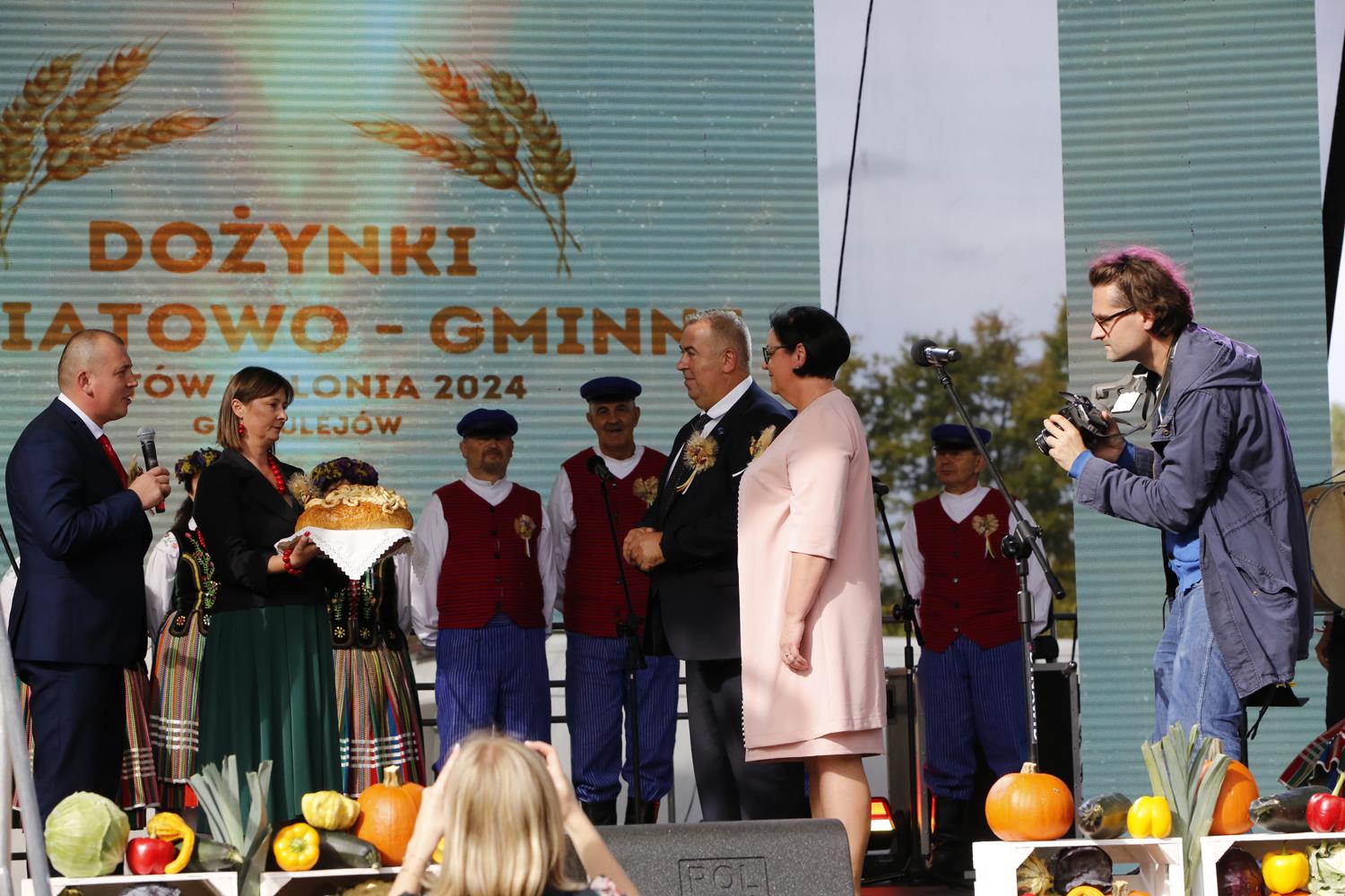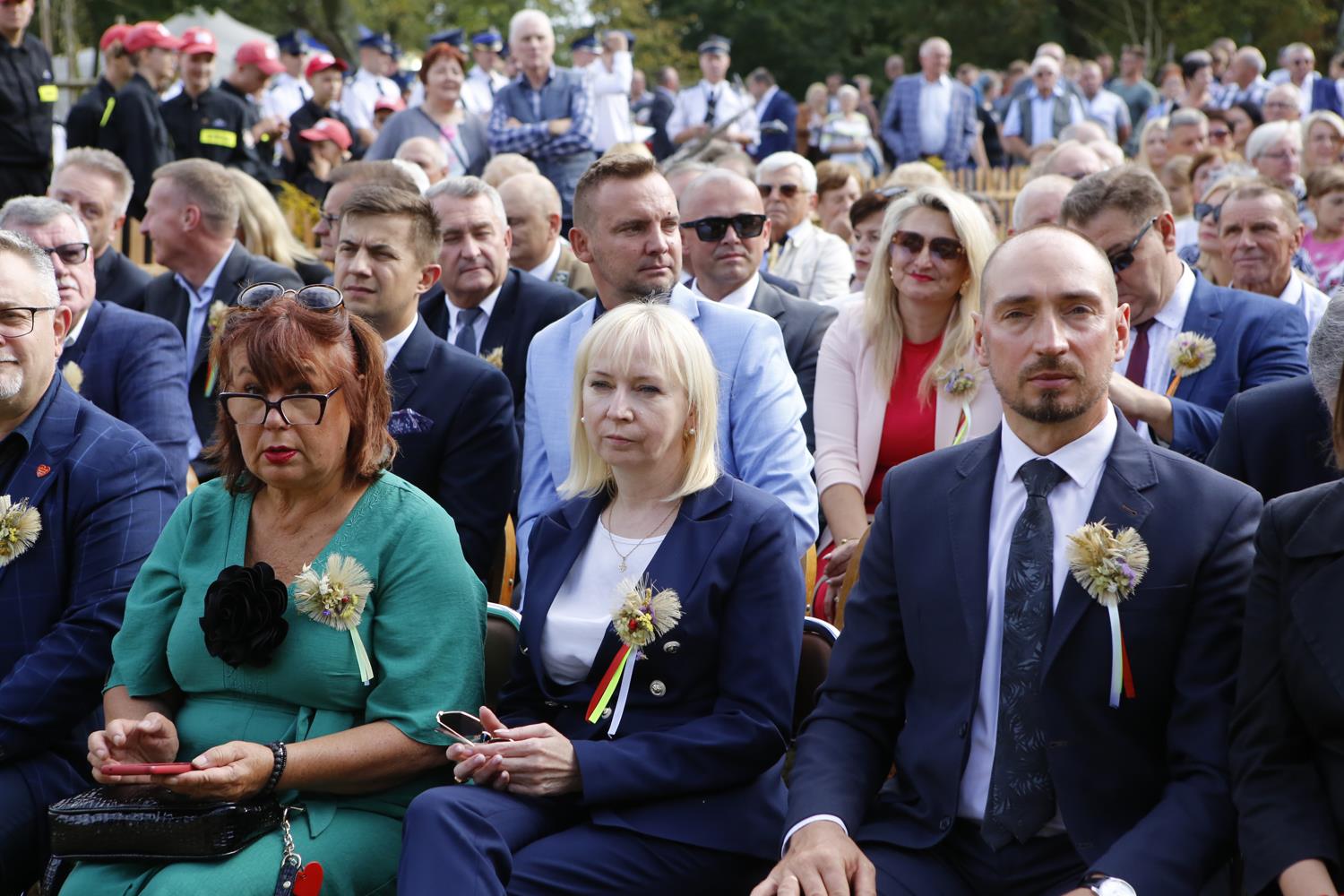 Do zebranych zwróciła się także burmistrz Sulejowa, Dorota Jankowska. – Dziękujemy dziś za plony w 2024 roku, a cytując papieża Jana Pawła II: „Oddajcie hołd spracowanym rękom polskiego rolnika, tym rękom, które w trudnej, ciężkiej ziemi wydobywały chleb dla kraju. W chwilach zagrożenia były gotowe tej ziemi strzec i bronić”. Oddajemy szacunek i podziękowanie. Dożynki to jeden z najpiękniejszych dni w roku dla rolnika. Święto plonów i radości, dzisiejsze święto jest niestety w cieniu dużego dramatu, który się dzieje na południu Polski. Dużo niepokoju jest w komunikatach meteorologicznych. Jak państwo pamiętają, gmina Sulejów przeżyła powódź w 2010 roku, my też mamy jeden, jedyny most w naszym mieście i mamy świadomość, co by to dla nas znaczyło, gdybyśmy ten most stracili. Dlatego dzisiaj solidaryzujemy się bardzo mocno ze wszystkimi, którzy przeżywają dramat powodzi, deklarując, że jeśli będziemy potrzebni, jesteśmy do dyspozycji i na pewno solidarnie wesprzemy. W tej chwili nic nie wskazuje, żeby naszej gminie groziło niebezpieczeństwo, ale śledzimy bardzo uważnie komunikaty, mamy również plan działania i chciałabym państwa zapewnić, że w razie jakiegokolwiek zagrożenia, mogą państwo liczyć na nasze pełne zaangażowanie. Drodzy rolnicy, nieprzewidywalność warunków atmosferycznych to codzienność waszej pracy, dożynki przypominają nam, że to dzięki ciężkiej pracy rolnika chleb codziennie pojawia się na naszym stole. Dziękujemy wam za to. Tereny rolnicze w gminie Sulejów zajmują 48% jej powierzchni. Przez ostatnie cztery miesiące bardzo staraliśmy się o was zadbać, tak, żeby na początek skomunikować mieszkańców tych terenów z Sulejowem i Piotrkowem, likwidując wykluczenia komunikacyjne. Jesteśmy w kontakcie z podmiotami podłączającymi światłowód, w przyszłym roku cały teren gminy będzie pokryty szybkim Internetem. Wiem, że to dla państwa było bardzo ważne, szczególnie na terenach rolniczych, odległych od Sulejowa. Planujemy również szereg inwestycji drogowych, które umożliwią poruszanie się, między innymi po drogach dojazdowych do pól. Wszystko to po to, by podnieść jakość życia mieszkańców naszej gminy. Rolnicy, pszczelarze, producenci żywności, dziękują wam za wasz trud, za pracę i życzę wam dobrej pogody i dobrych plonów w kolejnych latach – dodała Dorota Jankowska.
