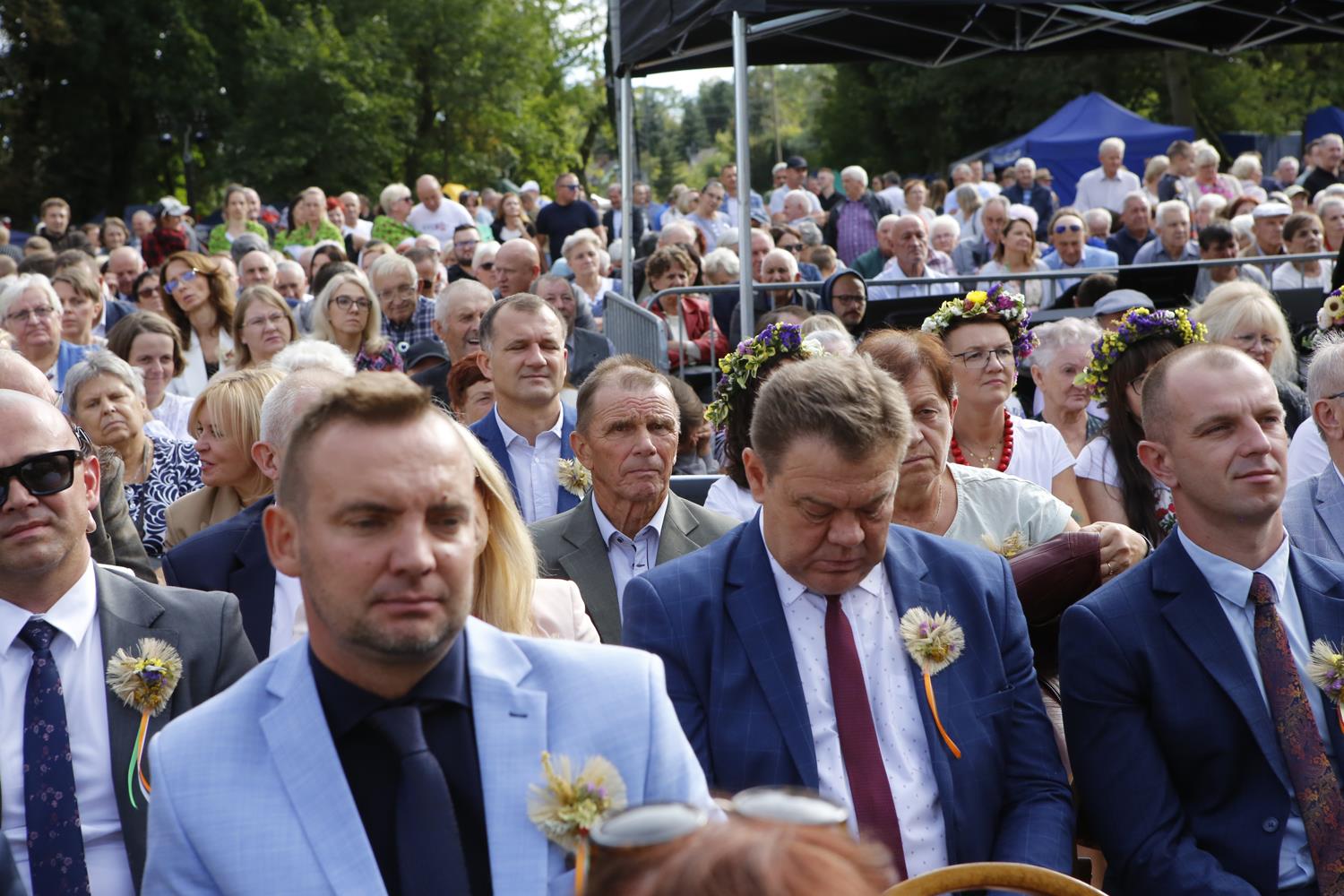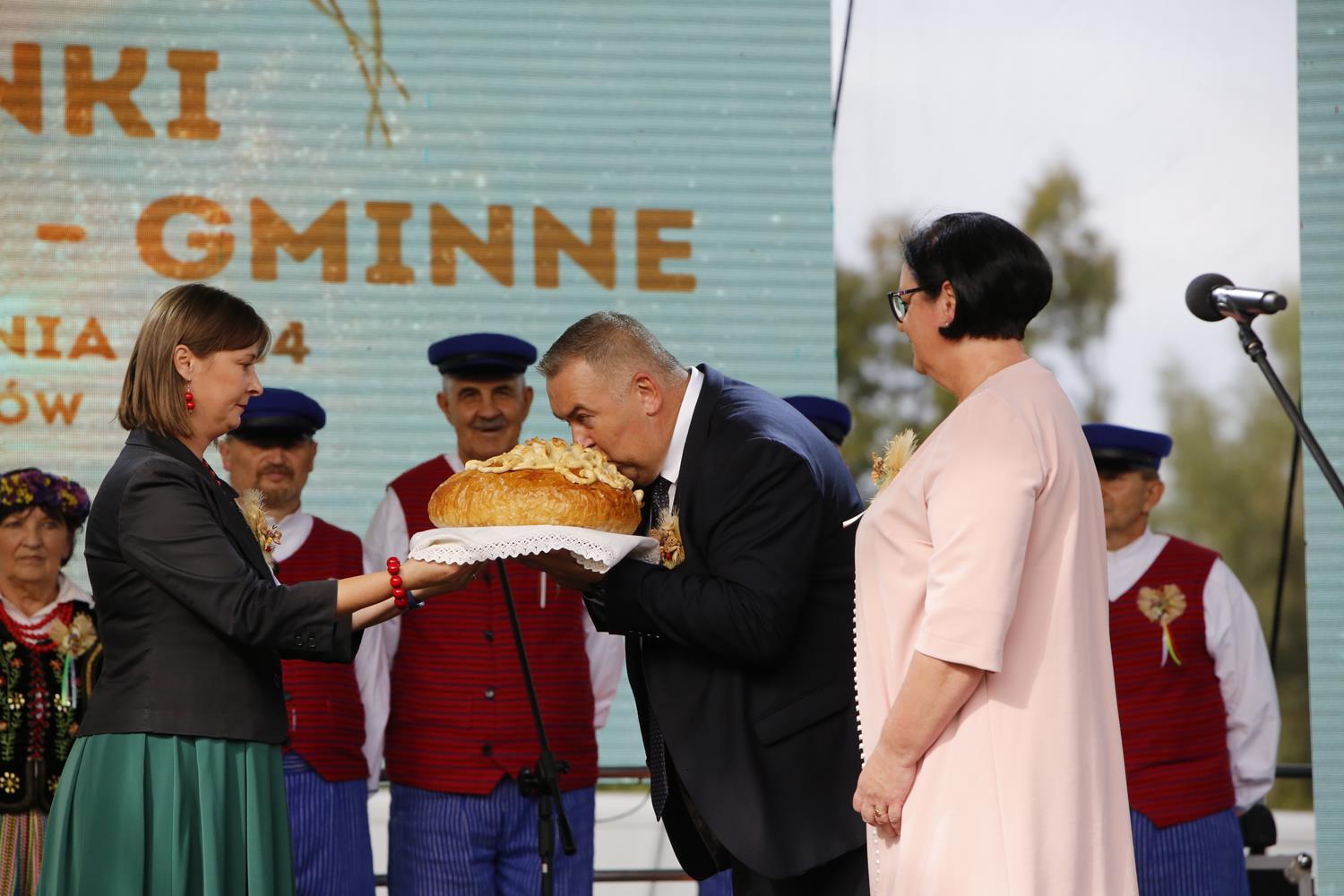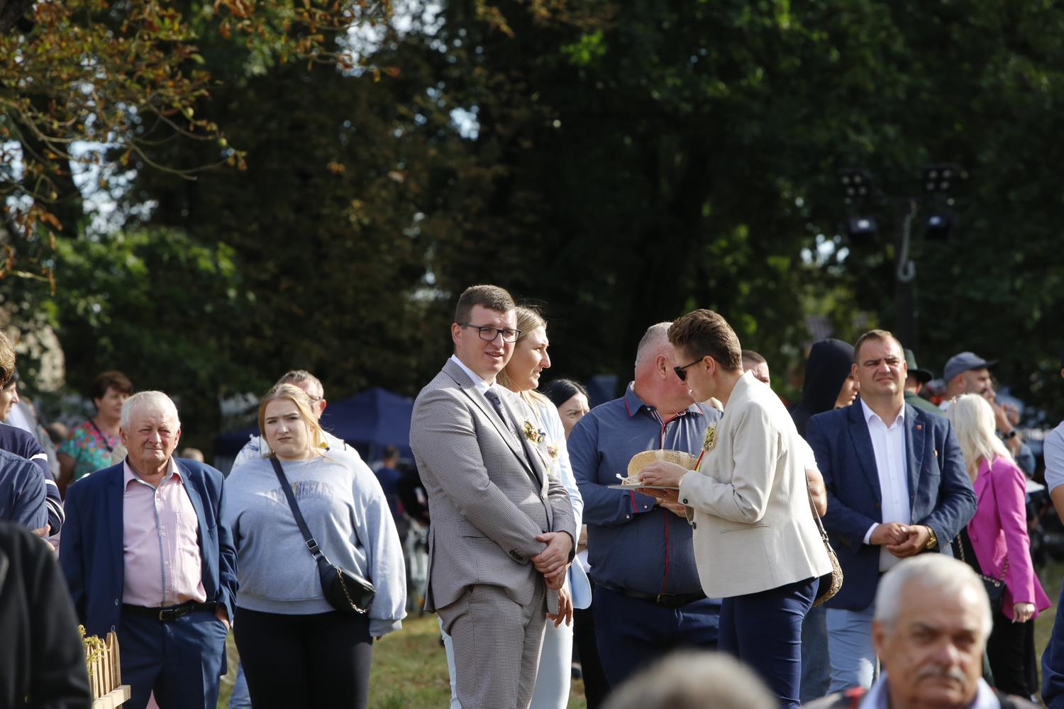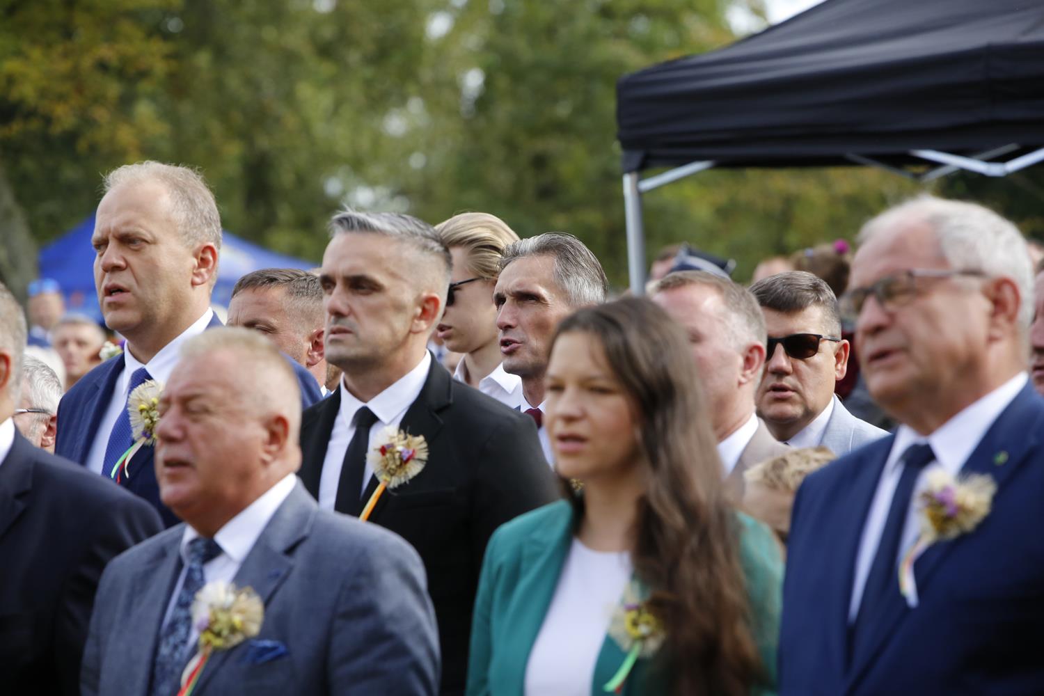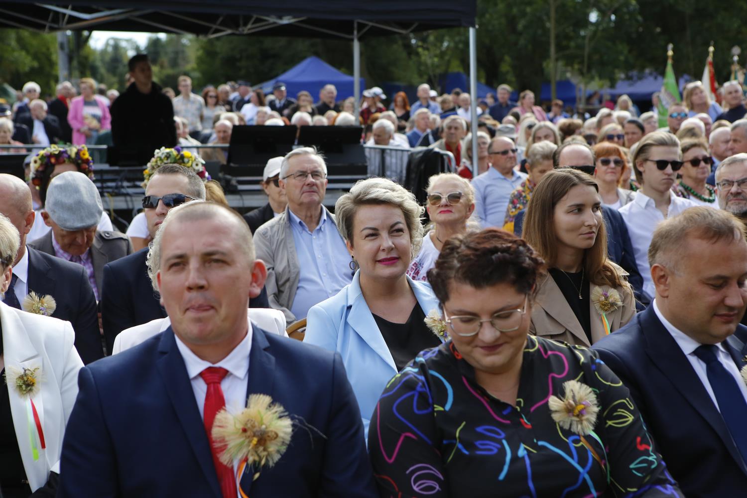 Do zebranych zwróciła się także burmistrz Sulejowa, Dorota Jankowska. – Dziękujemy dziś za plony w 2024 roku, a cytując papieża Jana Pawła II: „Oddajcie hołd spracowanym rękom polskiego rolnika, tym rękom, które w trudnej, ciężkiej ziemi wydobywały chleb dla kraju. W chwilach zagrożenia były gotowe tej ziemi strzec i bronić”. Oddajemy szacunek i podziękowanie. Dożynki to jeden z najpiękniejszych dni w roku dla rolnika. Święto plonów i radości, dzisiejsze święto jest niestety w cieniu dużego dramatu, który się dzieje na południu Polski. Dużo niepokoju jest w komunikatach meteorologicznych. Jak państwo pamiętają, gmina Sulejów przeżyła powódź w 2010 roku, my też mamy jeden, jedyny most w naszym mieście i mamy świadomość, co by to dla nas znaczyło, gdybyśmy ten most stracili. Dlatego dzisiaj solidaryzujemy się bardzo mocno ze wszystkimi, którzy przeżywają dramat powodzi, deklarując, że jeśli będziemy potrzebni, jesteśmy do dyspozycji i na pewno solidarnie wesprzemy. W tej chwili nic nie wskazuje, żeby naszej gminie groziło niebezpieczeństwo, ale śledzimy bardzo uważnie komunikaty, mamy również plan działania i chciałabym państwa zapewnić, że w razie jakiegokolwiek zagrożenia, mogą państwo liczyć na nasze pełne zaangażowanie. Drodzy rolnicy, nieprzewidywalność warunków atmosferycznych to codzienność waszej pracy, dożynki przypominają nam, że to dzięki ciężkiej pracy rolnika chleb codziennie pojawia się na naszym stole. Dziękujemy wam za to. Tereny rolnicze w gminie Sulejów zajmują 48% jej powierzchni. Przez ostatnie cztery miesiące bardzo staraliśmy się o was zadbać, tak, żeby na początek skomunikować mieszkańców tych terenów z Sulejowem i Piotrkowem, likwidując wykluczenia komunikacyjne. Jesteśmy w kontakcie z podmiotami podłączającymi światłowód, w przyszłym roku cały teren gminy będzie pokryty szybkim Internetem. Wiem, że to dla państwa było bardzo ważne, szczególnie na terenach rolniczych, odległych od Sulejowa. Planujemy również szereg inwestycji drogowych, które umożliwią poruszanie się, między innymi po drogach dojazdowych do pól. Wszystko to po to, by podnieść jakość życia mieszkańców naszej gminy. Rolnicy, pszczelarze, producenci żywności, dziękują wam za wasz trud, za pracę i życzę wam dobrej pogody i dobrych plonów w kolejnych latach – dodała Dorota Jankowska.