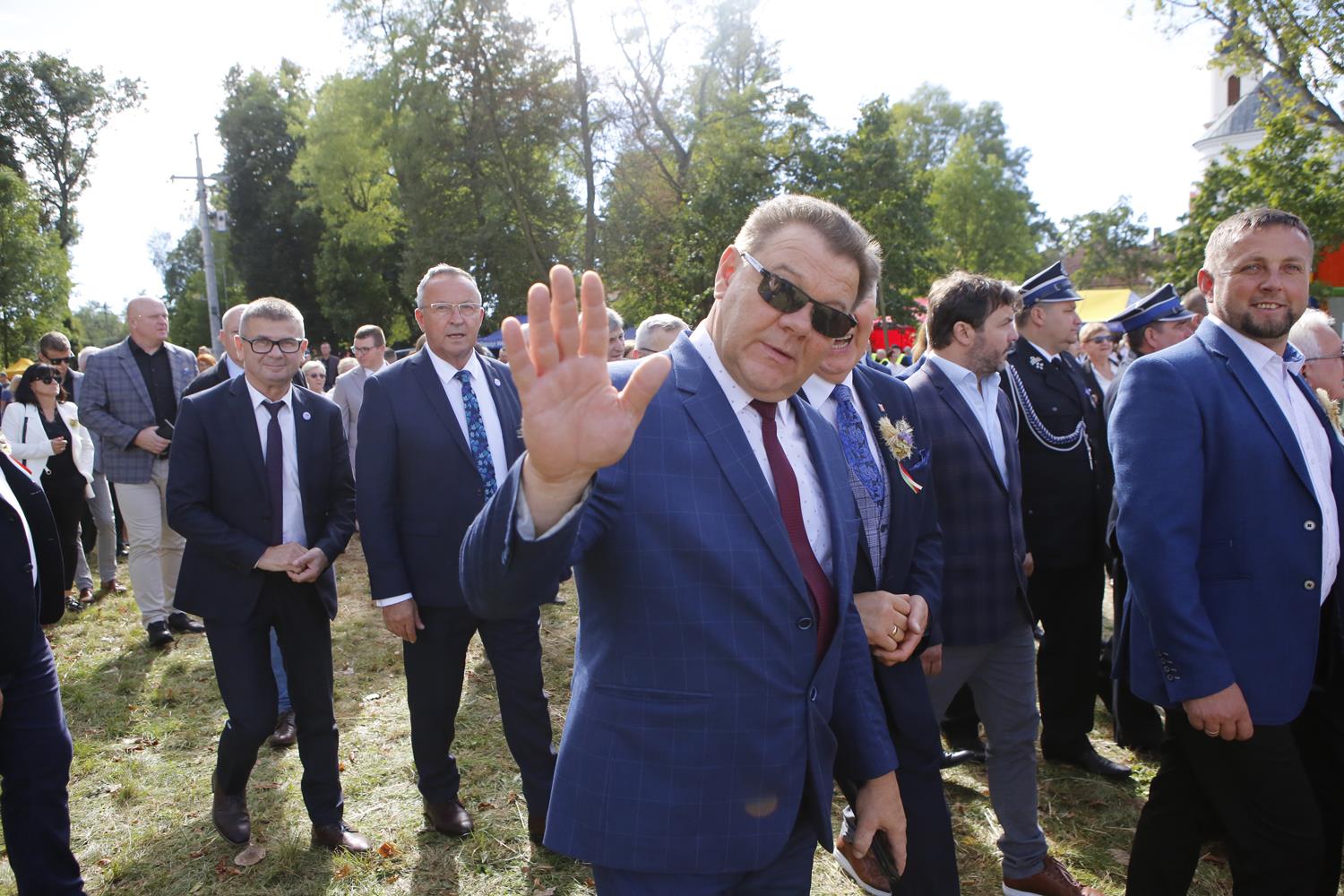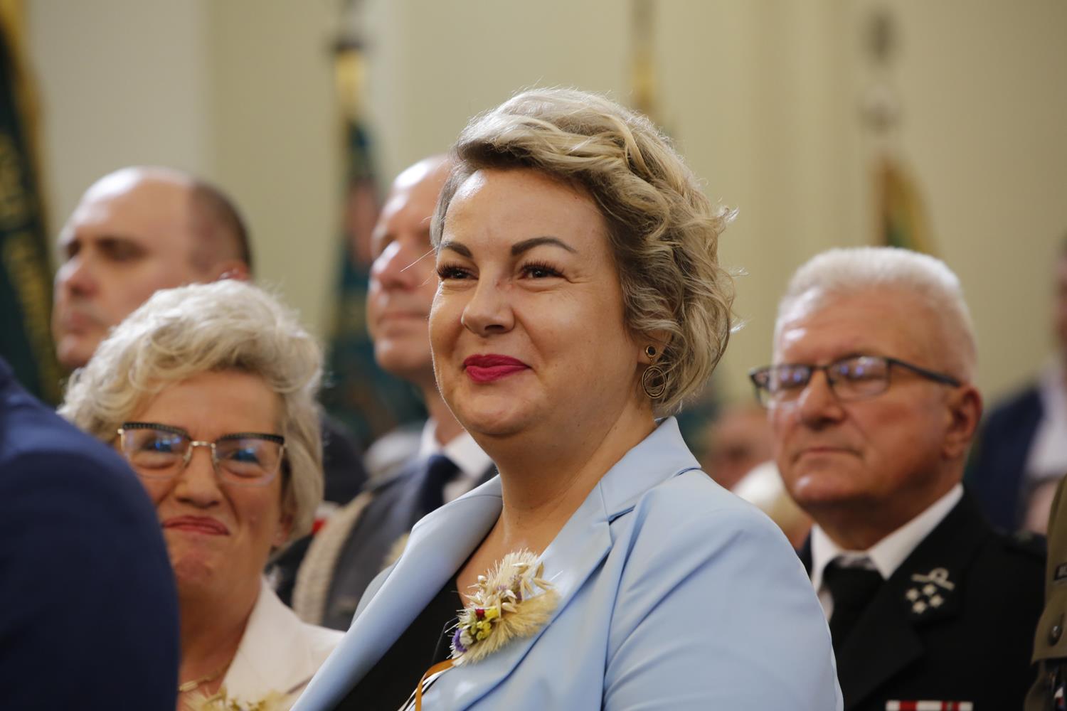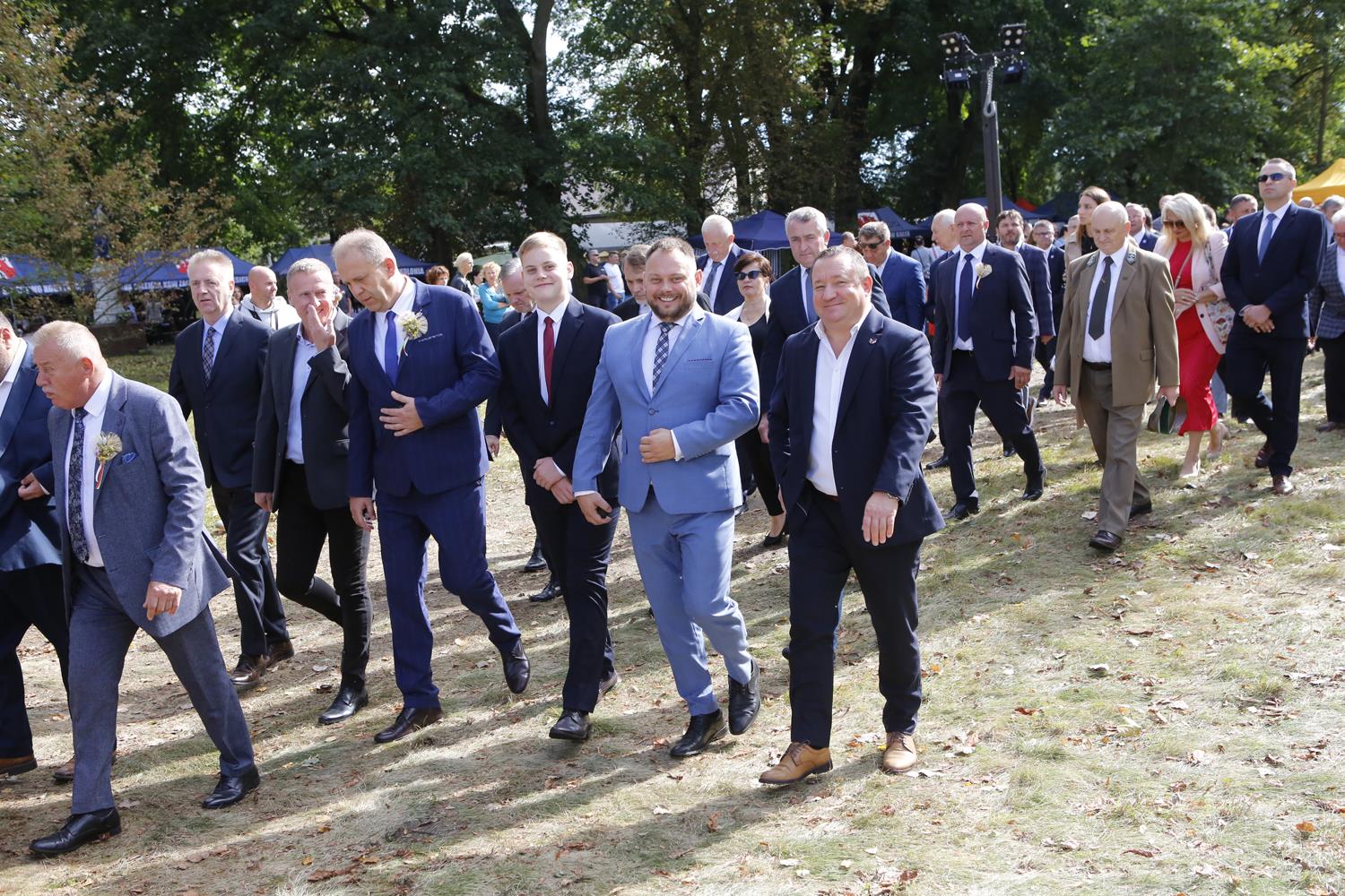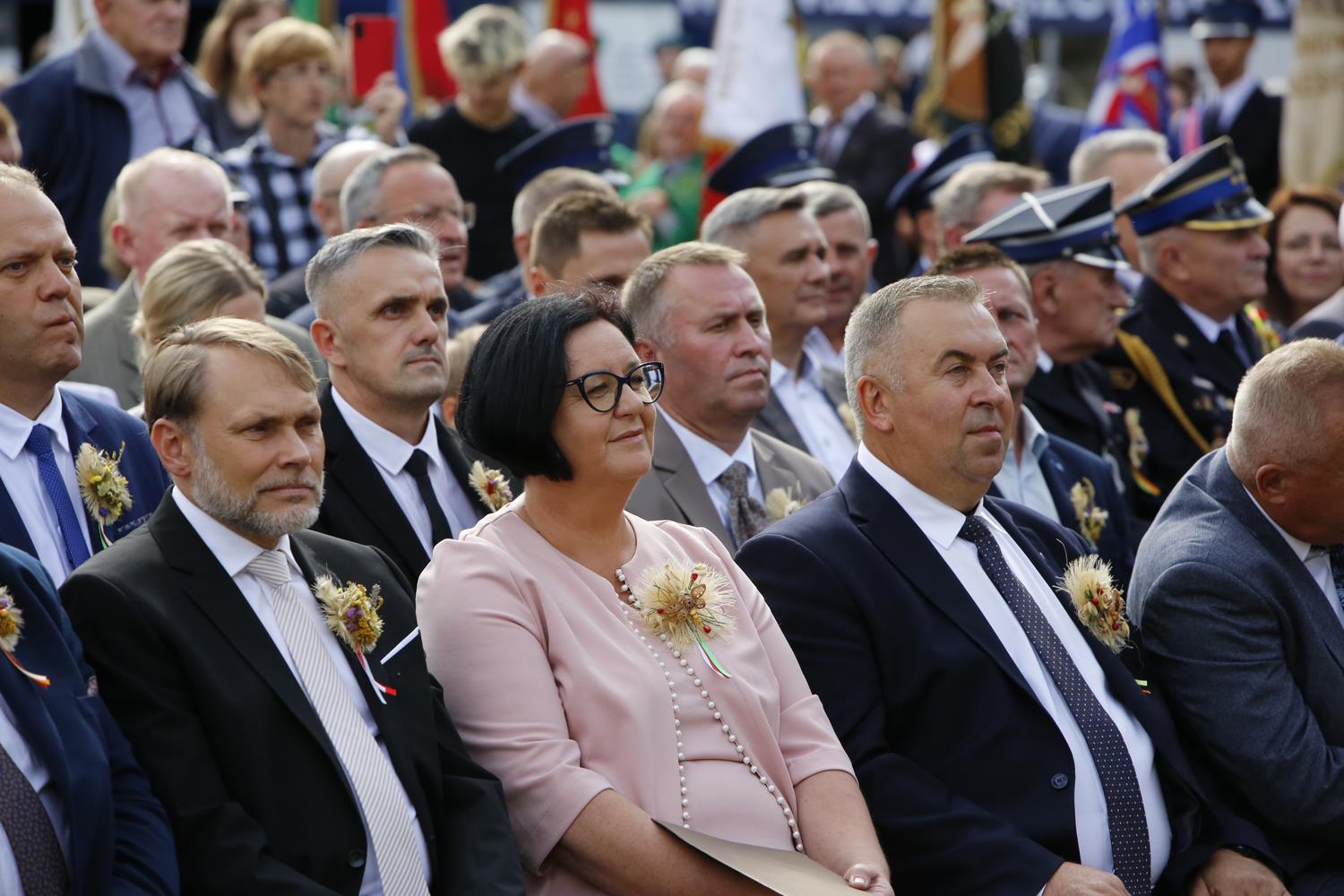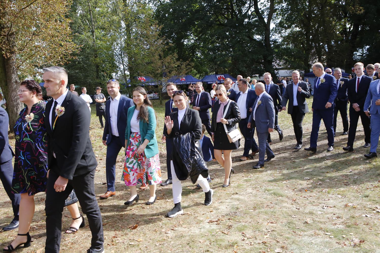 Do zebranych zwróciła się także burmistrz Sulejowa, Dorota Jankowska. – Dziękujemy dziś za plony w 2024 roku, a cytując papieża Jana Pawła II: „Oddajcie hołd spracowanym rękom polskiego rolnika, tym rękom, które w trudnej, ciężkiej ziemi wydobywały chleb dla kraju. W chwilach zagrożenia były gotowe tej ziemi strzec i bronić”. Oddajemy szacunek i podziękowanie. Dożynki to jeden z najpiękniejszych dni w roku dla rolnika. Święto plonów i radości, dzisiejsze święto jest niestety w cieniu dużego dramatu, który się dzieje na południu Polski. Dużo niepokoju jest w komunikatach meteorologicznych. Jak państwo pamiętają, gmina Sulejów przeżyła powódź w 2010 roku, my też mamy jeden, jedyny most w naszym mieście i mamy świadomość, co by to dla nas znaczyło, gdybyśmy ten most stracili. Dlatego dzisiaj solidaryzujemy się bardzo mocno ze wszystkimi, którzy przeżywają dramat powodzi, deklarując, że jeśli będziemy potrzebni, jesteśmy do dyspozycji i na pewno solidarnie wesprzemy. W tej chwili nic nie wskazuje, żeby naszej gminie groziło niebezpieczeństwo, ale śledzimy bardzo uważnie komunikaty, mamy również plan działania i chciałabym państwa zapewnić, że w razie jakiegokolwiek zagrożenia, mogą państwo liczyć na nasze pełne zaangażowanie. Drodzy rolnicy, nieprzewidywalność warunków atmosferycznych to codzienność waszej pracy, dożynki przypominają nam, że to dzięki ciężkiej pracy rolnika chleb codziennie pojawia się na naszym stole. Dziękujemy wam za to. Tereny rolnicze w gminie Sulejów zajmują 48% jej powierzchni. Przez ostatnie cztery miesiące bardzo staraliśmy się o was zadbać, tak, żeby na początek skomunikować mieszkańców tych terenów z Sulejowem i Piotrkowem, likwidując wykluczenia komunikacyjne. Jesteśmy w kontakcie z podmiotami podłączającymi światłowód, w przyszłym roku cały teren gminy będzie pokryty szybkim Internetem. Wiem, że to dla państwa było bardzo ważne, szczególnie na terenach rolniczych, odległych od Sulejowa. Planujemy również szereg inwestycji drogowych, które umożliwią poruszanie się, między innymi po drogach dojazdowych do pól. Wszystko to po to, by podnieść jakość życia mieszkańców naszej gminy. Rolnicy, pszczelarze, producenci żywności, dziękują wam za wasz trud, za pracę i życzę wam dobrej pogody i dobrych plonów w kolejnych latach – dodała Dorota Jankowska.