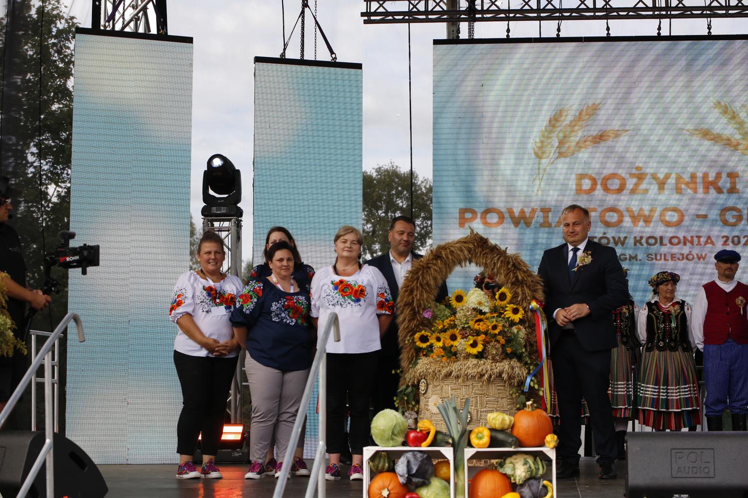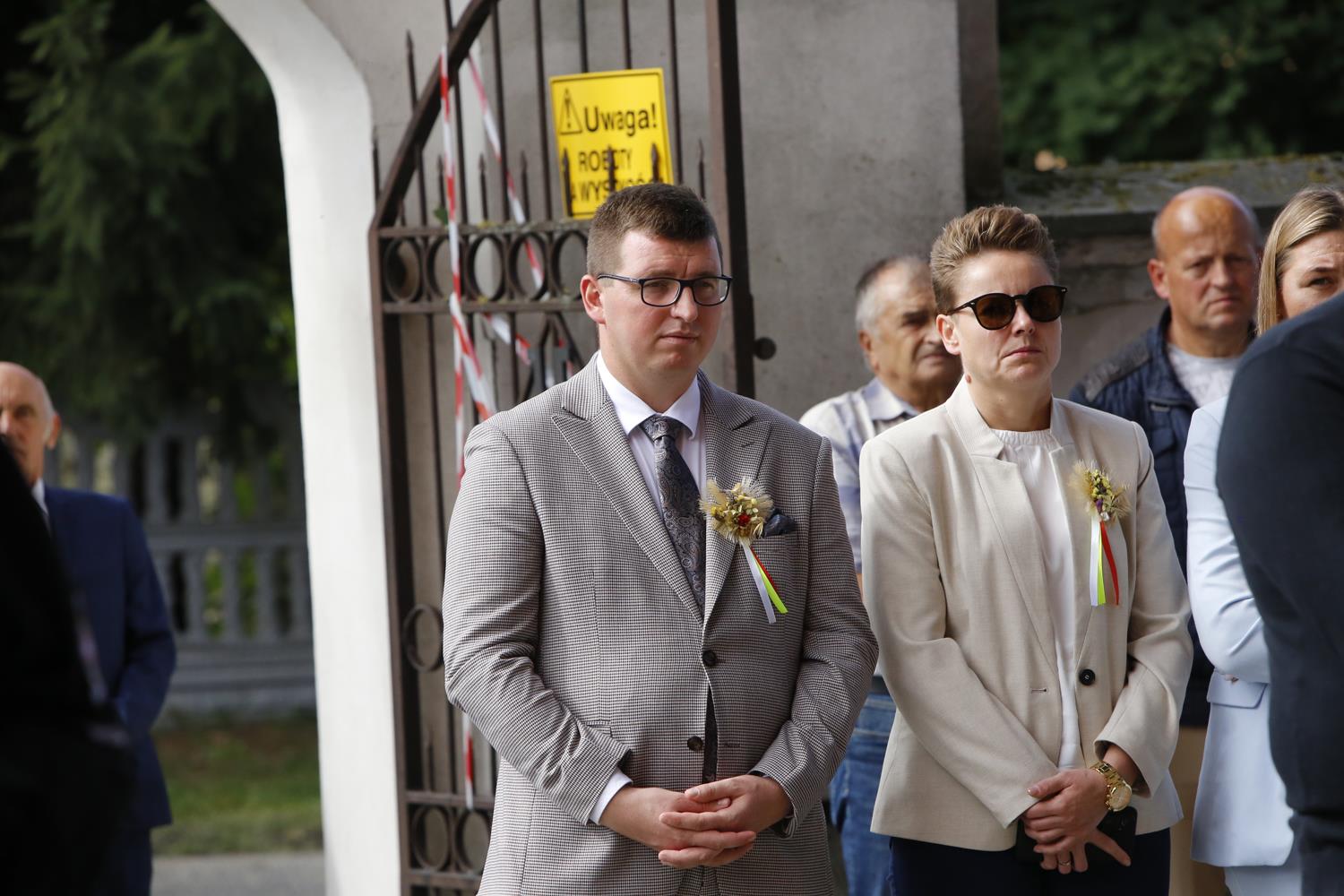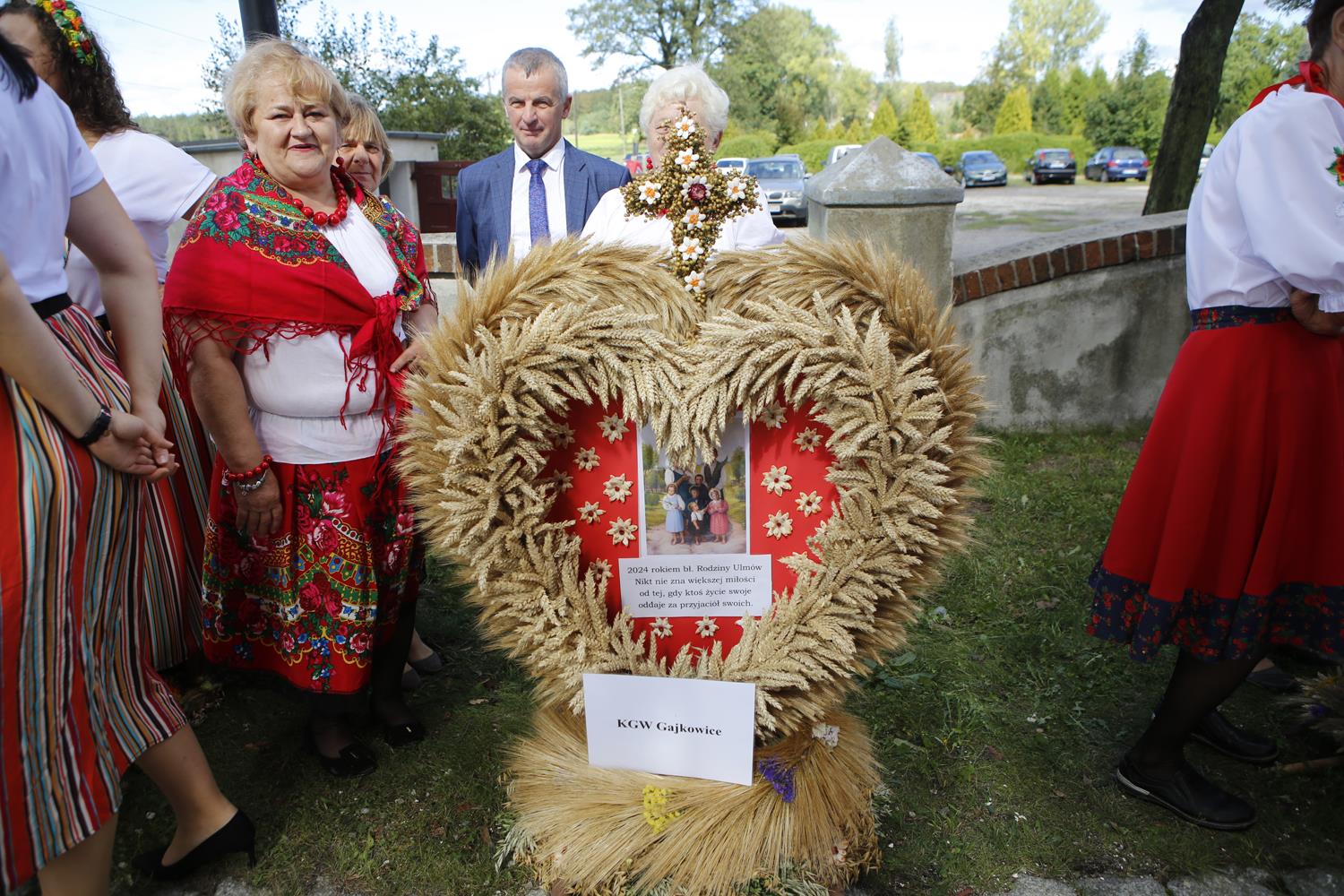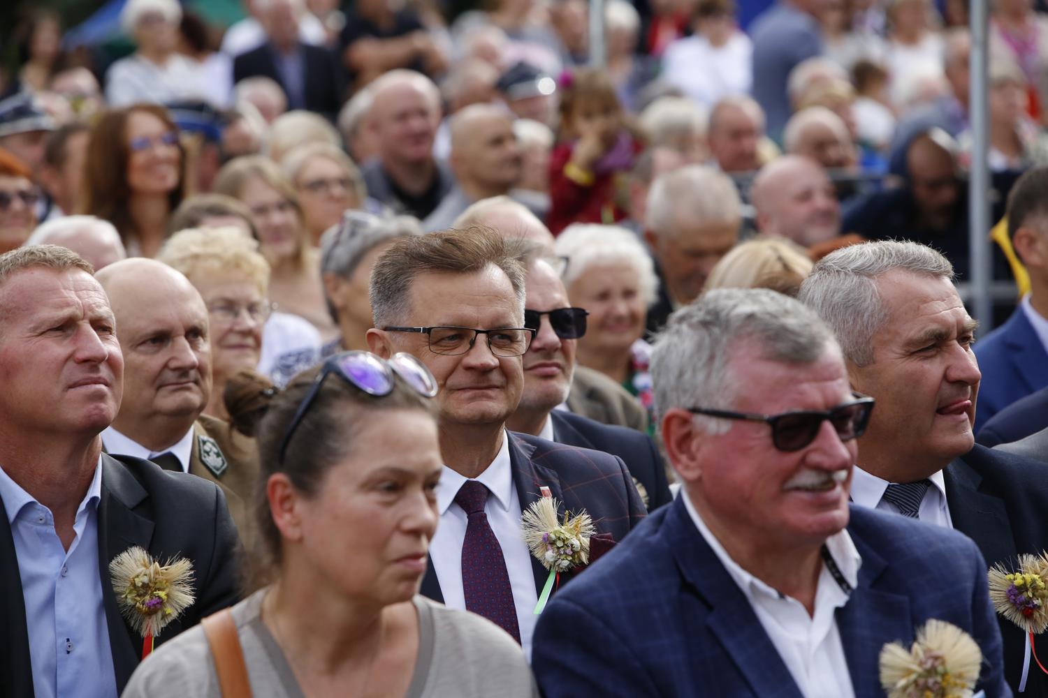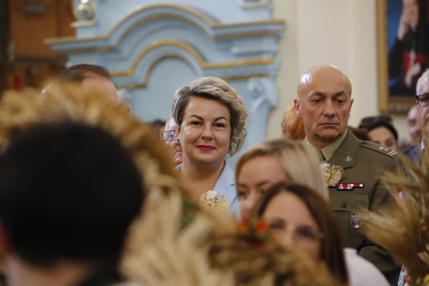 Do zebranych zwróciła się także burmistrz Sulejowa, Dorota Jankowska. – Dziękujemy dziś za plony w 2024 roku, a cytując papieża Jana Pawła II: „Oddajcie hołd spracowanym rękom polskiego rolnika, tym rękom, które w trudnej, ciężkiej ziemi wydobywały chleb dla kraju. W chwilach zagrożenia były gotowe tej ziemi strzec i bronić”. Oddajemy szacunek i podziękowanie. Dożynki to jeden z najpiękniejszych dni w roku dla rolnika. Święto plonów i radości, dzisiejsze święto jest niestety w cieniu dużego dramatu, który się dzieje na południu Polski. Dużo niepokoju jest w komunikatach meteorologicznych. Jak państwo pamiętają, gmina Sulejów przeżyła powódź w 2010 roku, my też mamy jeden, jedyny most w naszym mieście i mamy świadomość, co by to dla nas znaczyło, gdybyśmy ten most stracili. Dlatego dzisiaj solidaryzujemy się bardzo mocno ze wszystkimi, którzy przeżywają dramat powodzi, deklarując, że jeśli będziemy potrzebni, jesteśmy do dyspozycji i na pewno solidarnie wesprzemy. W tej chwili nic nie wskazuje, żeby naszej gminie groziło niebezpieczeństwo, ale śledzimy bardzo uważnie komunikaty, mamy również plan działania i chciałabym państwa zapewnić, że w razie jakiegokolwiek zagrożenia, mogą państwo liczyć na nasze pełne zaangażowanie. Drodzy rolnicy, nieprzewidywalność warunków atmosferycznych to codzienność waszej pracy, dożynki przypominają nam, że to dzięki ciężkiej pracy rolnika chleb codziennie pojawia się na naszym stole. Dziękujemy wam za to. Tereny rolnicze w gminie Sulejów zajmują 48% jej powierzchni. Przez ostatnie cztery miesiące bardzo staraliśmy się o was zadbać, tak, żeby na początek skomunikować mieszkańców tych terenów z Sulejowem i Piotrkowem, likwidując wykluczenia komunikacyjne. Jesteśmy w kontakcie z podmiotami podłączającymi światłowód, w przyszłym roku cały teren gminy będzie pokryty szybkim Internetem. Wiem, że to dla państwa było bardzo ważne, szczególnie na terenach rolniczych, odległych od Sulejowa. Planujemy również szereg inwestycji drogowych, które umożliwią poruszanie się, między innymi po drogach dojazdowych do pól. Wszystko to po to, by podnieść jakość życia mieszkańców naszej gminy. Rolnicy, pszczelarze, producenci żywności, dziękują wam za wasz trud, za pracę i życzę wam dobrej pogody i dobrych plonów w kolejnych latach – dodała Dorota Jankowska.