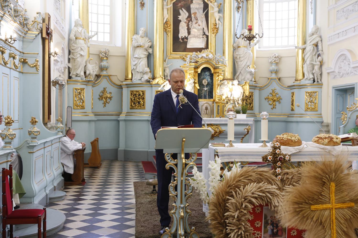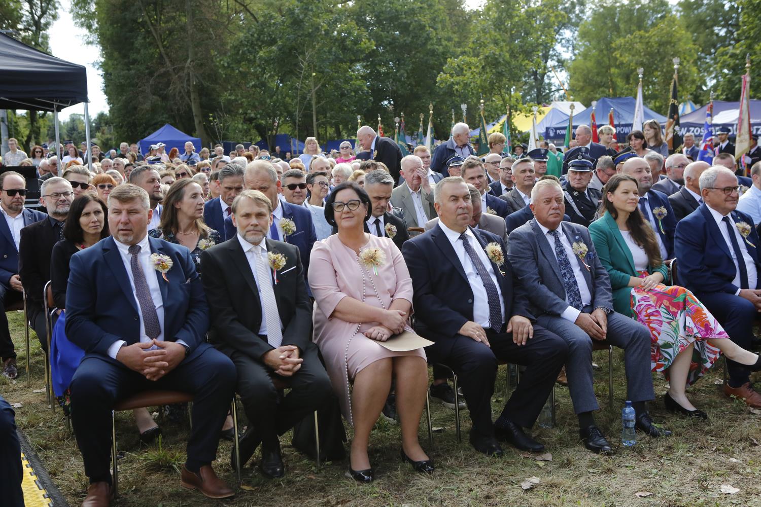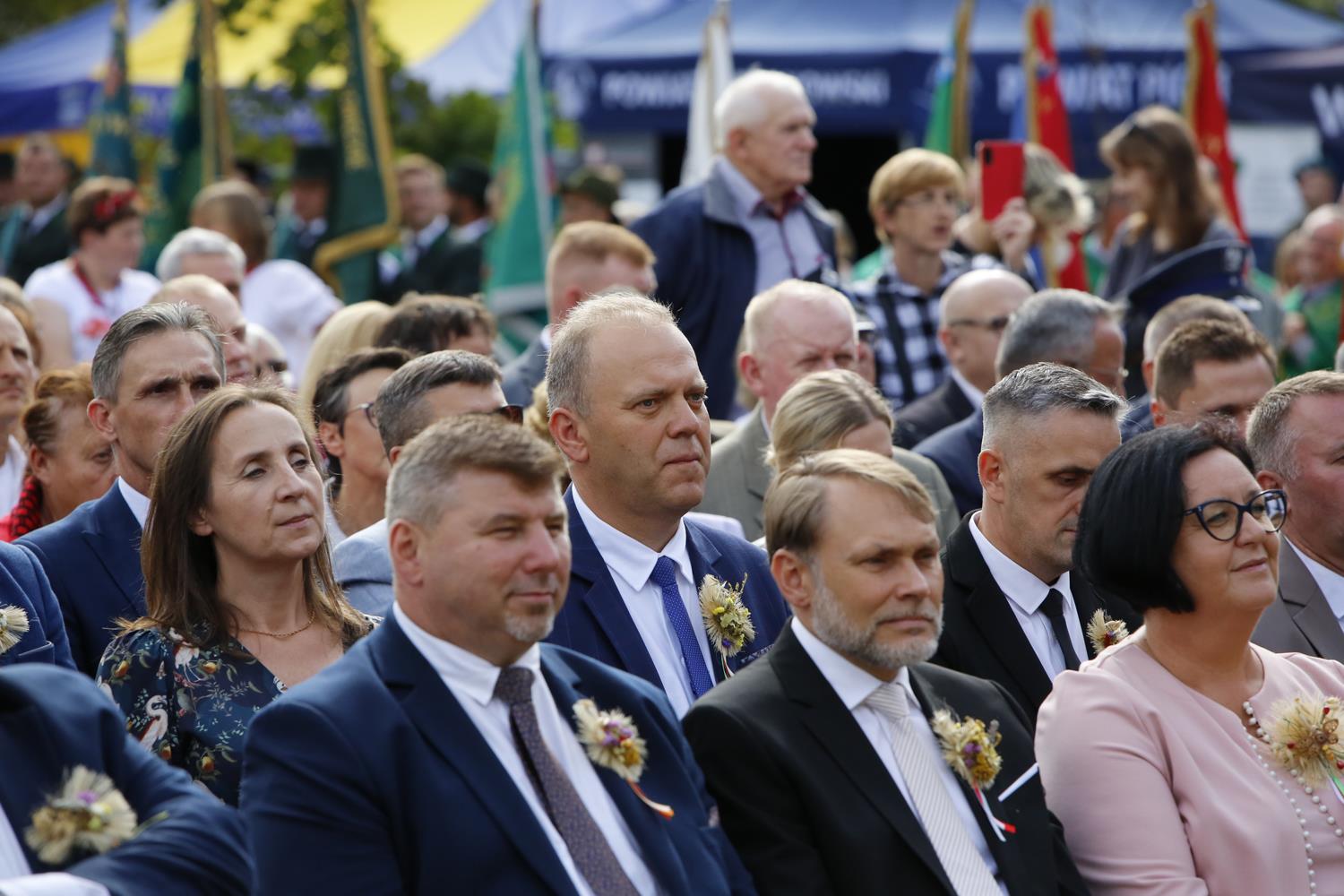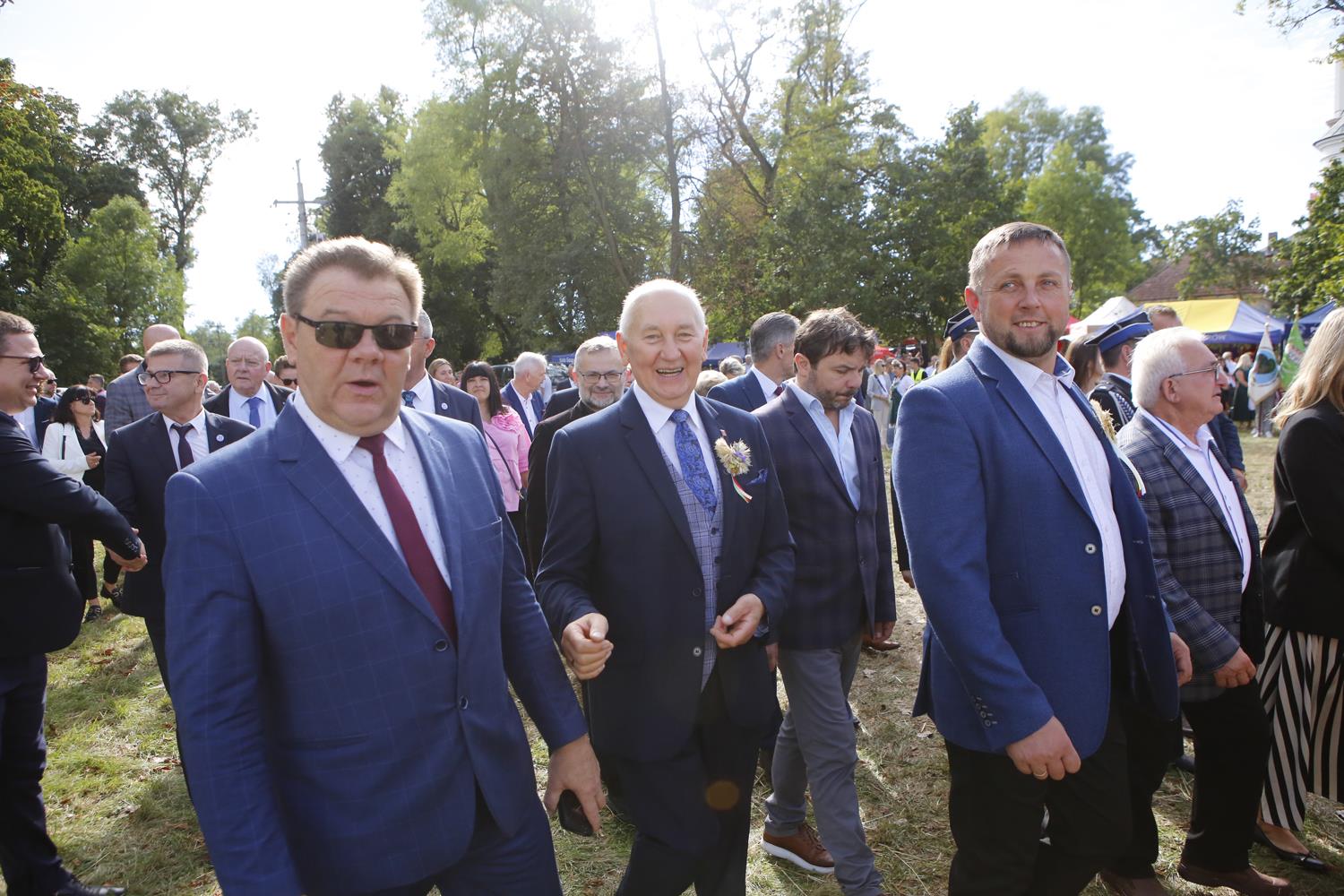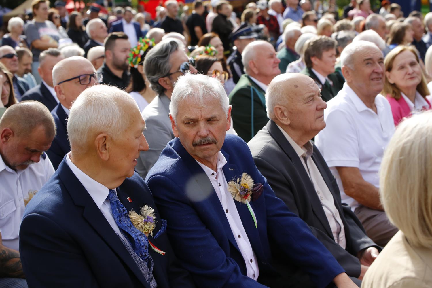 Do zebranych zwróciła się także burmistrz Sulejowa, Dorota Jankowska. – Dziękujemy dziś za plony w 2024 roku, a cytując papieża Jana Pawła II: „Oddajcie hołd spracowanym rękom polskiego rolnika, tym rękom, które w trudnej, ciężkiej ziemi wydobywały chleb dla kraju. W chwilach zagrożenia były gotowe tej ziemi strzec i bronić”. Oddajemy szacunek i podziękowanie. Dożynki to jeden z najpiękniejszych dni w roku dla rolnika. Święto plonów i radości, dzisiejsze święto jest niestety w cieniu dużego dramatu, który się dzieje na południu Polski. Dużo niepokoju jest w komunikatach meteorologicznych. Jak państwo pamiętają, gmina Sulejów przeżyła powódź w 2010 roku, my też mamy jeden, jedyny most w naszym mieście i mamy świadomość, co by to dla nas znaczyło, gdybyśmy ten most stracili. Dlatego dzisiaj solidaryzujemy się bardzo mocno ze wszystkimi, którzy przeżywają dramat powodzi, deklarując, że jeśli będziemy potrzebni, jesteśmy do dyspozycji i na pewno solidarnie wesprzemy. W tej chwili nic nie wskazuje, żeby naszej gminie groziło niebezpieczeństwo, ale śledzimy bardzo uważnie komunikaty, mamy również plan działania i chciałabym państwa zapewnić, że w razie jakiegokolwiek zagrożenia, mogą państwo liczyć na nasze pełne zaangażowanie. Drodzy rolnicy, nieprzewidywalność warunków atmosferycznych to codzienność waszej pracy, dożynki przypominają nam, że to dzięki ciężkiej pracy rolnika chleb codziennie pojawia się na naszym stole. Dziękujemy wam za to. Tereny rolnicze w gminie Sulejów zajmują 48% jej powierzchni. Przez ostatnie cztery miesiące bardzo staraliśmy się o was zadbać, tak, żeby na początek skomunikować mieszkańców tych terenów z Sulejowem i Piotrkowem, likwidując wykluczenia komunikacyjne. Jesteśmy w kontakcie z podmiotami podłączającymi światłowód, w przyszłym roku cały teren gminy będzie pokryty szybkim Internetem. Wiem, że to dla państwa było bardzo ważne, szczególnie na terenach rolniczych, odległych od Sulejowa. Planujemy również szereg inwestycji drogowych, które umożliwią poruszanie się, między innymi po drogach dojazdowych do pól. Wszystko to po to, by podnieść jakość życia mieszkańców naszej gminy. Rolnicy, pszczelarze, producenci żywności, dziękują wam za wasz trud, za pracę i życzę wam dobrej pogody i dobrych plonów w kolejnych latach – dodała Dorota Jankowska.