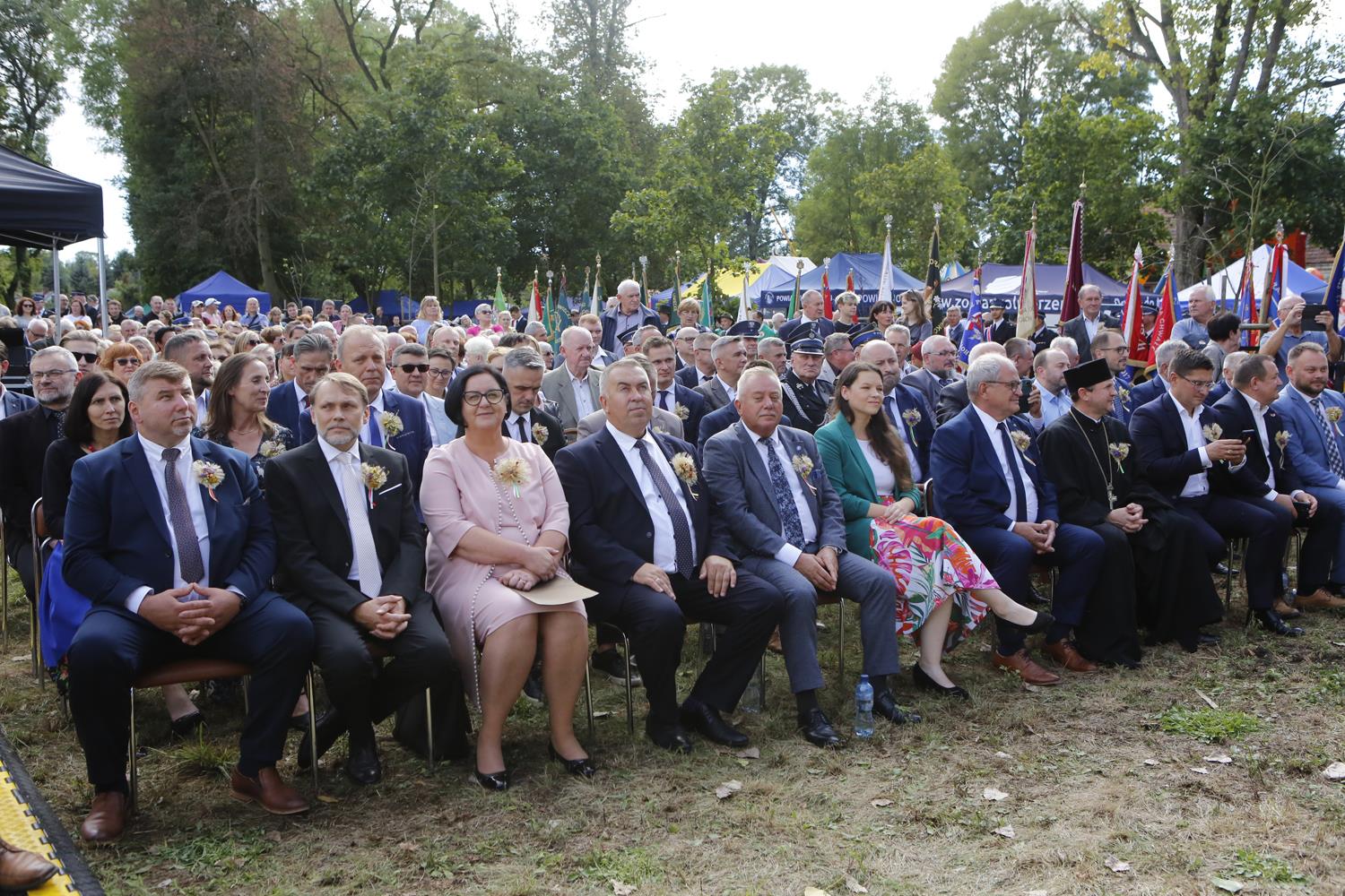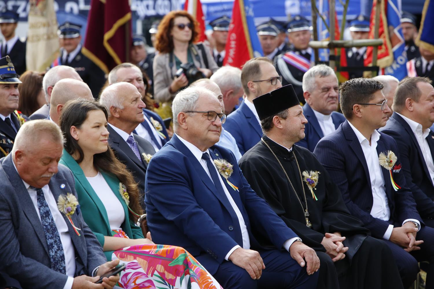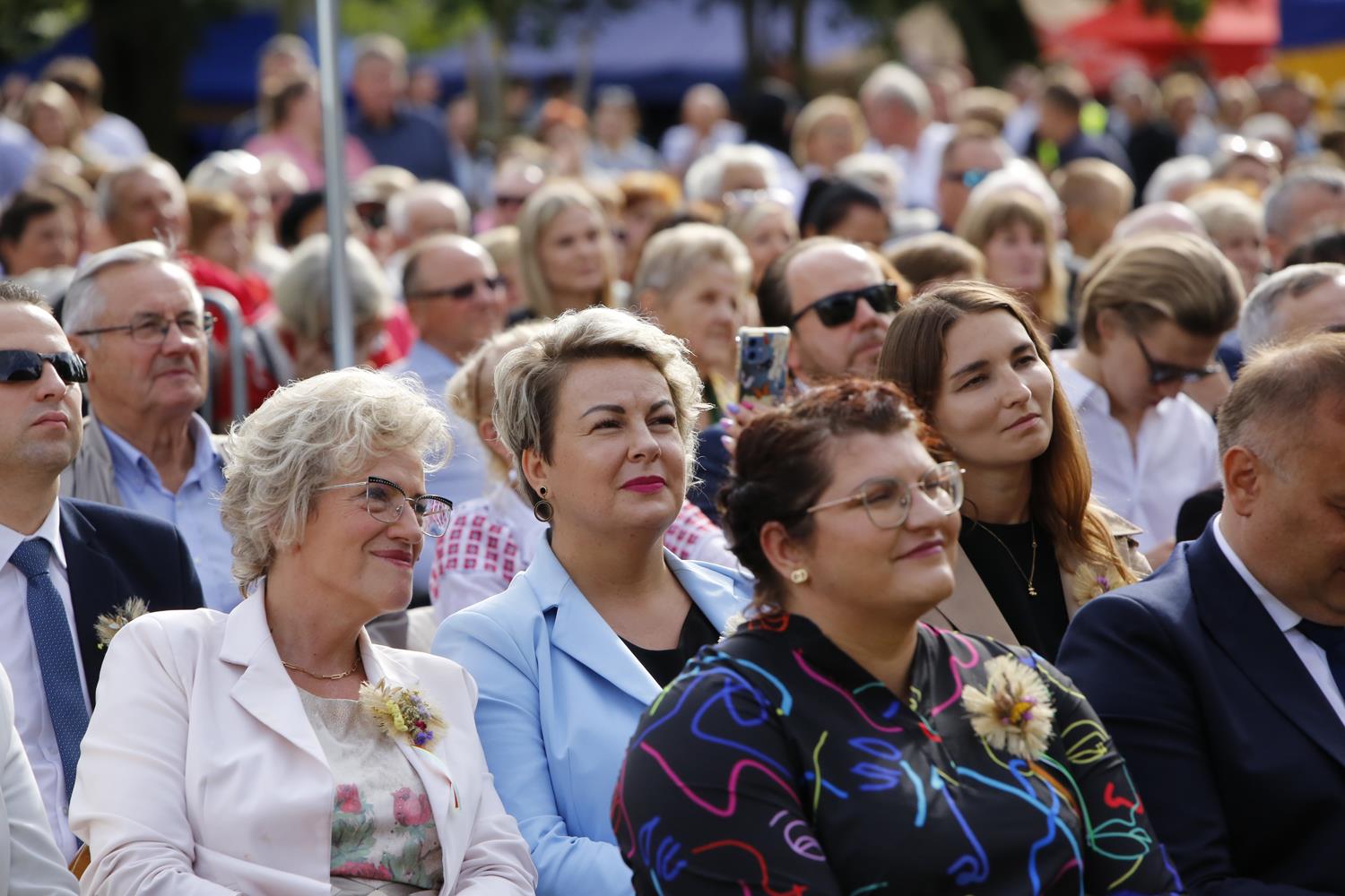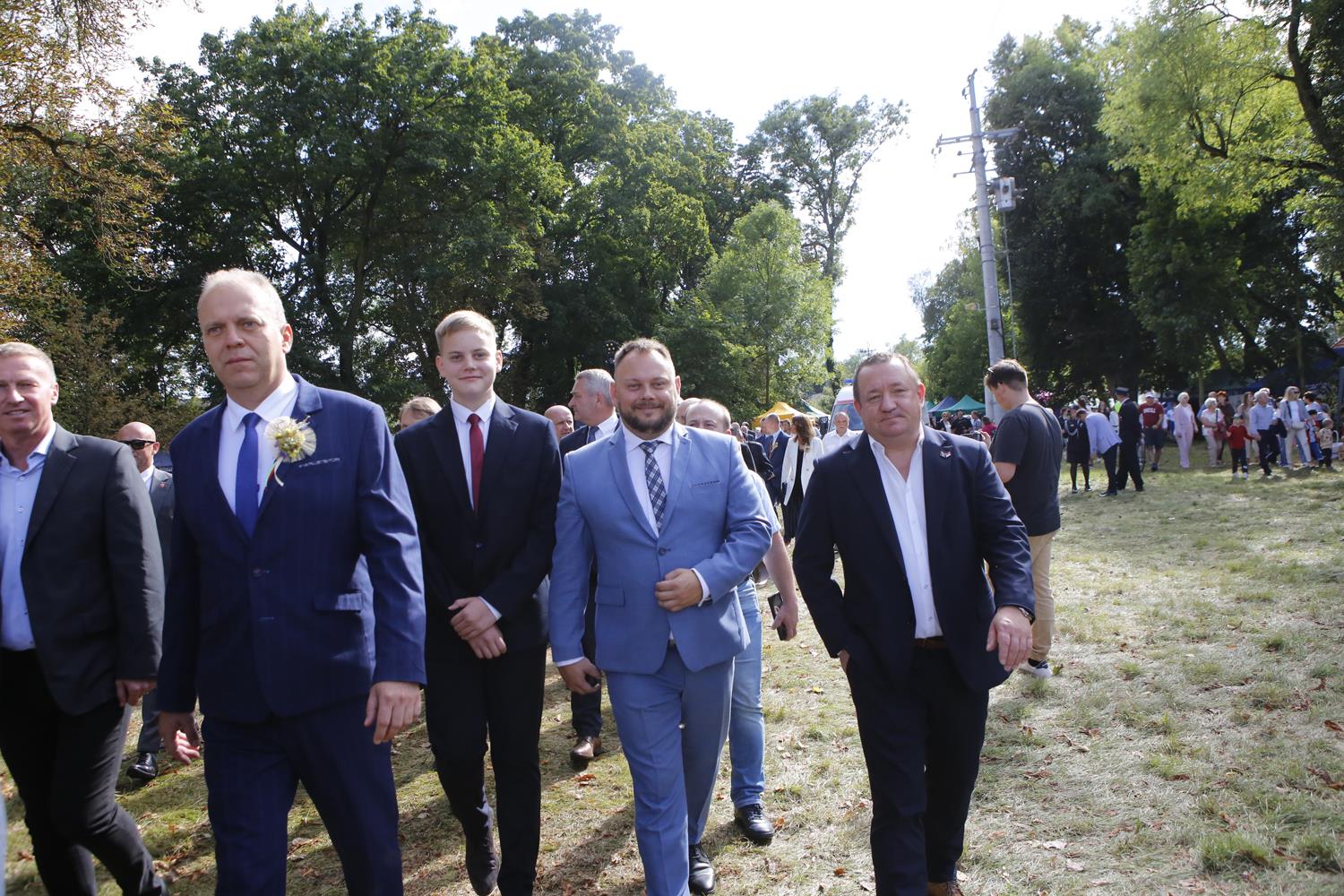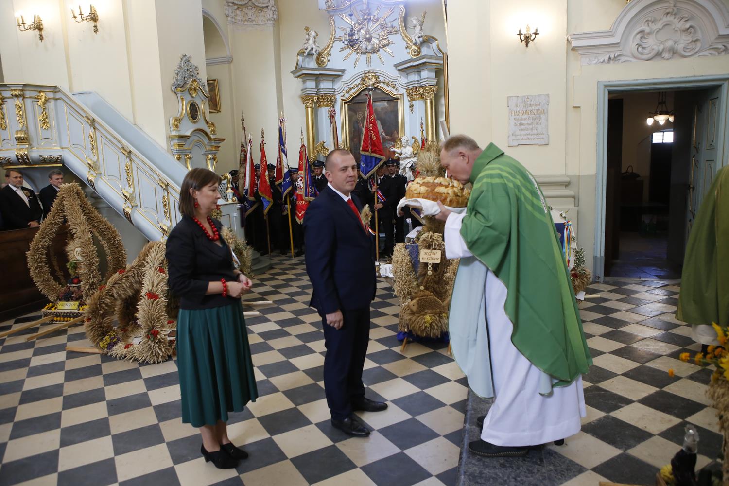Do zebranych zwróciła się także burmistrz Sulejowa, Dorota Jankowska. – Dziękujemy dziś za plony w 2024 roku, a cytując papieża Jana Pawła II: „Oddajcie hołd spracowanym rękom polskiego rolnika, tym rękom, które w trudnej, ciężkiej ziemi wydobywały chleb dla kraju. W chwilach zagrożenia były gotowe tej ziemi strzec i bronić”. Oddajemy szacunek i podziękowanie. Dożynki to jeden z najpiękniejszych dni w roku dla rolnika. Święto plonów i radości, dzisiejsze święto jest niestety w cieniu dużego dramatu, który się dzieje na południu Polski. Dużo niepokoju jest w komunikatach meteorologicznych. Jak państwo pamiętają, gmina Sulejów przeżyła powódź w 2010 roku, my też mamy jeden, jedyny most w naszym mieście i mamy świadomość, co by to dla nas znaczyło, gdybyśmy ten most stracili. Dlatego dzisiaj solidaryzujemy się bardzo mocno ze wszystkimi, którzy przeżywają dramat powodzi, deklarując, że jeśli będziemy potrzebni, jesteśmy do dyspozycji i na pewno solidarnie wesprzemy. W tej chwili nic nie wskazuje, żeby naszej gminie groziło niebezpieczeństwo, ale śledzimy bardzo uważnie komunikaty, mamy również plan działania i chciałabym państwa zapewnić, że w razie jakiegokolwiek zagrożenia, mogą państwo liczyć na nasze pełne zaangażowanie. Drodzy rolnicy, nieprzewidywalność warunków atmosferycznych to codzienność waszej pracy, dożynki przypominają nam, że to dzięki ciężkiej pracy rolnika chleb codziennie pojawia się na naszym stole. Dziękujemy wam za to. Tereny rolnicze w gminie Sulejów zajmują 48% jej powierzchni. Przez ostatnie cztery miesiące bardzo staraliśmy się o was zadbać, tak, żeby na początek skomunikować mieszkańców tych terenów z Sulejowem i Piotrkowem, likwidując wykluczenia komunikacyjne. Jesteśmy w kontakcie z podmiotami podłączającymi światłowód, w przyszłym roku cały teren gminy będzie pokryty szybkim Internetem. Wiem, że to dla państwa było bardzo ważne, szczególnie na terenach rolniczych, odległych od Sulejowa. Planujemy również szereg inwestycji drogowych, które umożliwią poruszanie się, między innymi po drogach dojazdowych do pól. Wszystko to po to, by podnieść jakość życia mieszkańców naszej gminy. Rolnicy, pszczelarze, producenci żywności, dziękują wam za wasz trud, za pracę i życzę wam dobrej pogody i dobrych plonów w kolejnych latach – dodała Dorota Jankowska.
