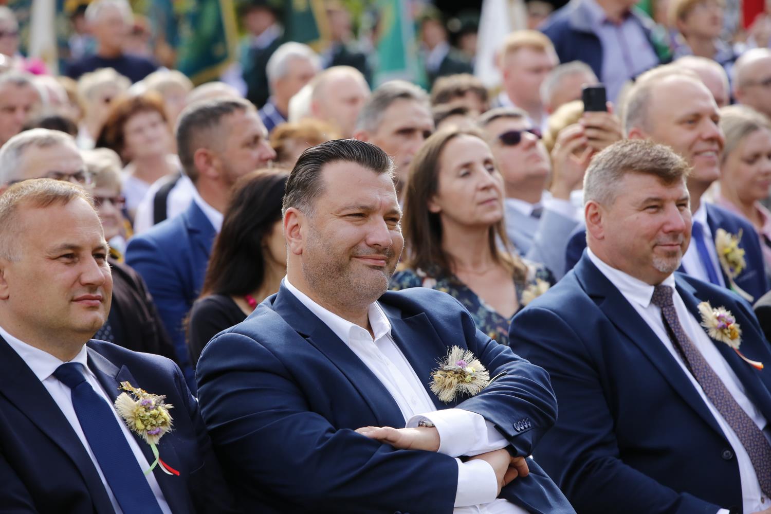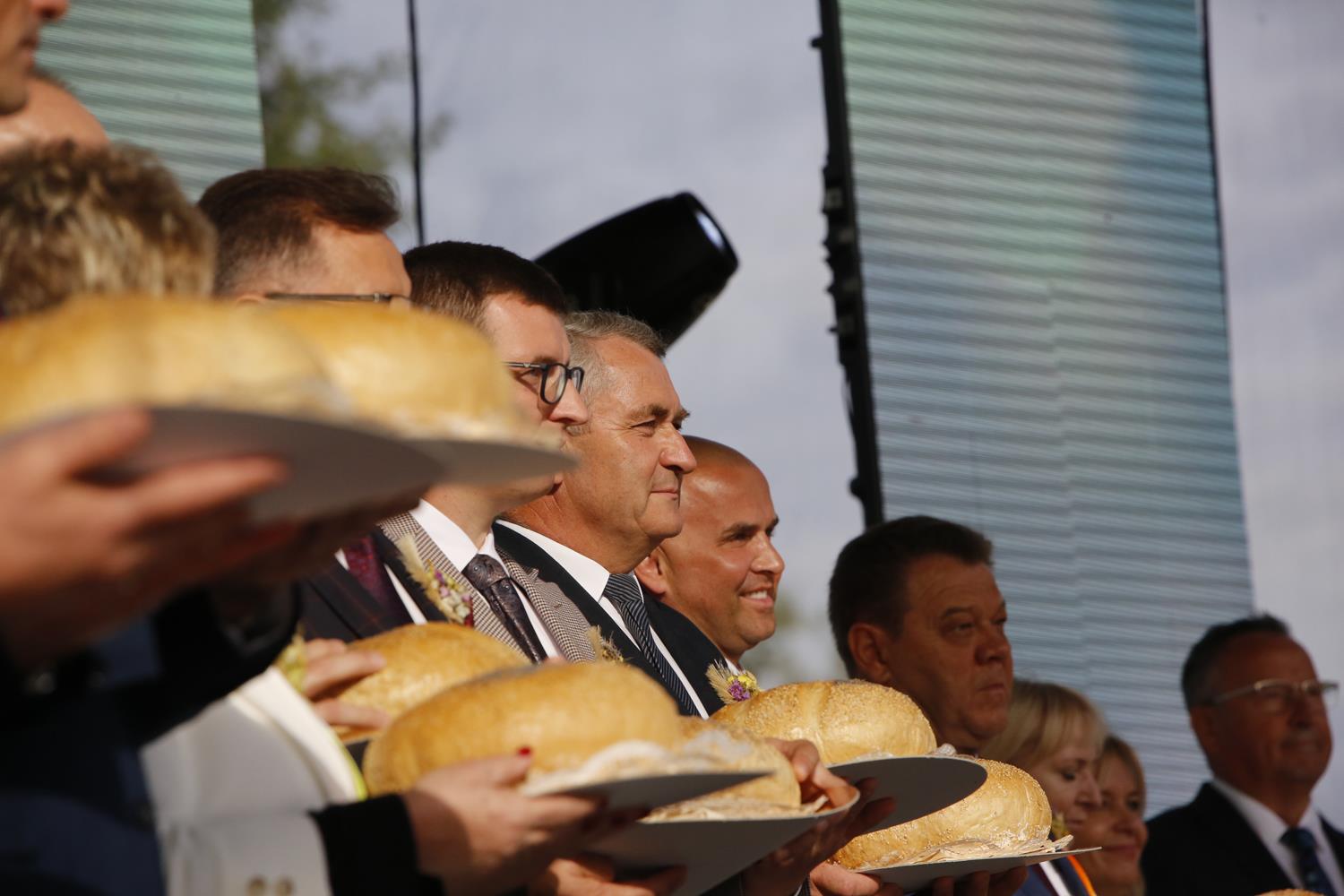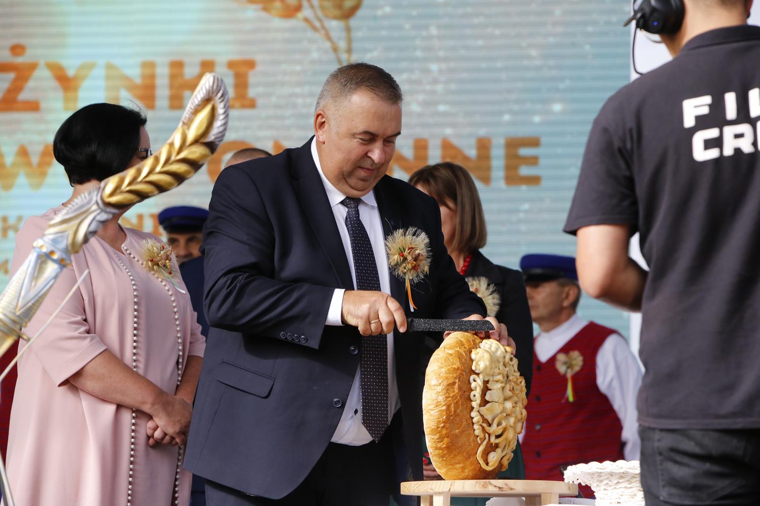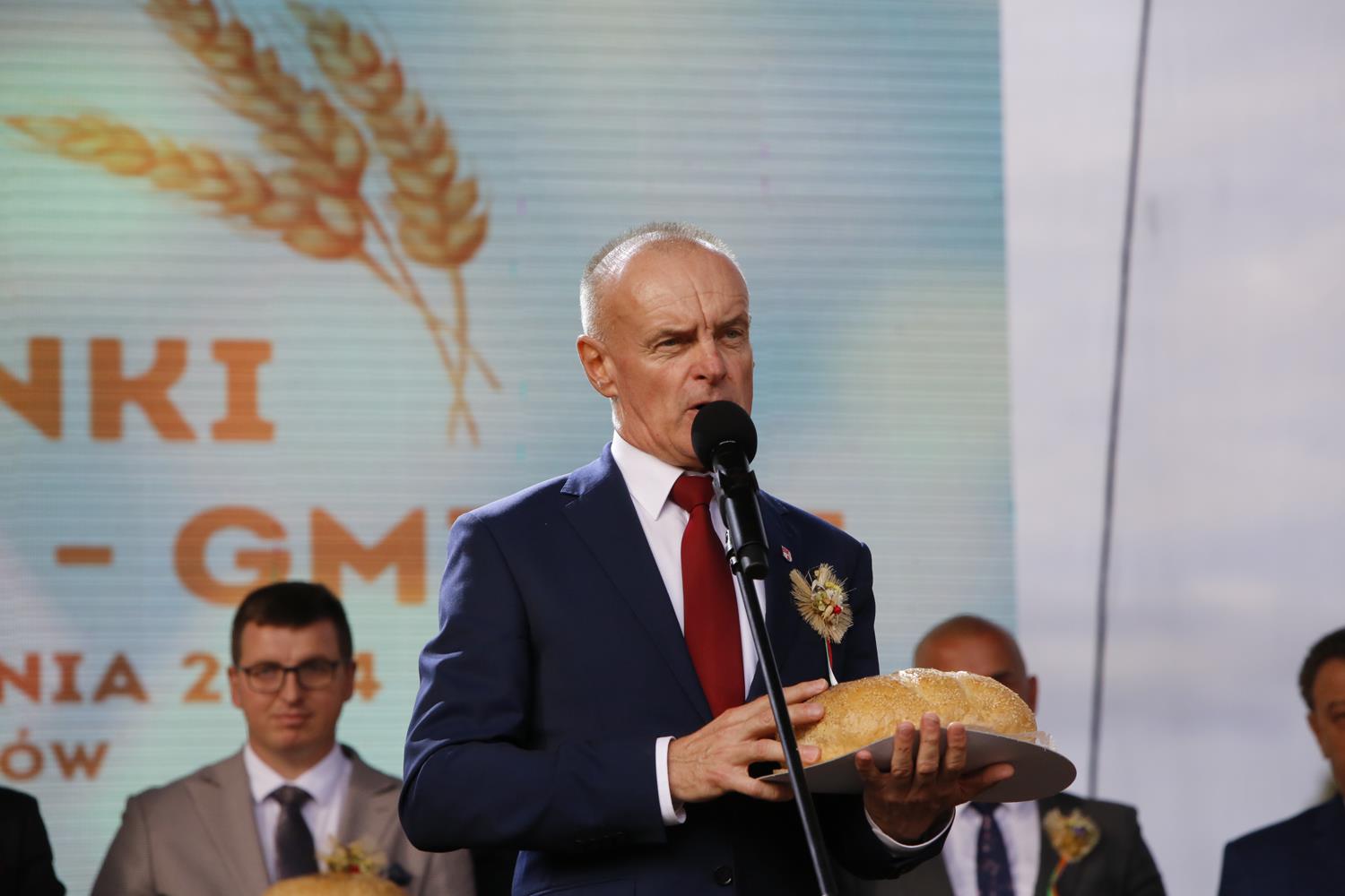– Dziękuję między innymi wszystkim kołom gospodyń, które tak się napracowały, dlatego nie wyobrażałem sobie, żeby te Dożynki się nie odbyły, a były rekomendacje, żeby je odwołać. Powiedziałem panu wojewodzie, że jeśli będzie nam zagrażała powódź, to podejmiemy taką decyzję nawet w ostatniej chwili, żeby nikomu się nic nie stało, ale jak państwo widzą, nikomu się nic nie stanie, bo dzisiaj możemy przy promieniach słonecznych państwu dziękować. Szanowni państwo, jako starosta piotrkowski chciałbym łączyć, ale nie w złości i gniewie, tylko w miłości i chlebie, mieszkańców ziemi piotrkowskiej – powiedział Piotr Łączny.