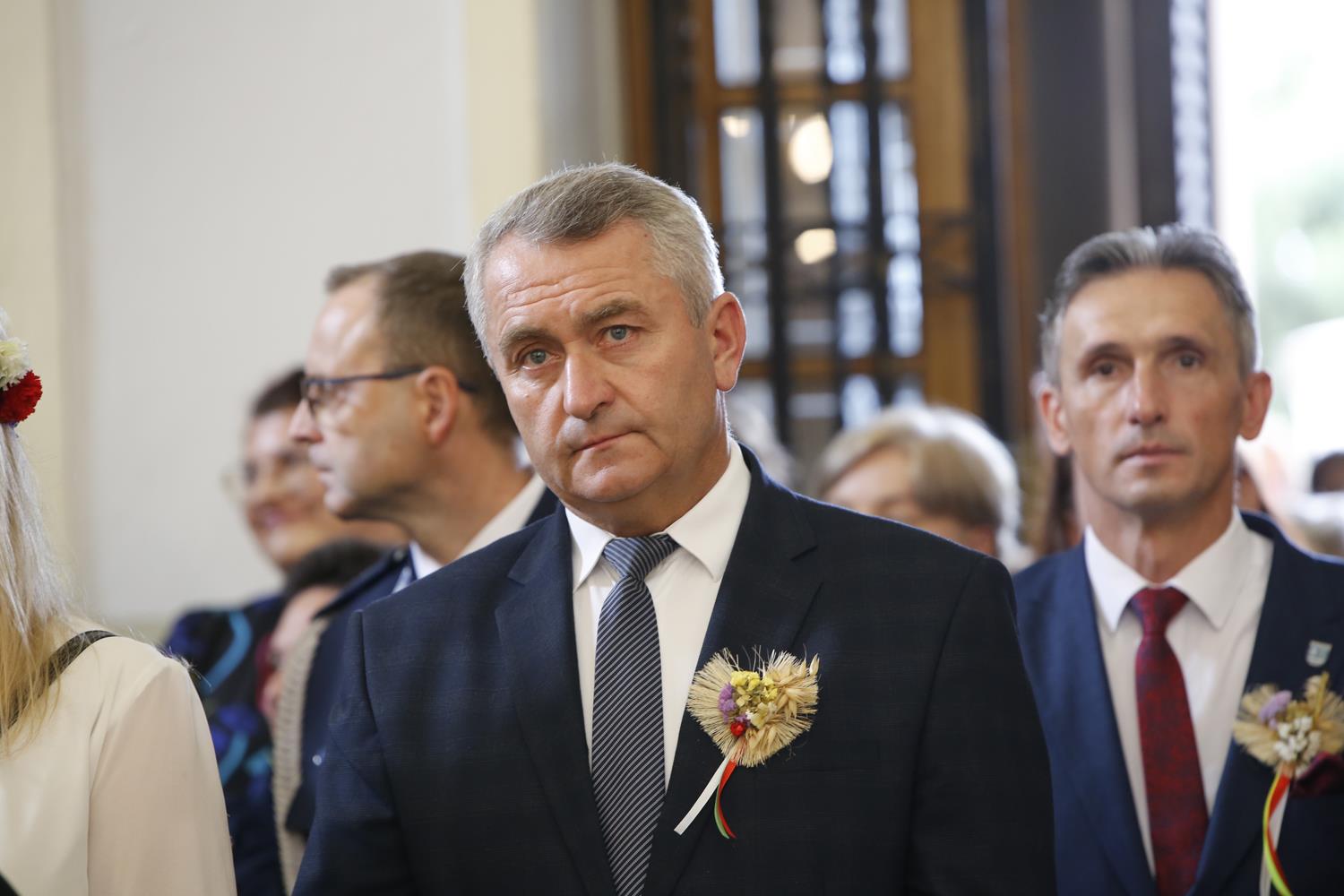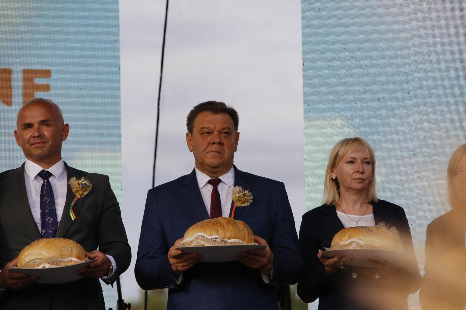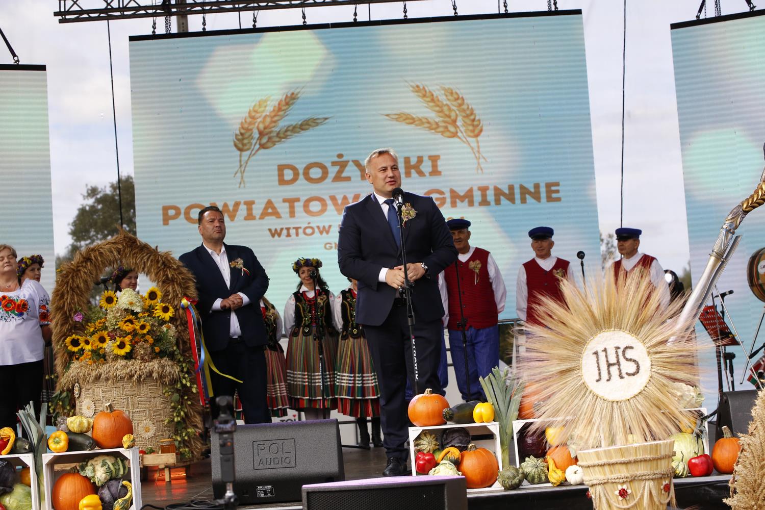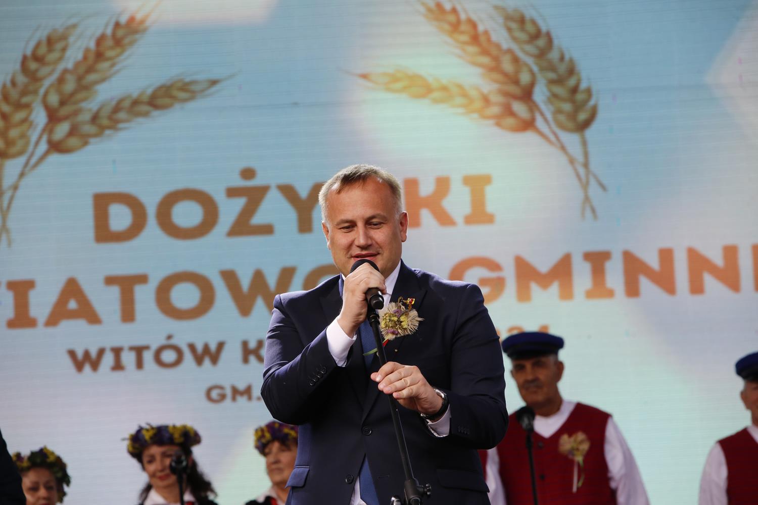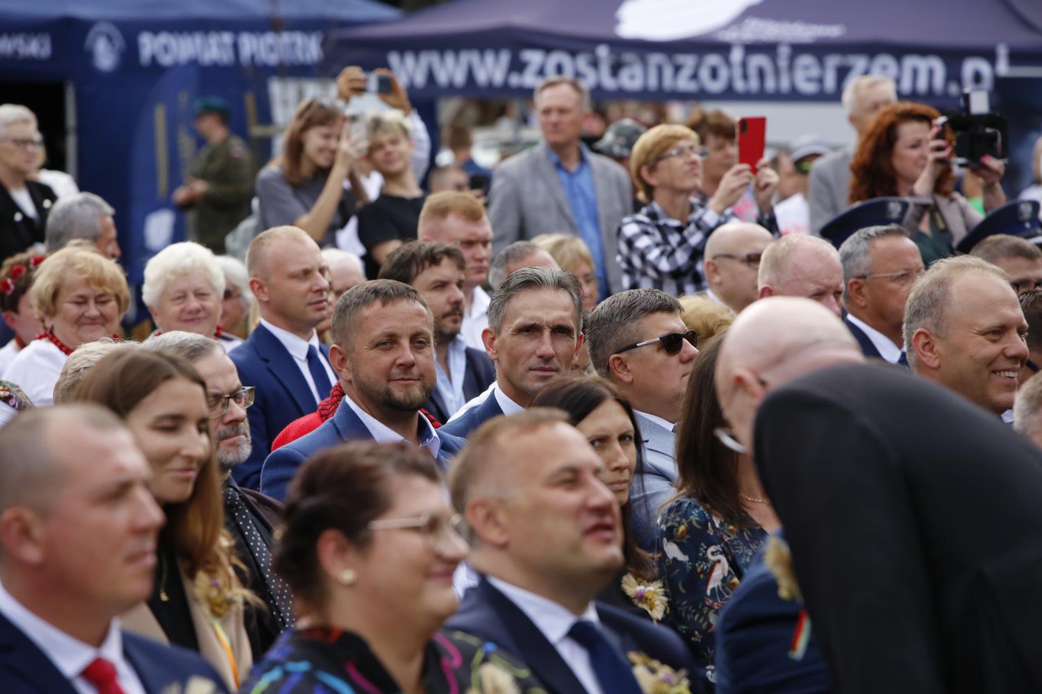 – Dziękuję między innymi wszystkim kołom gospodyń, które tak się napracowały, dlatego nie wyobrażałem sobie, żeby te Dożynki się nie odbyły, a były rekomendacje, żeby je odwołać. Powiedziałem panu wojewodzie, że jeśli będzie nam zagrażała powódź, to podejmiemy taką decyzję nawet w ostatniej chwili, żeby nikomu się nic nie stało, ale jak państwo widzą, nikomu się nic nie stanie, bo dzisiaj możemy przy promieniach słonecznych państwu dziękować. Szanowni państwo, jako starosta piotrkowski chciałbym łączyć, ale nie w złości i gniewie, tylko w miłości i chlebie, mieszkańców ziemi piotrkowskiej – powiedział Piotr Łączny.