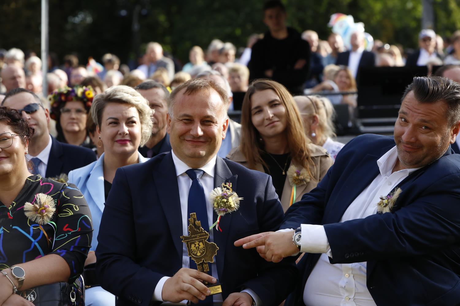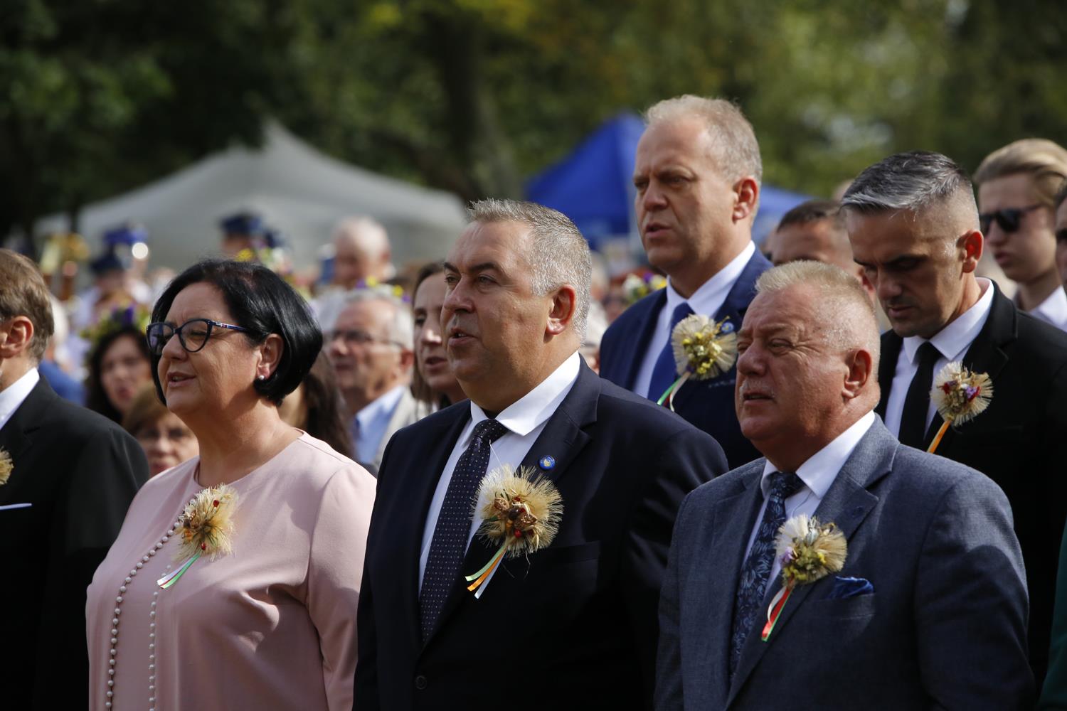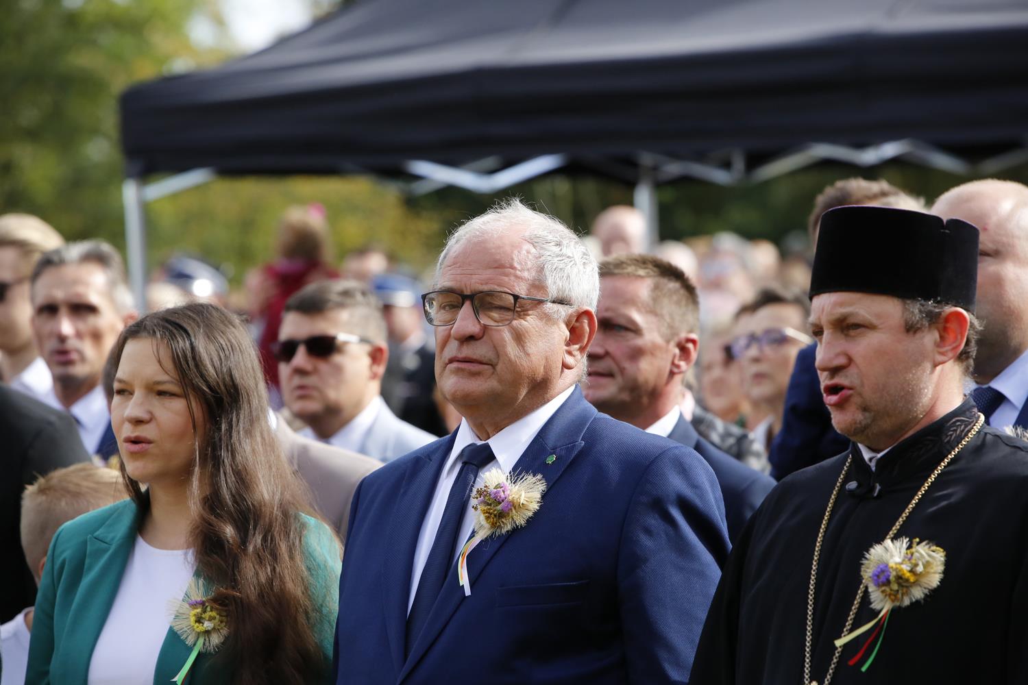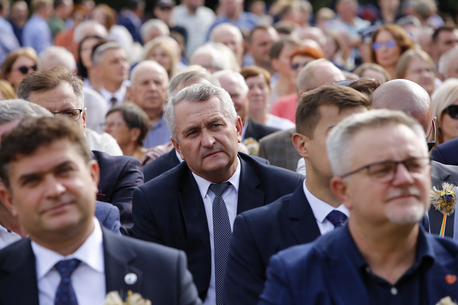 – Dziękuję między innymi wszystkim kołom gospodyń, które tak się napracowały, dlatego nie wyobrażałem sobie, żeby te Dożynki się nie odbyły, a były rekomendacje, żeby je odwołać. Powiedziałem panu wojewodzie, że jeśli będzie nam zagrażała powódź, to podejmiemy taką decyzję nawet w ostatniej chwili, żeby nikomu się nic nie stało, ale jak państwo widzą, nikomu się nic nie stanie, bo dzisiaj możemy przy promieniach słonecznych państwu dziękować. Szanowni państwo, jako starosta piotrkowski chciałbym łączyć, ale nie w złości i gniewie, tylko w miłości i chlebie, mieszkańców ziemi piotrkowskiej – powiedział Piotr Łączny.