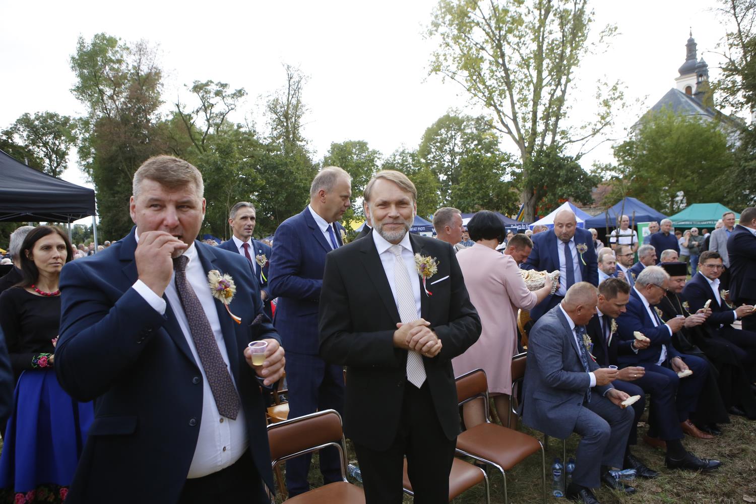 Tradycje ludowe w czasie dożynek były widoczne na każdym kroku. Chlebkami obdarowano gospodarzy ziemi piotrkowskiej parlamentarzystów, przedstawicieli rządu, samorządowców gmin powiatu piotrkowskiego, a także powiatu radomszczańskiego i łódzkiego wschodniego. Starosta Piotr Łączny podziękował w imieniu mieszkańców wszystkim rolnikom, pszczelarzom, ogrodnikom, sadownikom za ich coroczny trud i życzył – także paniom z kół gospodyń wiejskich, druhom z OSP i sołtysom – zdrowia, szczęścia, pogody ducha oraz kolejnych dobrych plonów.