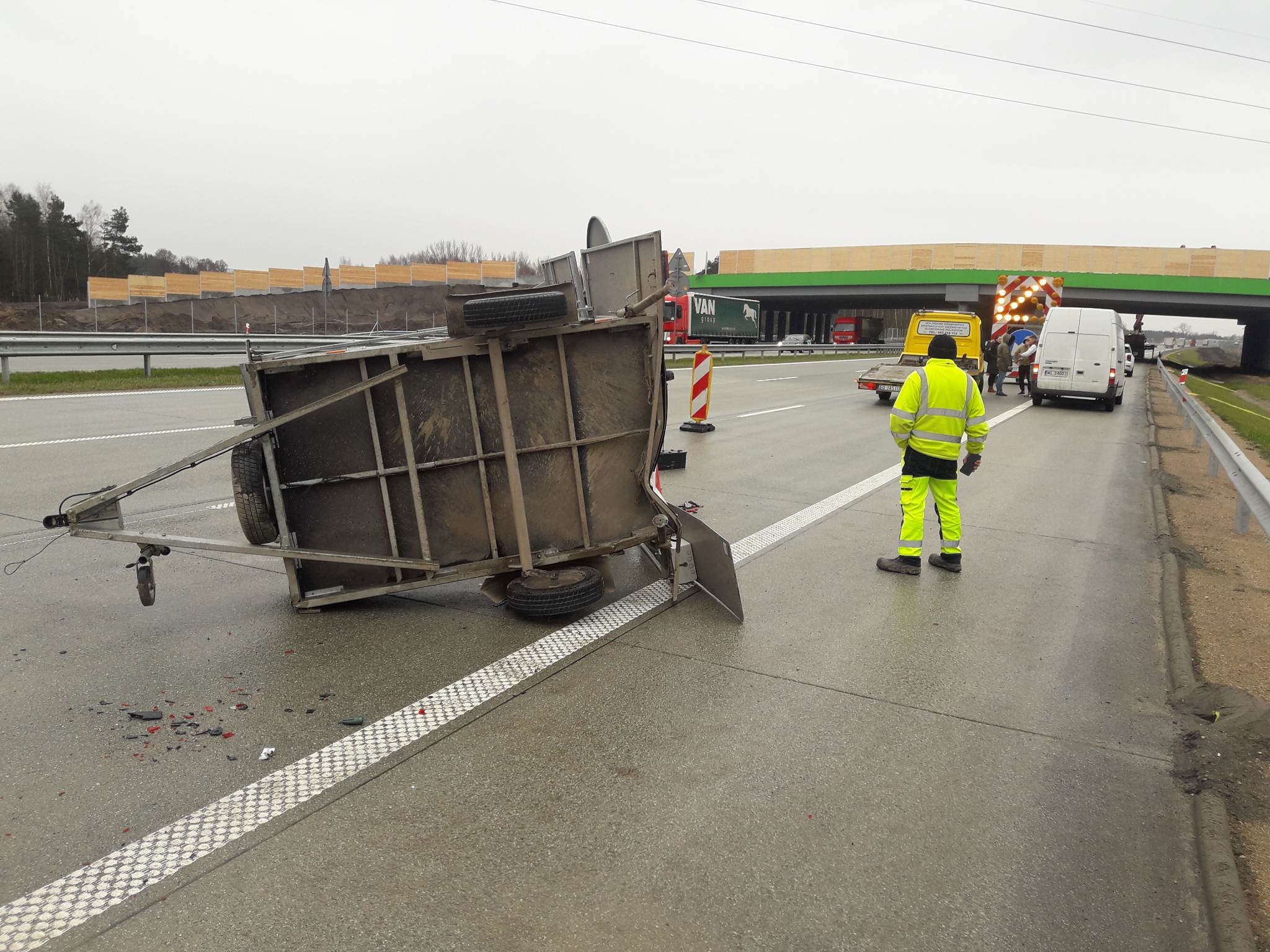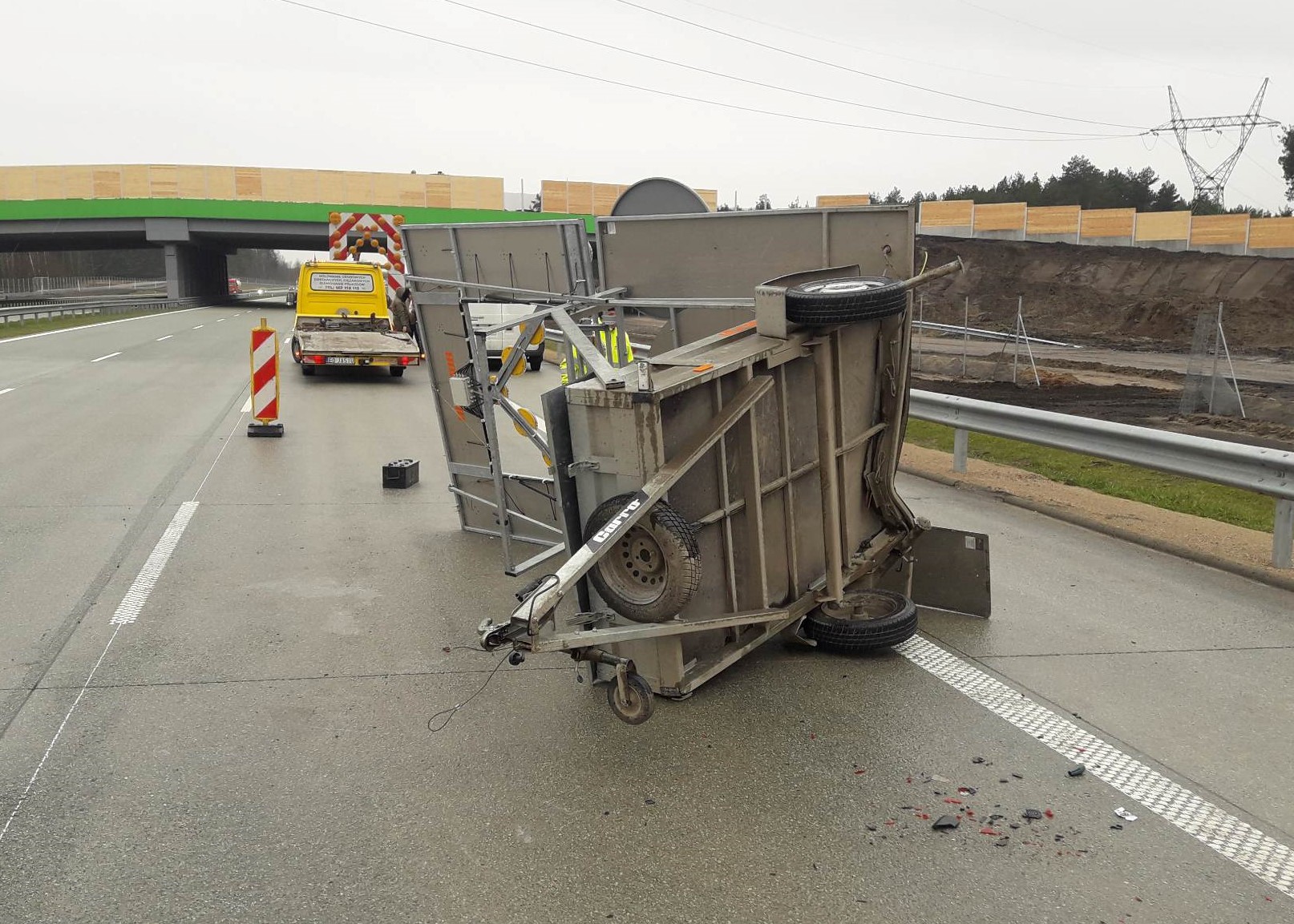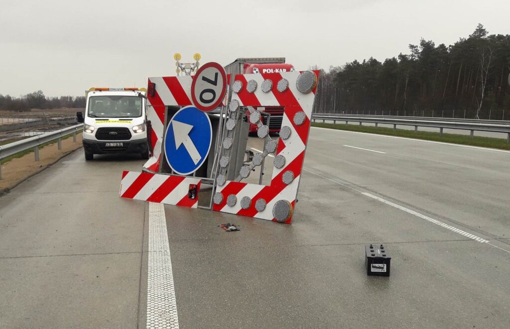 Na szczęście nie ma ofiar w ludziach, ale przyczepa służby drogowej została zniszczona. Z naszych informacji wynika, że uderzył w nią kierowca samochodu dostawczego, którego chwilę wcześniej zepchnął na bariery rozpędzony tir. Kierowca ciężarówki miał się nawet zatrzymać, ale kiedy zobaczył, że nie ma osób rannych, odjechał z miejsca zdarzenia.