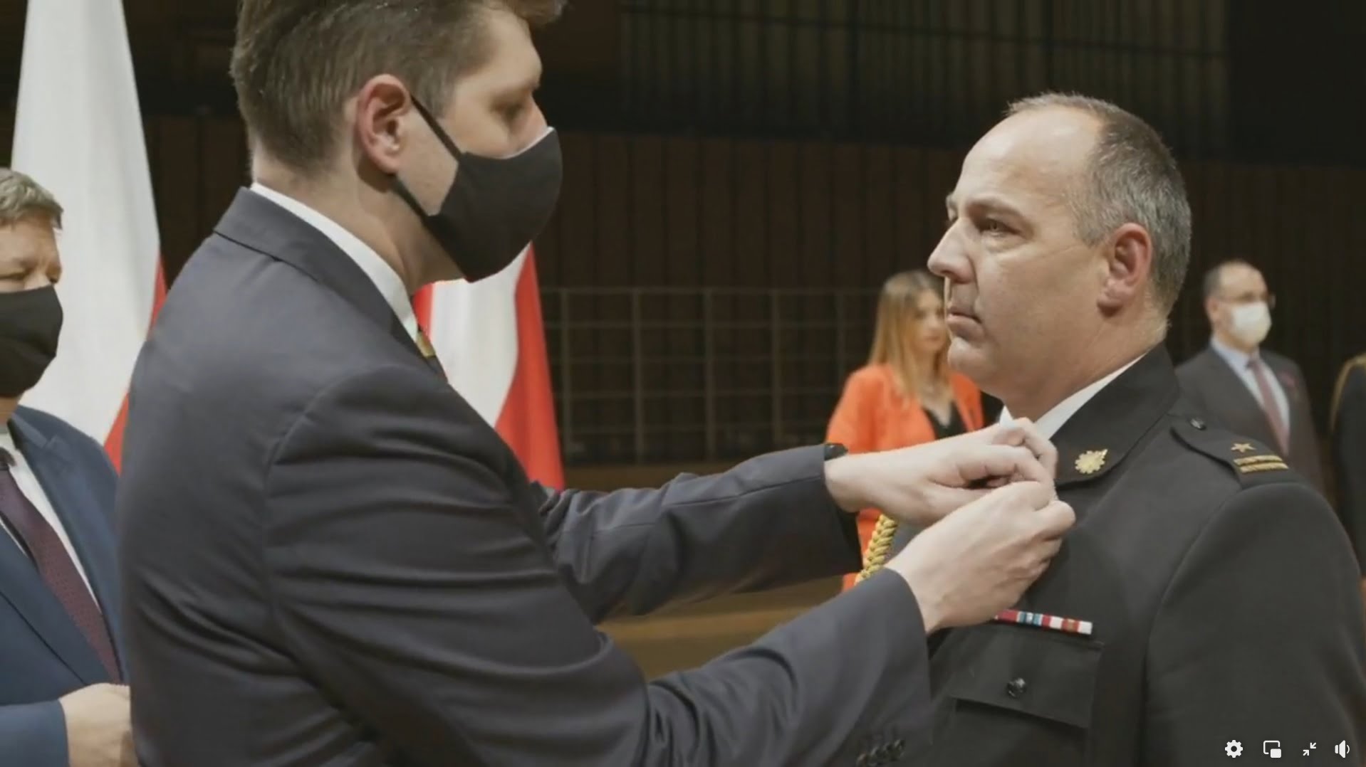 Mł. bryg. Wojciech Pawlikowski zastępca dowódcy Jednostki Ratowniczo Gaśniczej KM PSP w Piotrkowie Trybunalskim, został odznaczony Brązowym Krzyżem Zasługi za walkę z pandemią.
