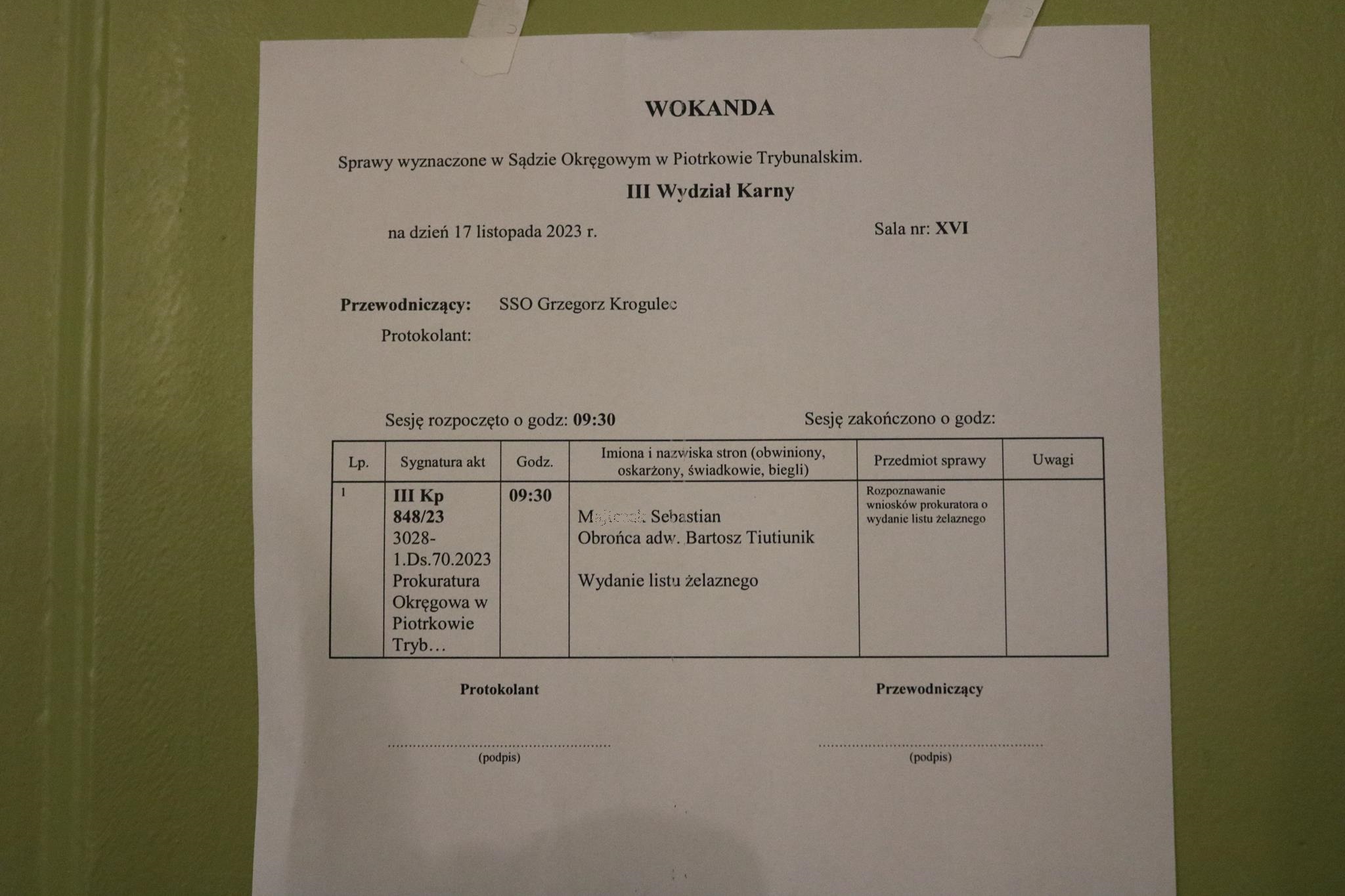 Sebastian M. nie otrzyma listu żelaznego o wydanie którego wnioskował obrońca oskarżonego – taką decyzje wydał dziś (17.11) Sąd Okręgowy w Piotrkowie.