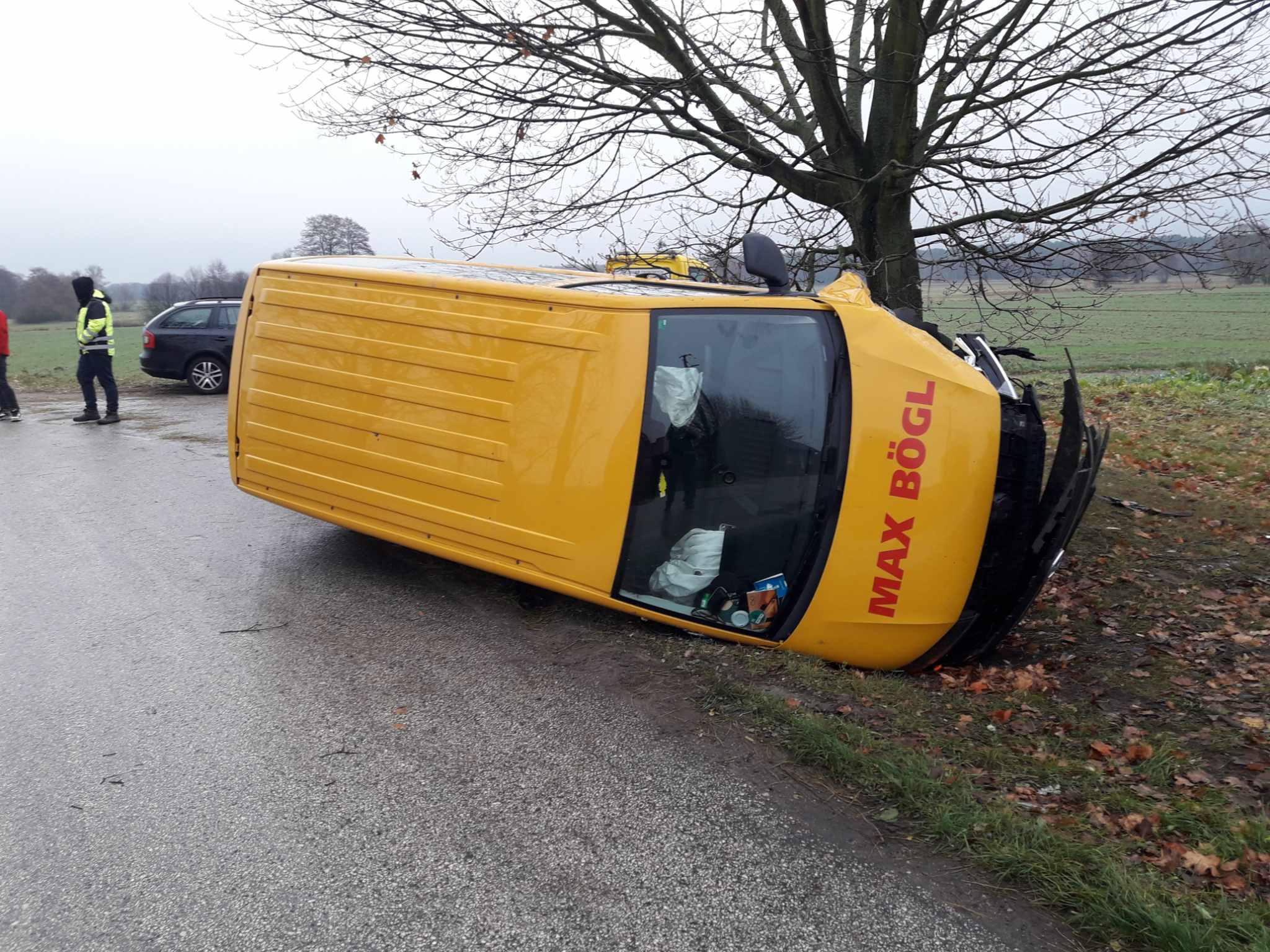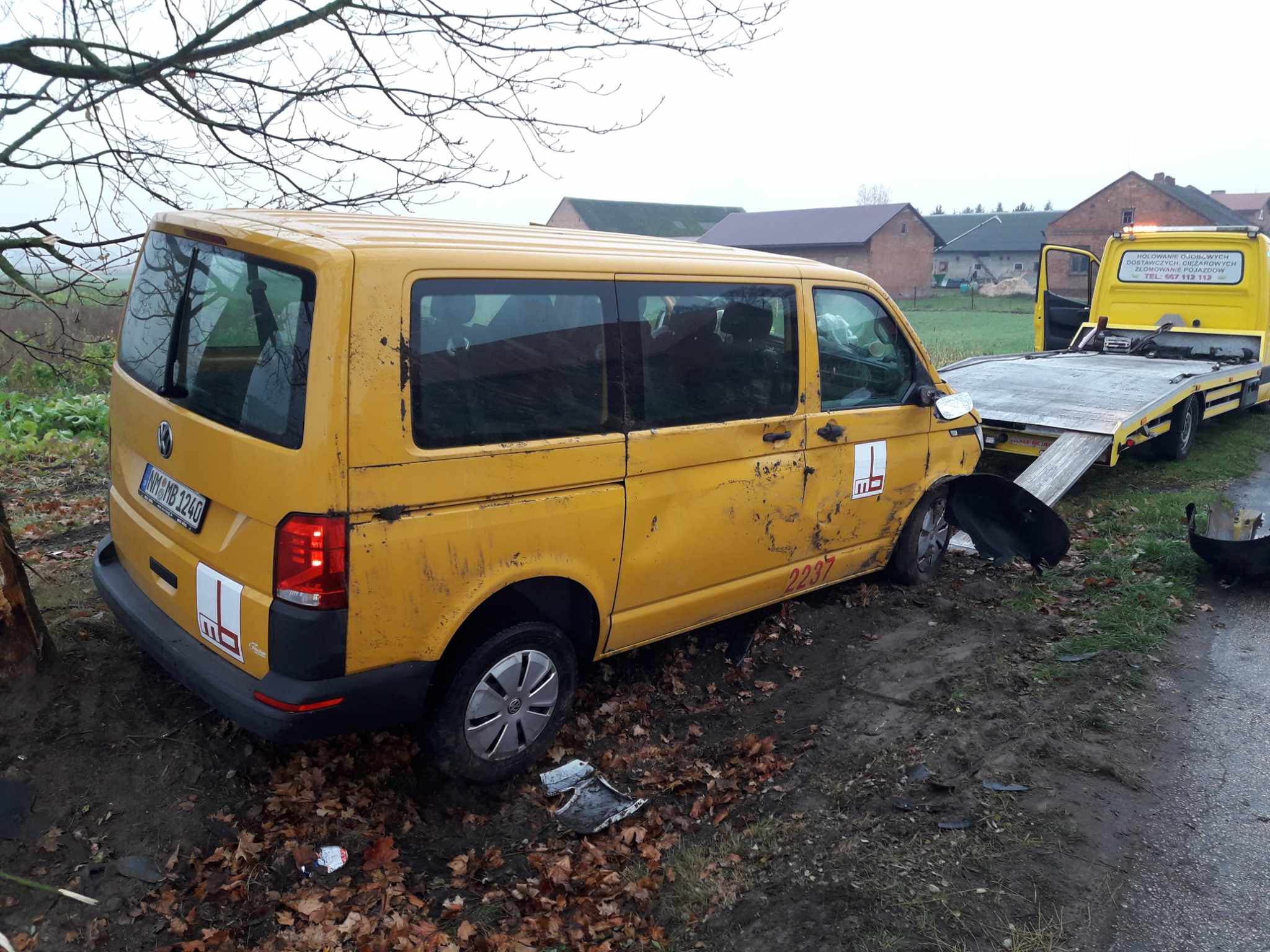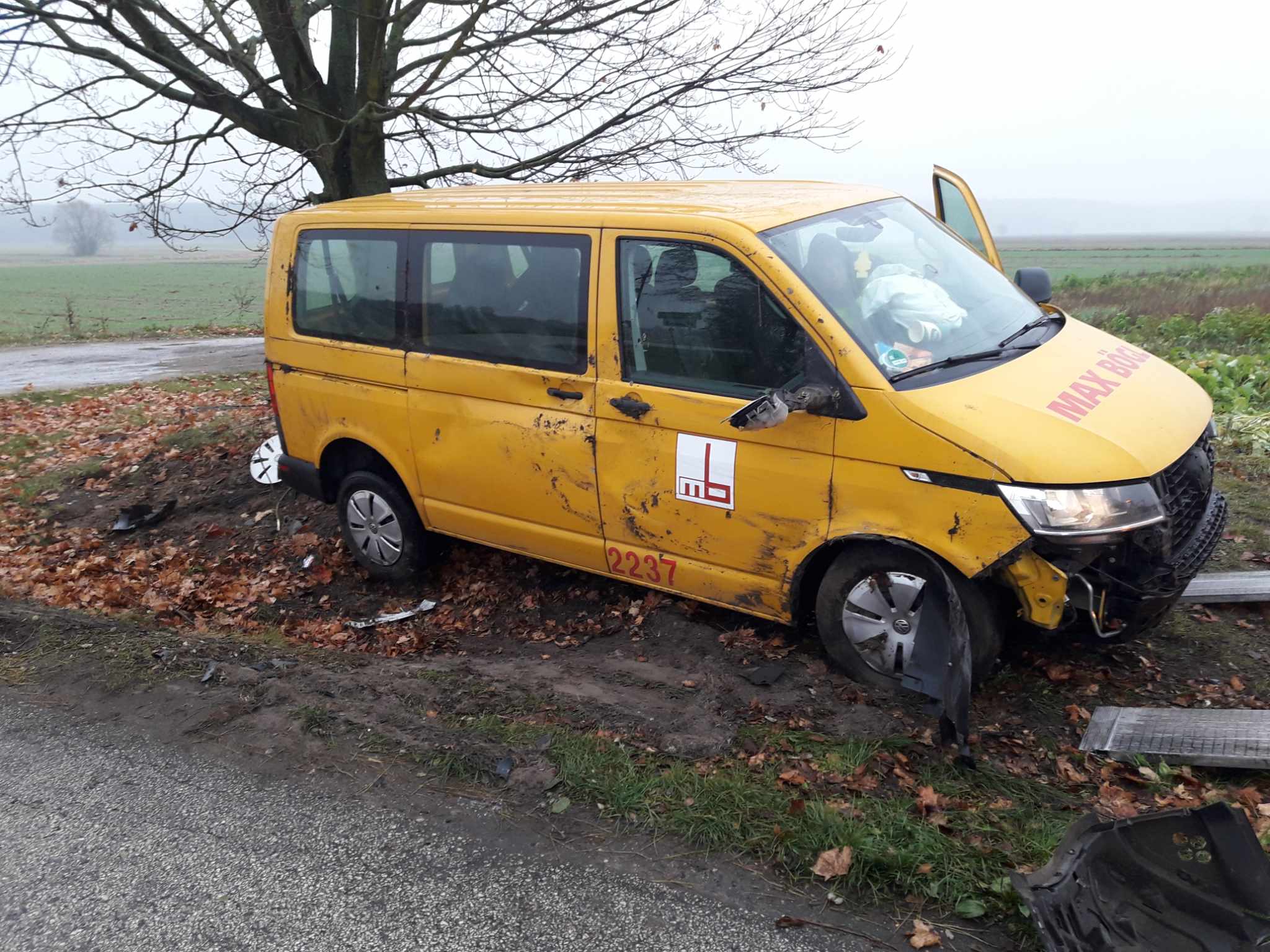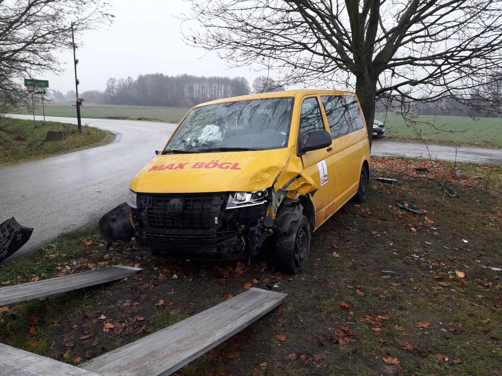Kierowca Volkswagena jechał od strony Kłudzic w stronę Milejowa. W Milejowcu stracił panowanie nad pojazdem, wpadł w poślizg i doszło do wywrotki busa. Kierowca przekazał, że na drogę wybiegła mu sarna. Kierującemu (i sarnie) nic się nie stało.