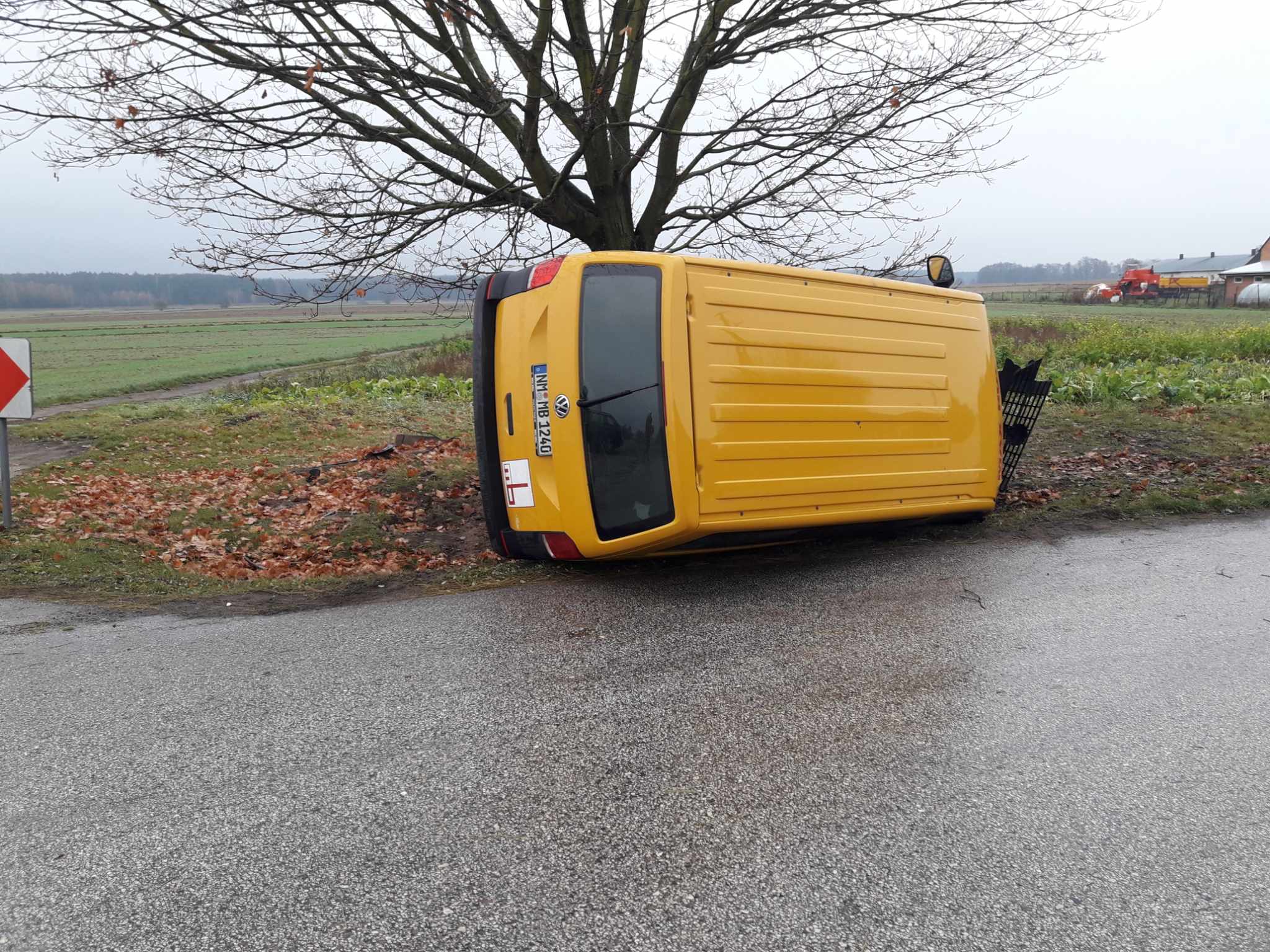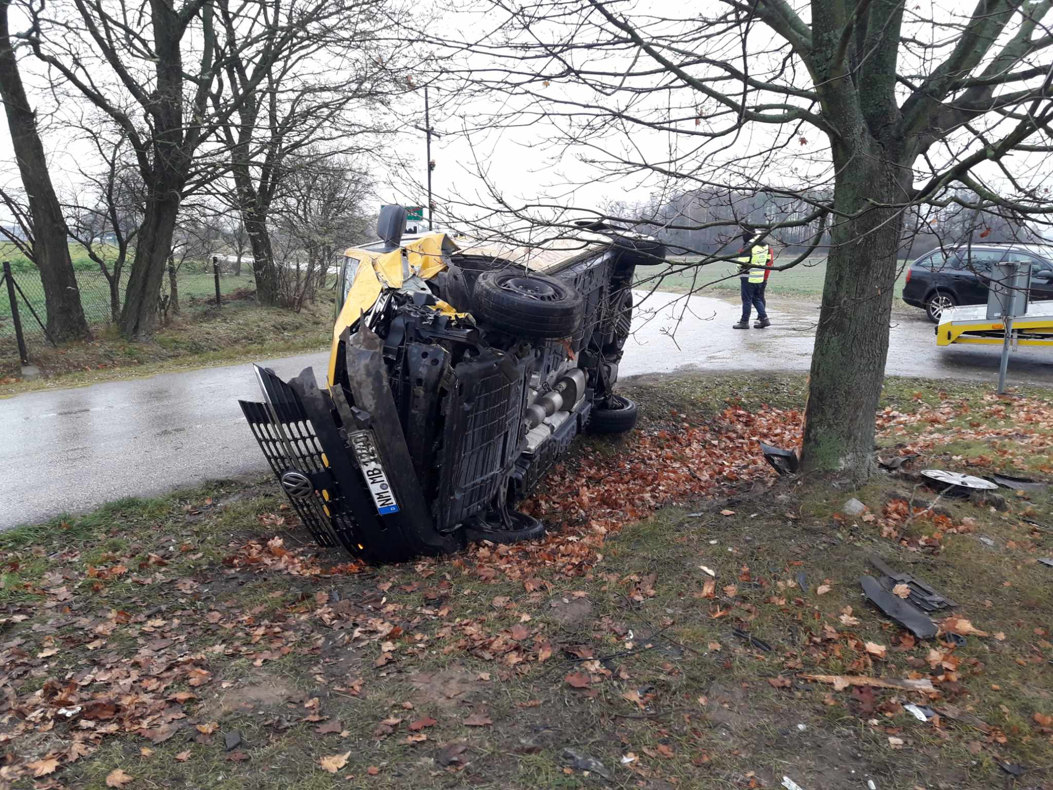 Kierujący Volkswagenem na łuku drogi stracił panowanie nad pojazdem i przewrócił się. Do zdarzenia doszło w poniedziałek przed południem w Milejowcu w gminie Rozprza.