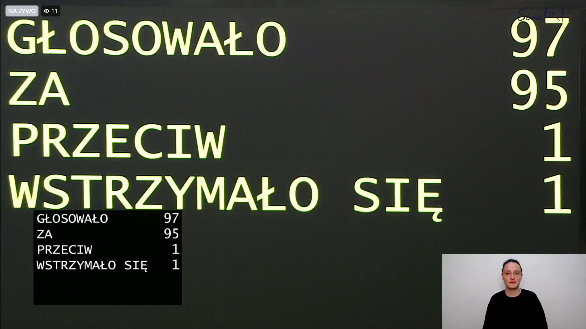 W głosowaniu wzięło udział 97 senatorów. Jedna osoba była przeciw, kolejna wstrzymała się od głosy, z kolei 95 parlamentarzystów głosowało ZA przyjęciem ustawy.