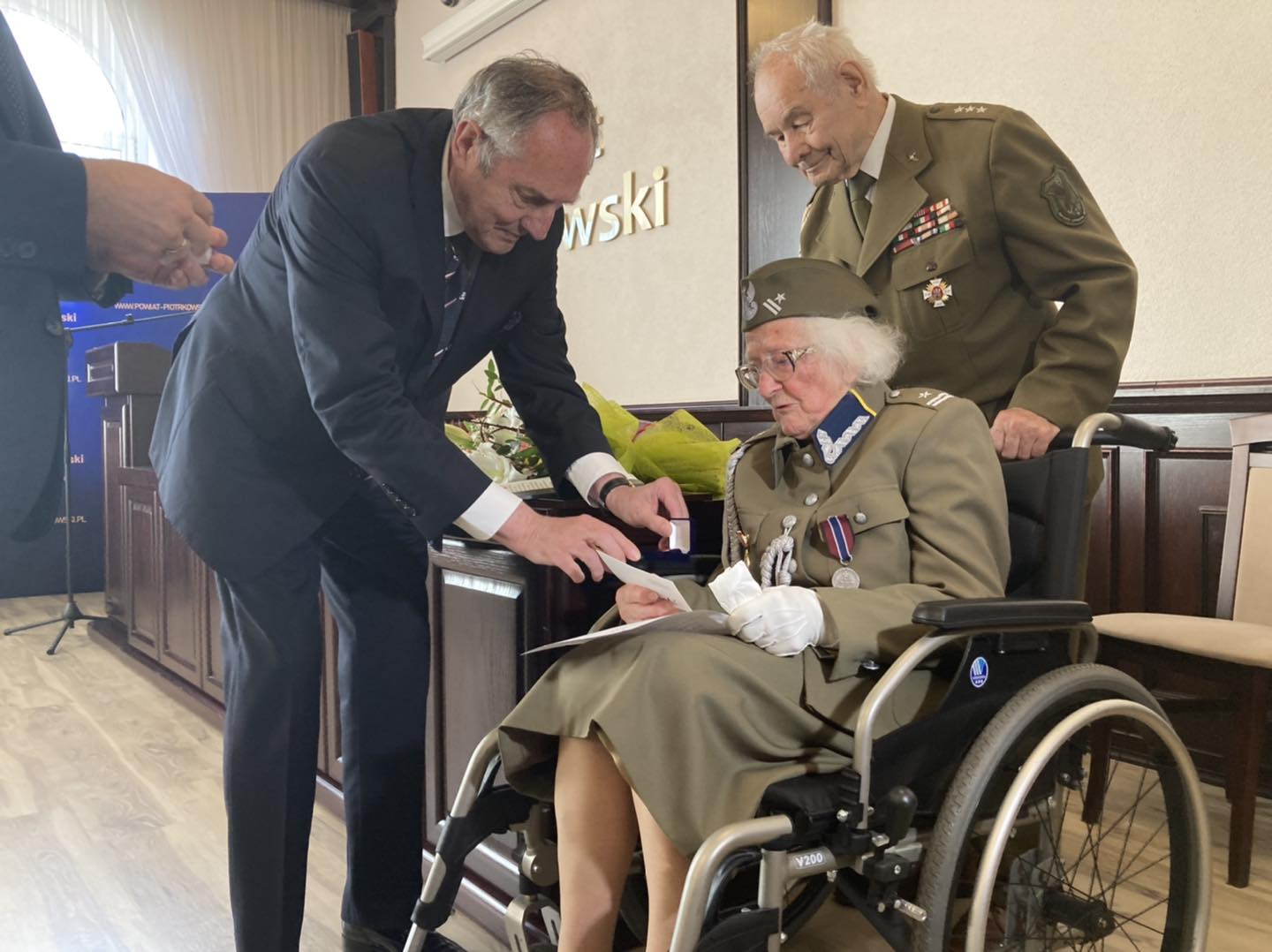 – Pani Wacława to żywa legenda dla ziemi piotrkowskiej. Jestem szczęśliwy, że dzisiaj w starostwie tamy tak zacnych gości, którzy przybyli na ten wyjątkowy jubileusz. To będzie także doskonała okazja, aby wyrazić swoją wdzięczność za jej życie i pracę na rzecz wszystkich mieszkańców. Dziś jako samorząd ziemi piotrkowskiej mamy zaszczyt wręczyć Złoty Medal – Zasłużony dla Ziemi Piotrkowskiej. Tym wyróżnieniem, chcieliśmy podkreślić rolę pani Wacławy jaką wykonywała zarówno dla miasta Piotrkowa, jak i dla całej ziemi piotrkowskiej. Jestem dumny, że to mi przypada ten zaszczyt, jako staroście piotrkowskiemu, by spotkać się z panią Wacławą i podziękować jej za całe życie i zaangażowanie na rzecz społeczeństwa – powiedział w rozmowie z nami starosta Piotr Wojtysiak, któremu towarzyszył Przewodniczący Rady Powiatu Bernard Matyszewski.