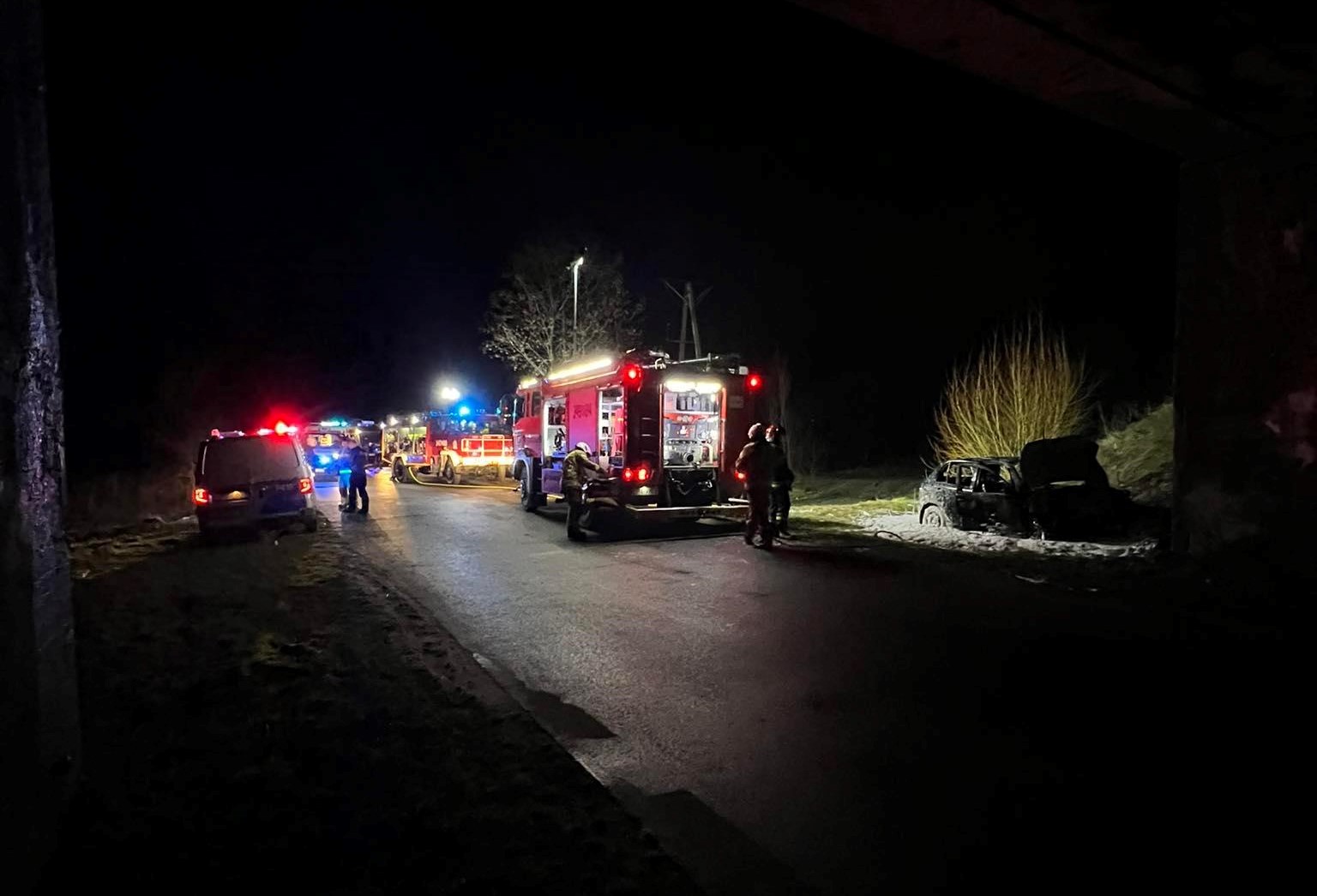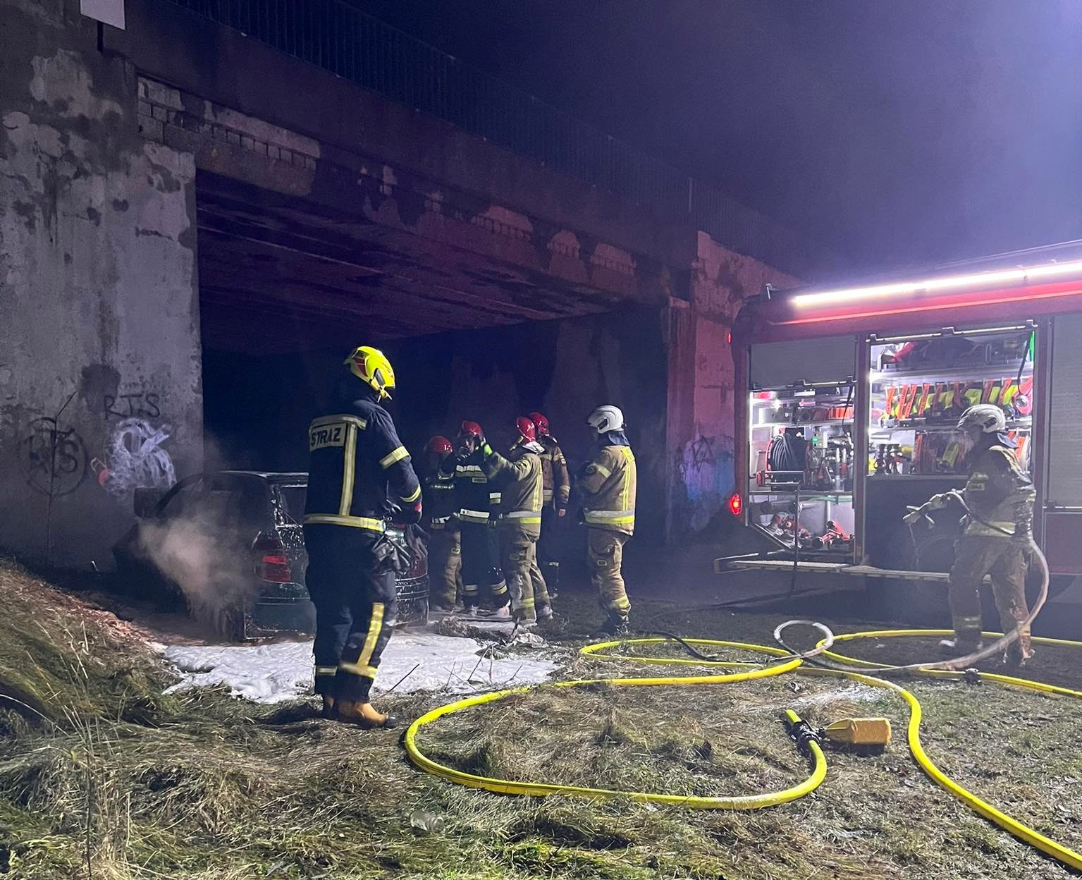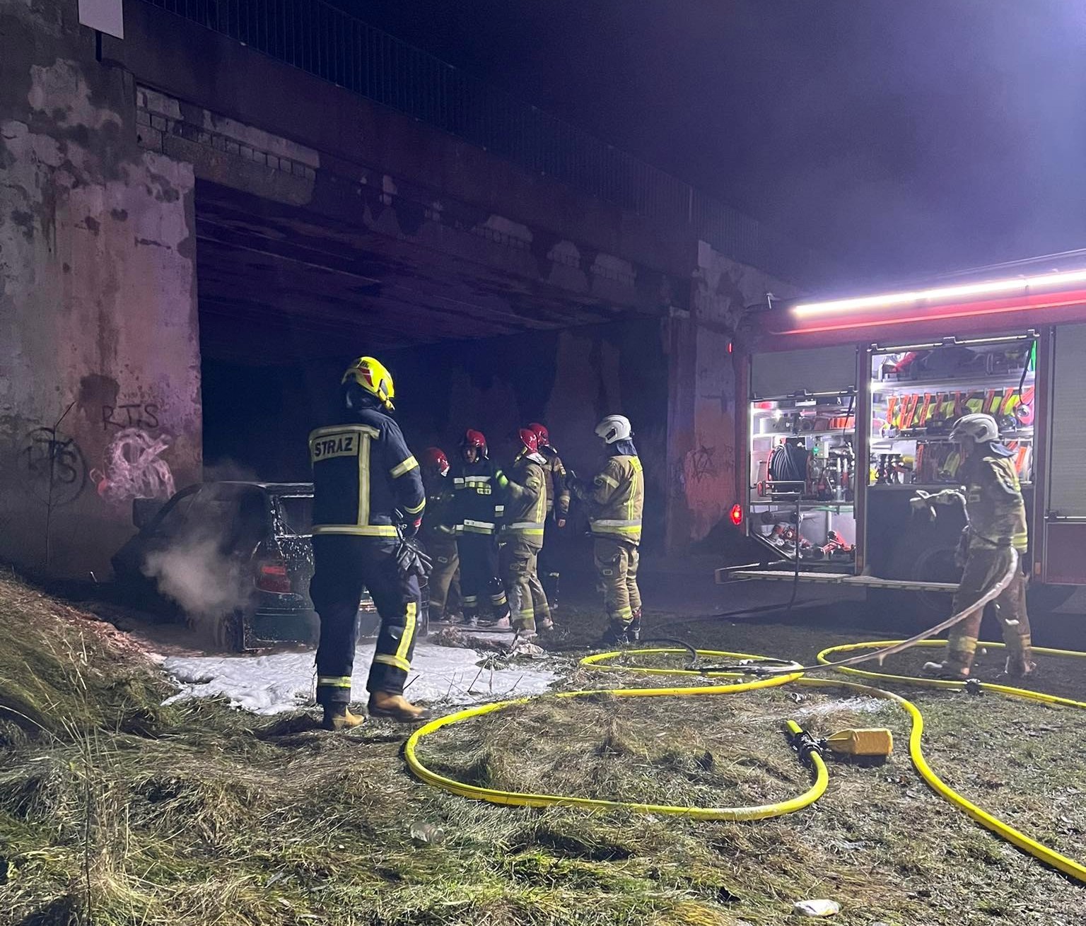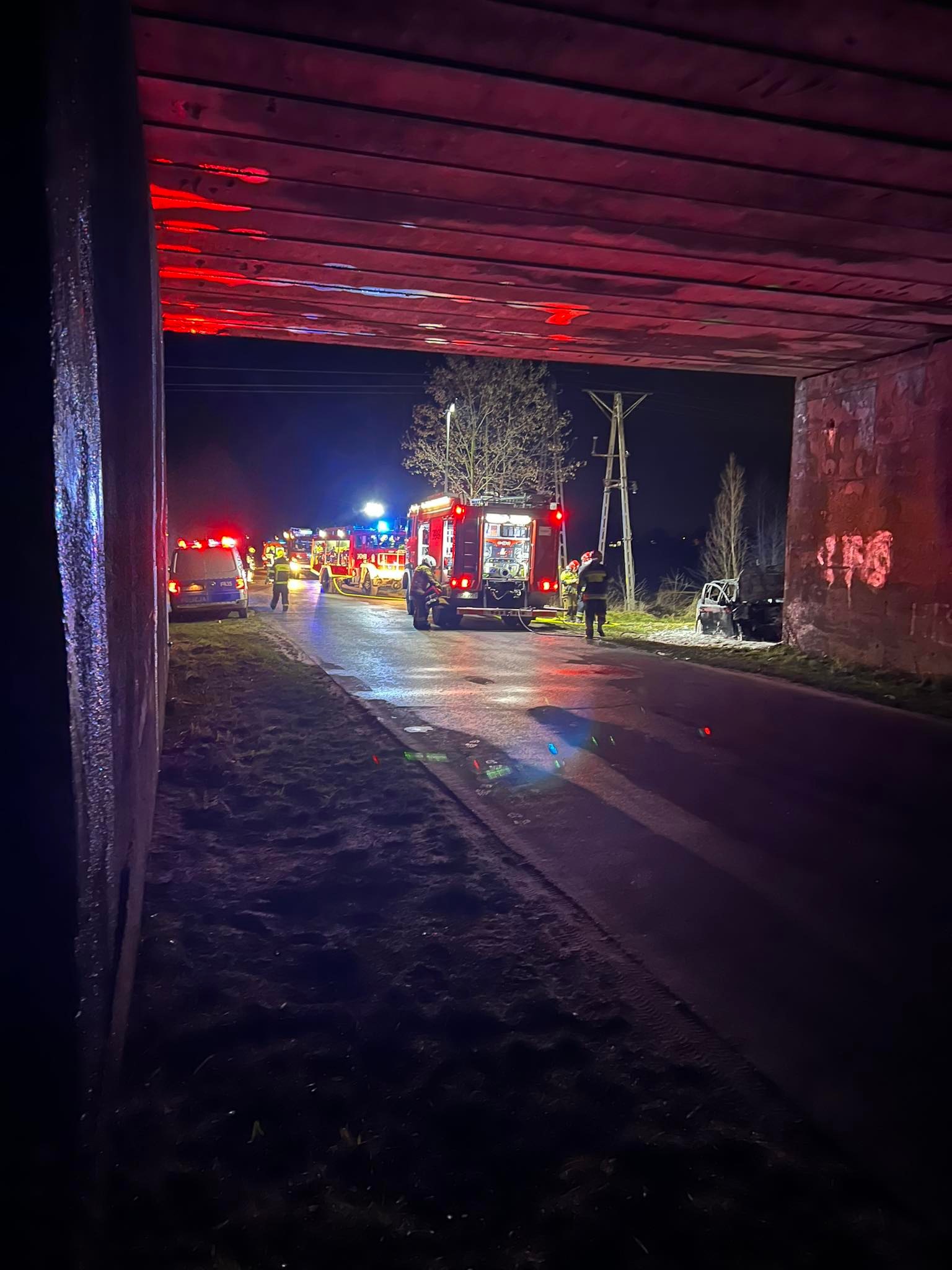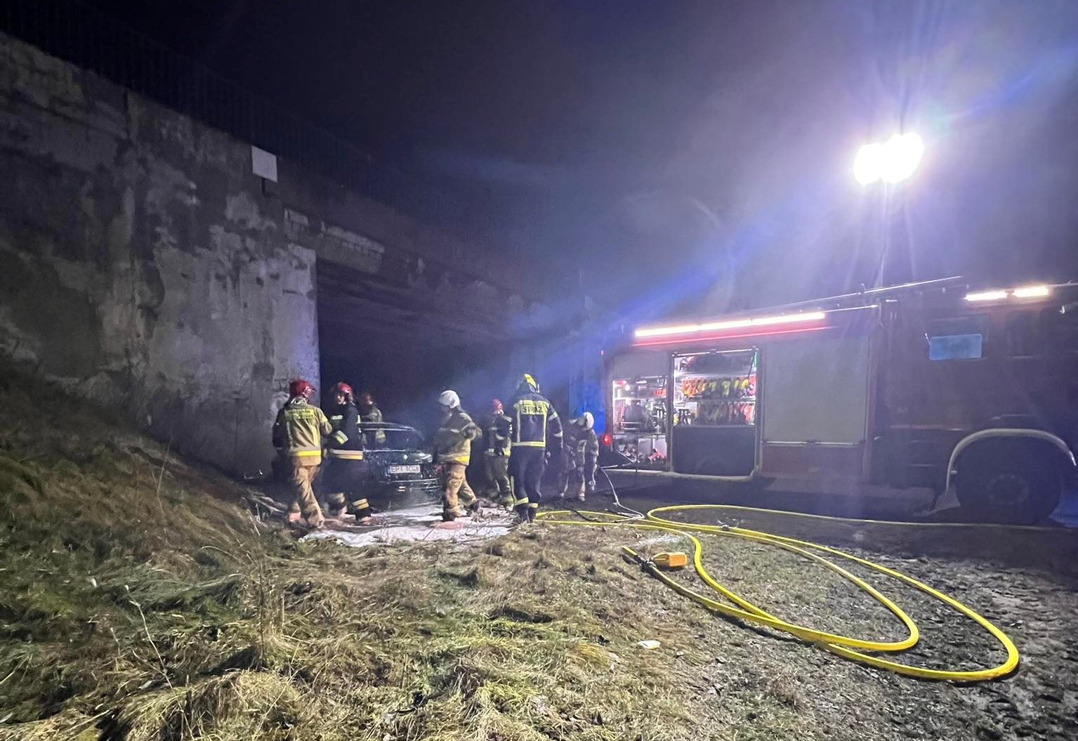 Kierowca skody stracił panowanie nad pojazdem i uderzył w podstawę wiaduktu kolejowego. W wyniku zderzenia pojazd zapalił się. 24-letni kierowca osobówki trafił do szpitala.