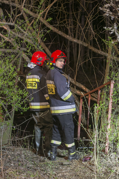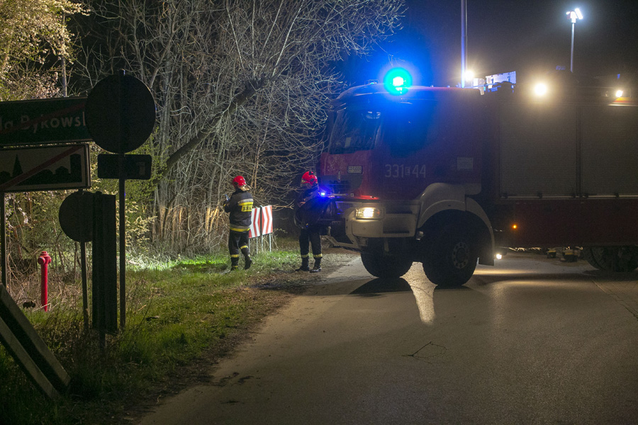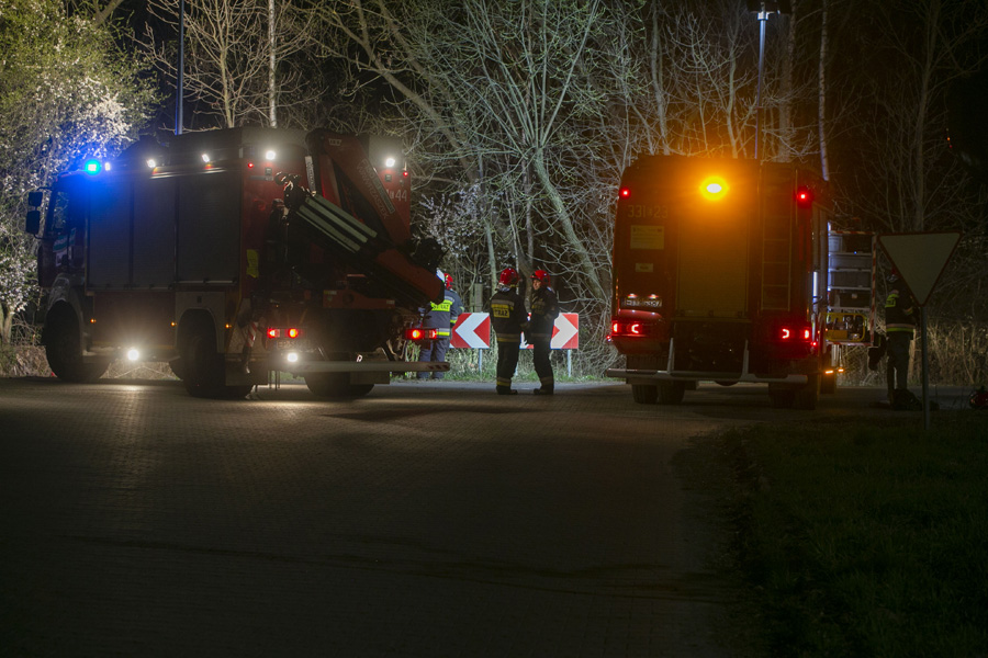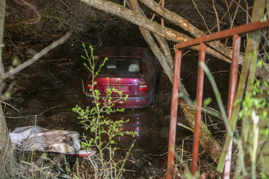 Skoda prawdopodobnie jechała ulicą pomiędzy magazynami od strony dk91. W pewnym momencie jezdnia się kończy rozwidleniem w prawo i w lewo. Kierowca nie zdołał jednak wyhamować pojazdu, staranował bramę i wpadł do niewielkiego stawu. Po dojeździe na miejsce służb ratunkowych (między innymi z OSP Brzoza), okazało się, że w samochodzie nikogo nie ma.