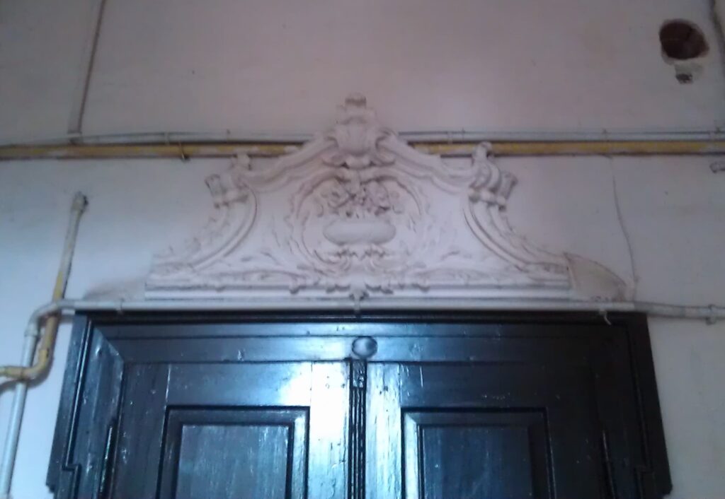 - Jeden z zachowanych supraportów nad drzwiami wejściowymi do mieszkania w kamienicy przy alei 3 Maja 23.