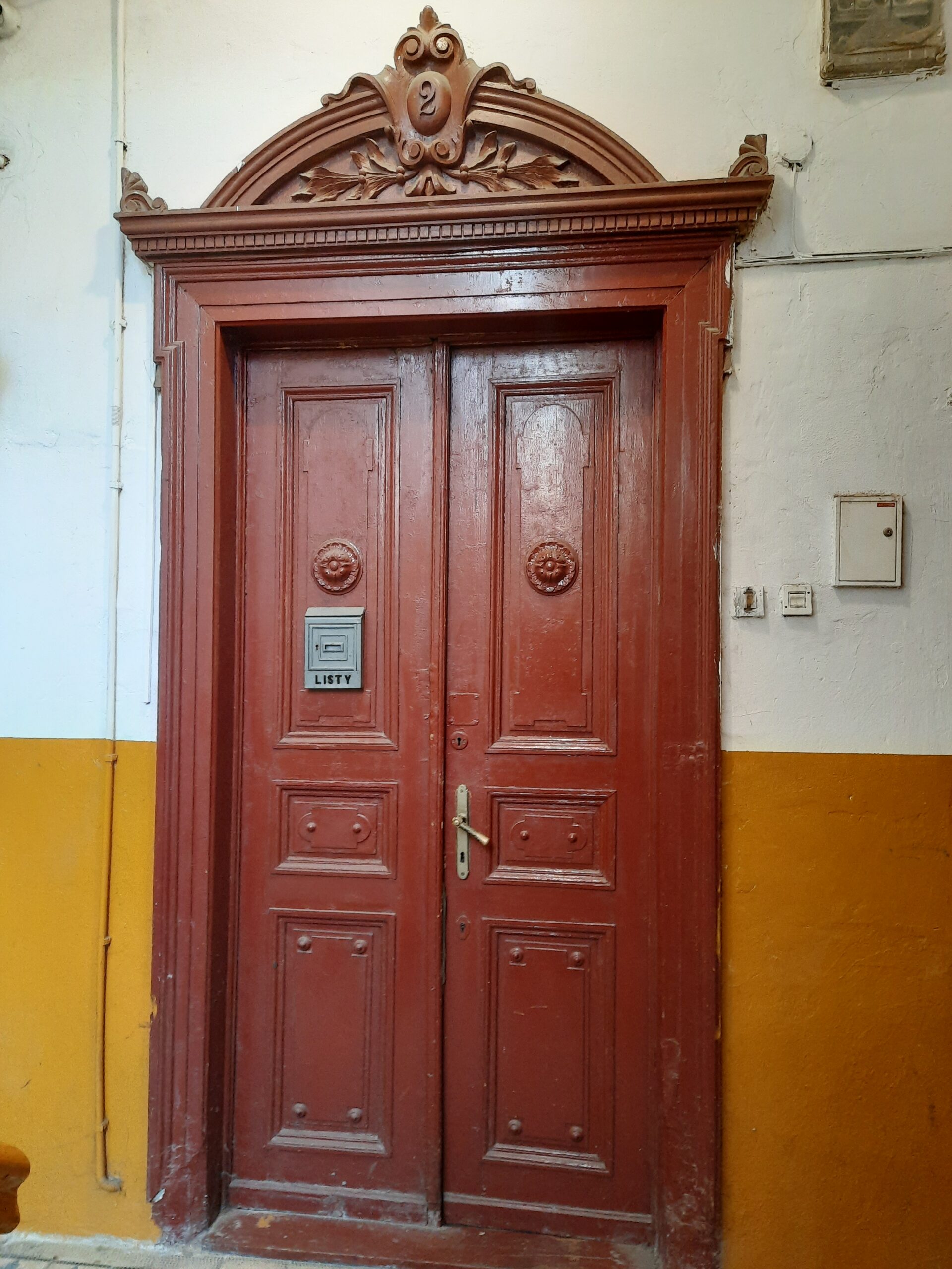 - Oryginalne drzwi wejsciowe do mieszkania z zachowanym supraportem. Dąbrowskiego 3.
