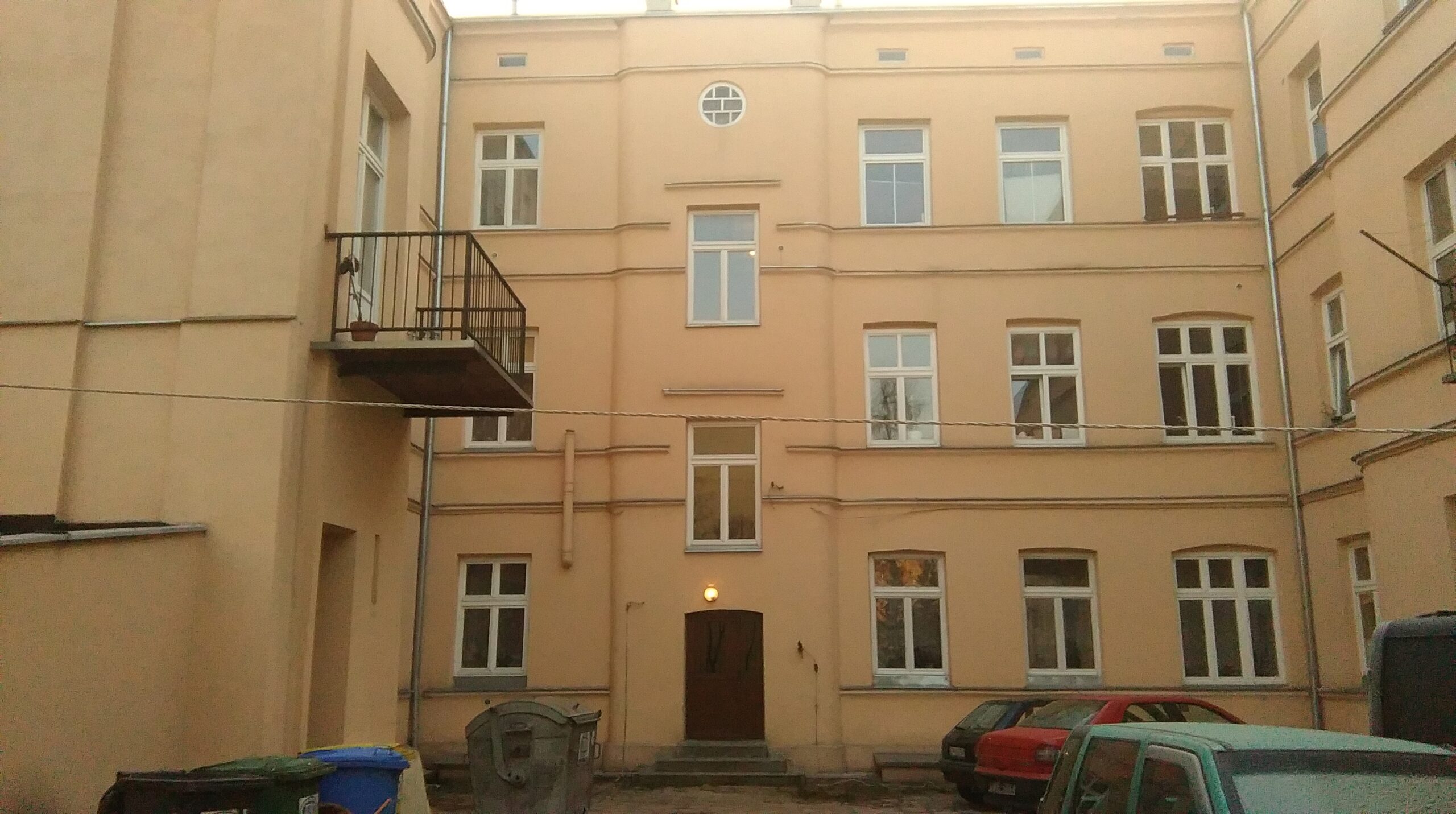 - Elewacje kamienic czynszowych od strony podwórza pozbawione były dekoracji – podwórze kamienicy przy alei 3 Maja 23