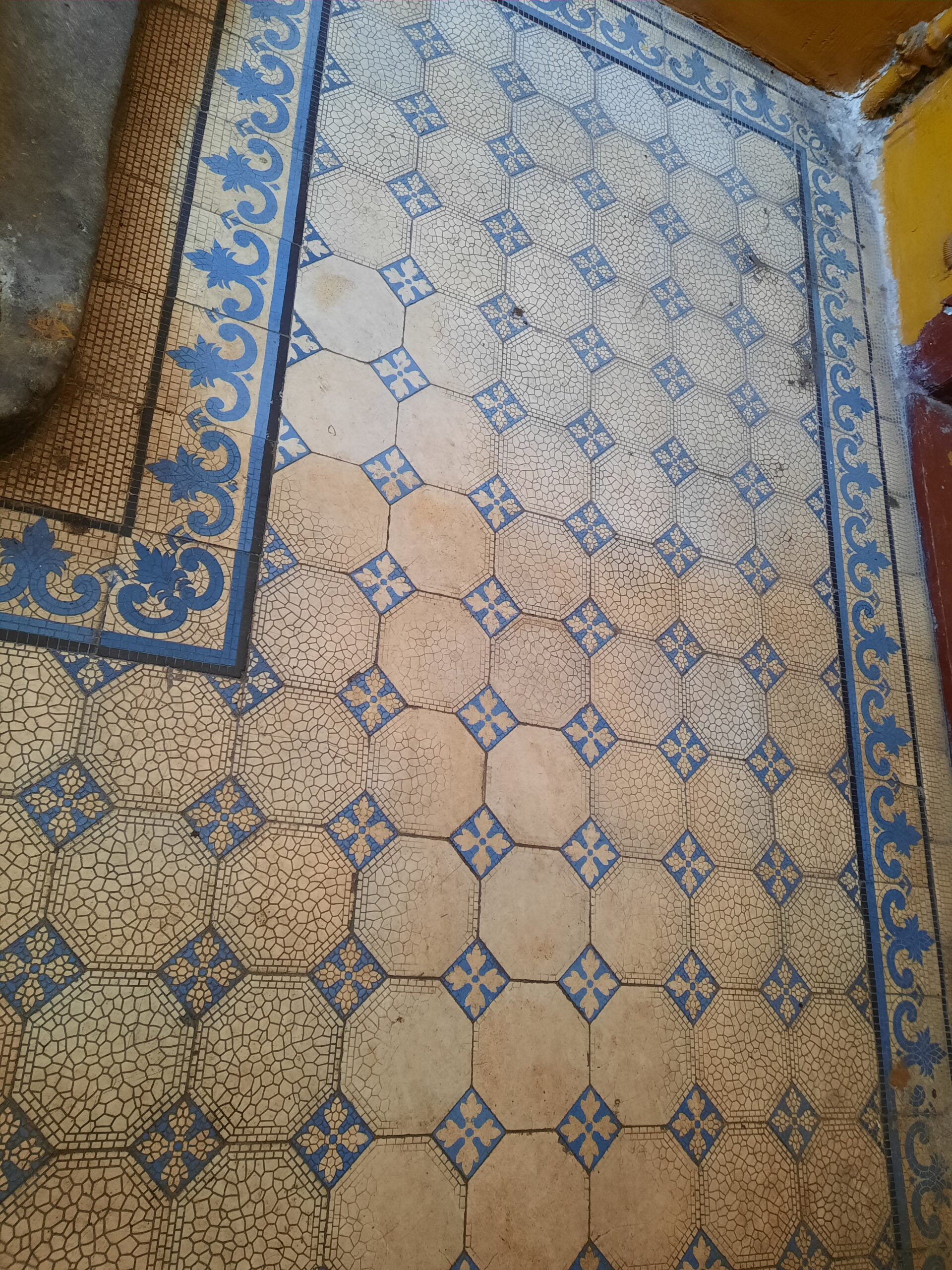 - Ceramiczne dywaniki, czyli płytki podłogowe – w czasach gubernialnych zdobiły klatki schodowe najbardziej reprezentacyjnych kamienic w Piotrkowie.