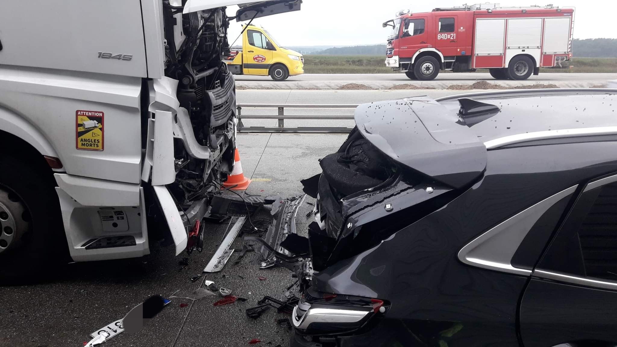 Jak udało nam się nieoficjalnie ustalić, kierujący samochodem osobowym kia, bez powodu zatrzymał się na autostradzie. Jadący za nim samochód ciężarowy, nie zdołał wyhamować i uderzył w tył osobówki. Kią podróżowała trzyosobowa rodzina. Pasażerka samochodu pomimo reanimacji zmarła.