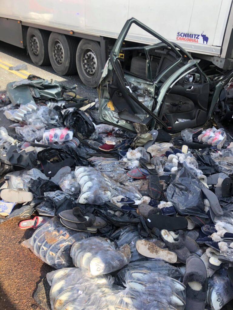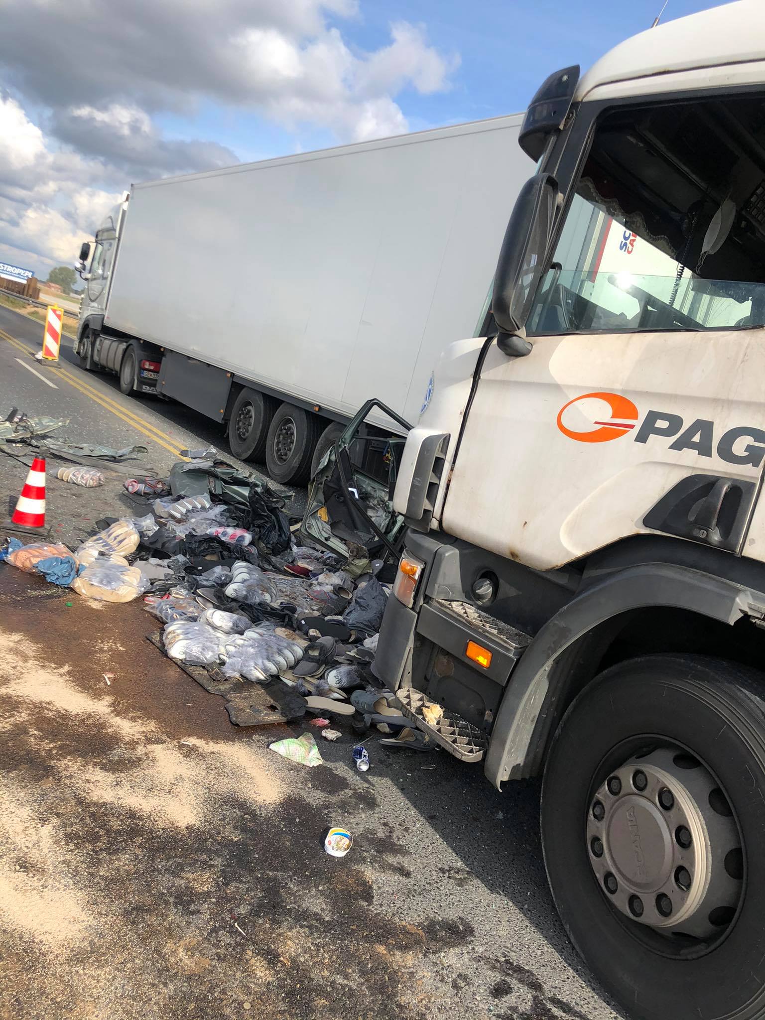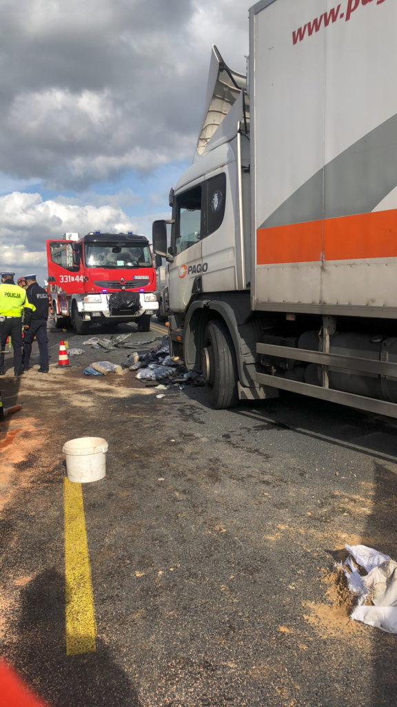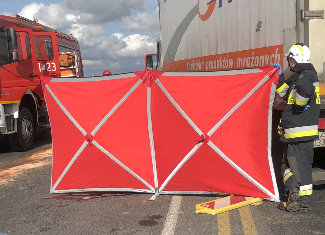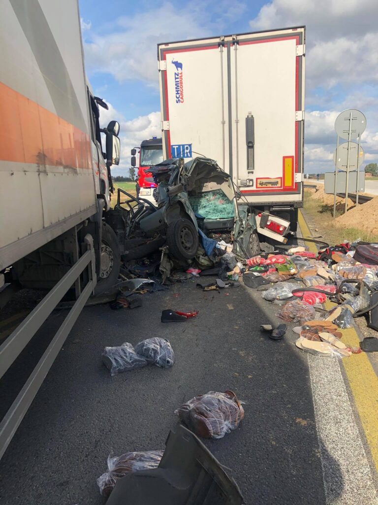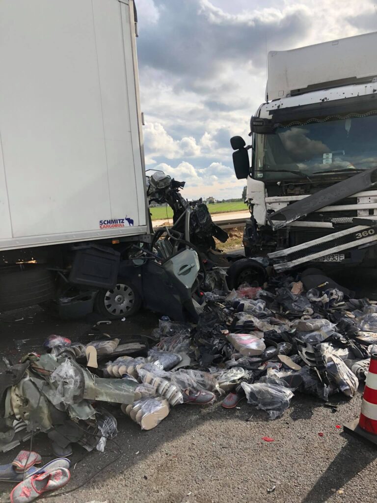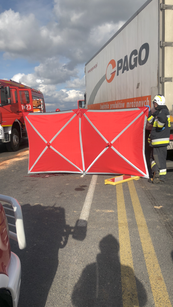 Do wypadku doszło około 12:45 na przebudowywanej krajowej „1” na wysokości Gąsek na nitce w kierunku Piotrkowa. Ciężarowa scania uderzyła w tył osobowej skody octavii i wbiła ją pod poprzedzającą ją inną ciężarówkę. Kierowcy samochodu osobowego pomimo reanimacji nie udało się uratować. Kierujący tirami byli trzeźwi.