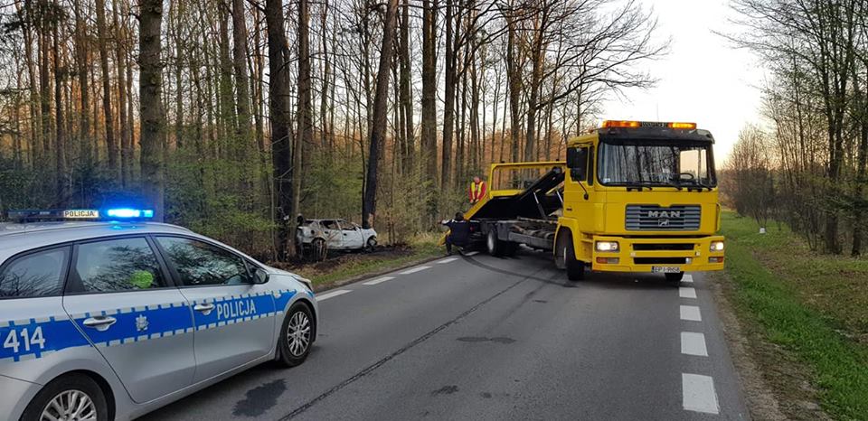 33-letnie kobieta zginęła w wypadku samochodowym do którego doszło około 3:15 w nocy w sobotę wielkanocną. Po wypadku, samochód kierowany przez mieszkankę powiatu tomaszowskiego, stanął w płomieniach. Do zdarzenia doszło w lesie pod Moszczenicą.