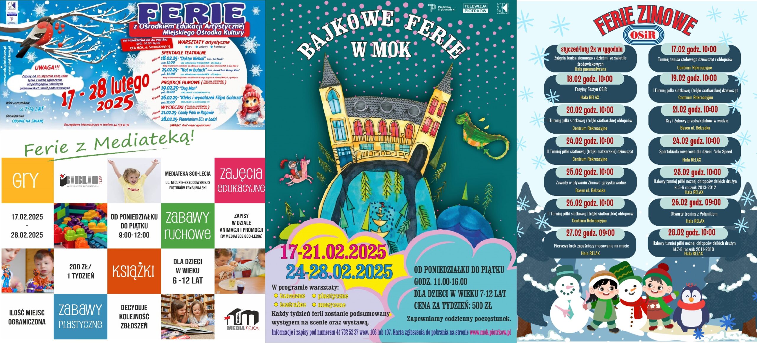 Zima to doskonały czas na odpoczynek, relaks i zabawę, a ferie zimowe to świetna okazja, by spędzić ten czas w sposób aktywny, twórczy i pełen wrażeń. W Piotrkowie będą trwały od 17 lutego do 2 marca, a miejskie instytucje przygotowały szereg atrakcji dla dzieci i młodzieży. Zapraszamy do zapoznania się z wydarzeniami.