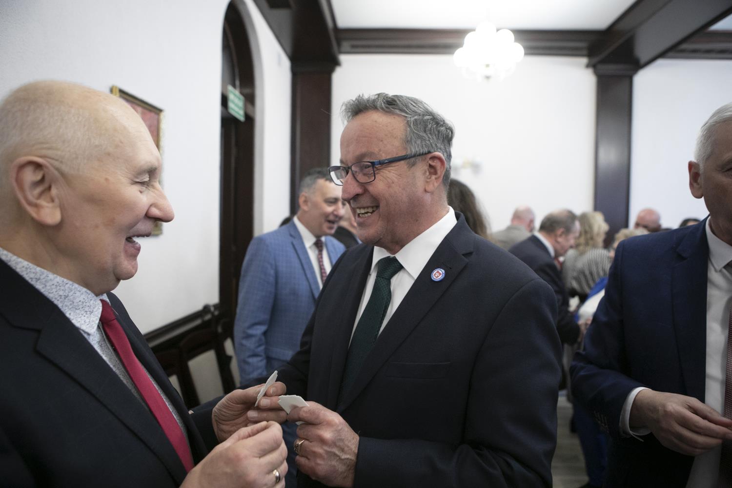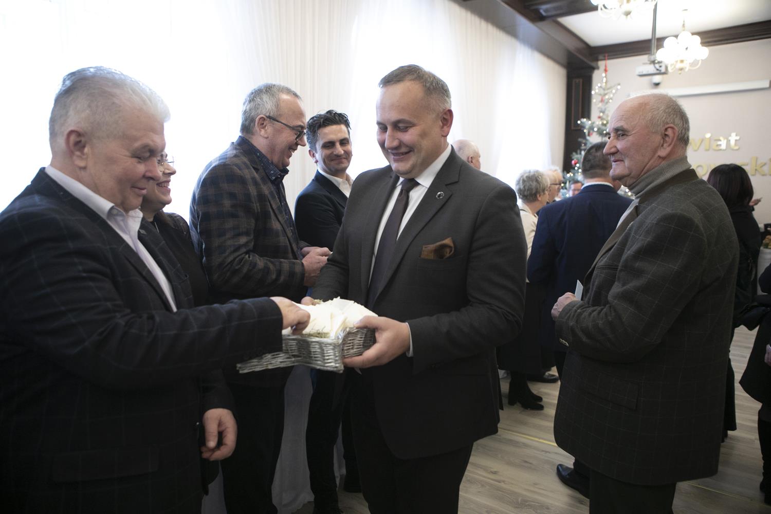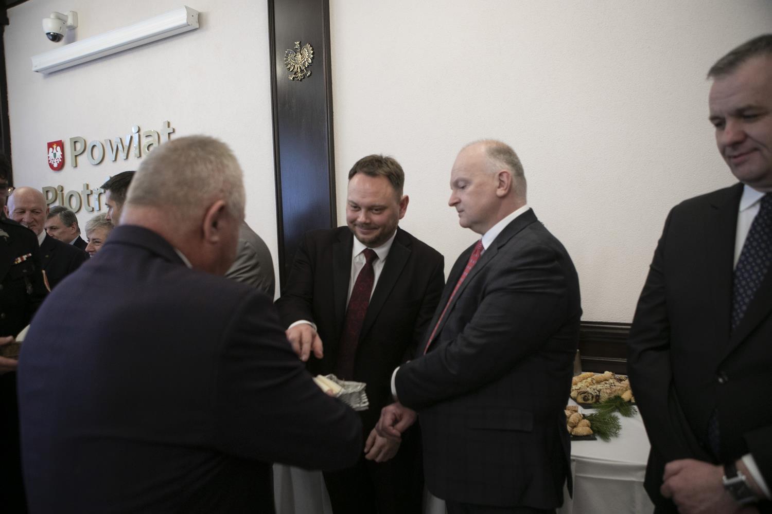 Spotkanie opłatkowe samorządowców ziemi piotrkowskiej (ale nie tylko) odbyło się w środę w starostwie. Na zaproszenia starosty Piotra Wojtysiaka i Przewodniczącego Rady Powiatu Bernarda Matyszewskiego, odpowiedzieli radni powiatowi i miejscy, burmistrzowie i wójtowie gmin powiatu piotrkowskiego oraz niektórzy samorządowcy z radomszczańskiego i łódzkiego-wschodniego, kombatanci, seniorzy, przedstawiciele służb mundurowych a także innych instytucje współpracujących z powiatem piotrkowskim. W spotkaniu brali udział przedstawiciele duchowieństwa oraz lokalnego biznesu. W tym dniu także harcerze przekazali także Betlejemskie Światełko Pokoju. Spotkanie opłatkowe swój początek miało na jarmarku świątecznym przy Powiatowym Centrum Przesiadkowym. Wyjątkowości wydarzeniu dodało wspólne kolędowanie razem z Zespołem Pieśni i Tańca „Gorzkowice”. Choinkę rozświetliły przedszkolaki w asyście starosty.