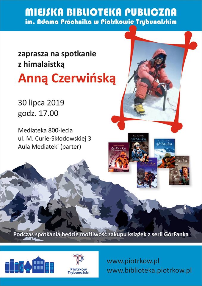 Zapraszamy na spotkanie z Anną Czerwińską, polską himalaistką, które odbędzie się w Mediatece 800-lecia, 30 lipca (wtorek) o godz 17:00 w auli na parterze.
