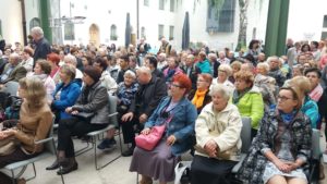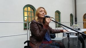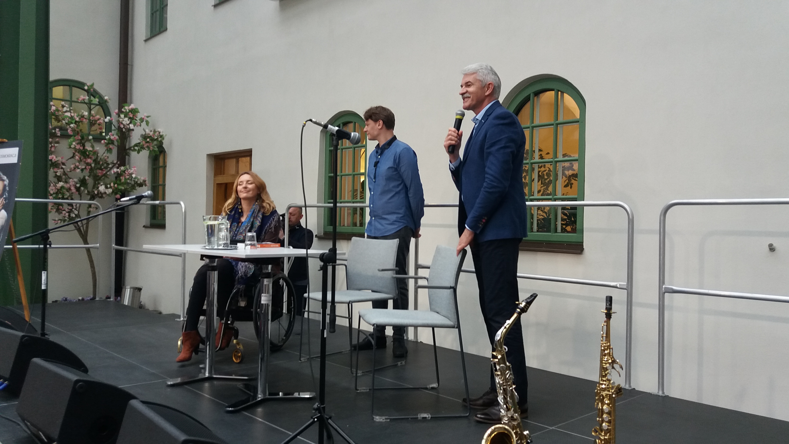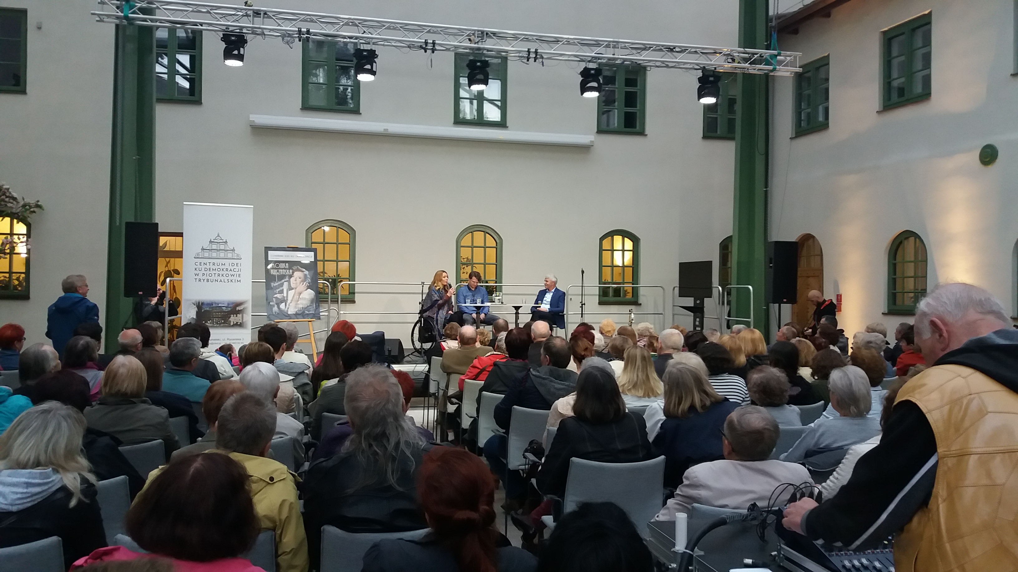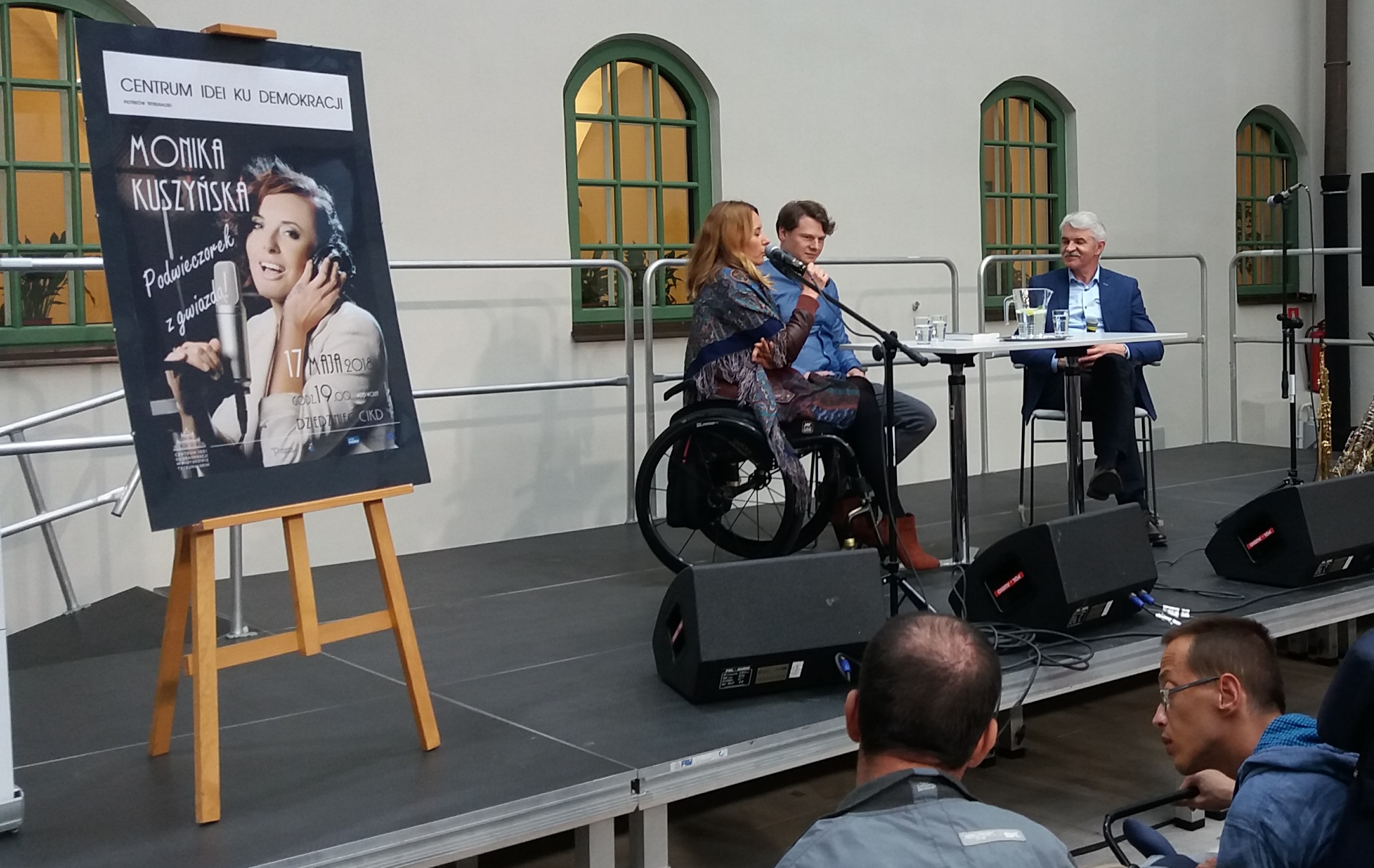 Spotkanie z cyklu „Podwieczorek z gwiazdą…” zorganizowano tradycyjnie na dziedzińcu klasztoru Panien Dominikanek. Letnia scena Centrum Idei Ku Demokracji, pękała w szwach. Sala wypełniła się po brzegi na długo przed rozpoczęciem spotkania. Z Moniką Kuszyńską udało nam się porozmawiać zanim pojawiła się na scenie.