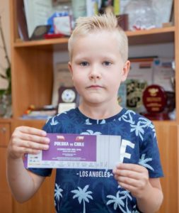 W czwartek w siedzibie piotrkowskiego OZPNu, bilety trafiły do rodziny pana Damiana. – Bardzo się cieszę, że udało nam się wygrać te bilety, wprawdzie nasza rodzina jest trzyosobowa, a bilety są tylko dwa, to będziemy musieli uzgodnić kto pojedzie do Poznania – mówił z uśmiechem pan Damian. Przy okazji siedmioletni Wiktor, jednym tchem wymienia po kolei skład reprezentacji: – Błaszczykowski, Glik, Szczęsny, Grosicki, Peszko, Krychowiak, Fabiański, Pazdan, Milik, Zieliński, Lewandowski… Okazuje się, że chłopiec gra w piłkę na pozycji napastnika, a jego marzeniem jest zostać następcą Lewandowskiego. I nagle wspaniałomyślnie córka Julia, oddaje swój bilet tacie, tak by ojciec z synem mieli swój „męski wieczór”.