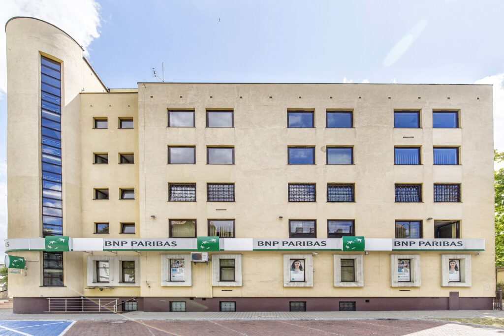 Budynek powstał w 1969 r., adaptacja i remont odbył się w latach 1994- 1995, a docieplenie w 2001 r. Powierzchnia użytkowa: 1.031 m2. To budynek 5-kondygnacyjny, maszynownia dźwigu znajduje się na 6 kondygnacji. Obiekt jest podpiwniczony, w zabudowie zwartej. W piwnicach znajduje się część magazynowo-gospodarcza i techniczna (bankomat, archiwum, kotłownia, skarbiec). Na parterze zlokalizowano salę obsługi klienta, pomieszczenia ochrony, komunikację. Na pozostałych kondygnacjach znajdują się pomieszczenia biurowe i socjalne wraz z komunikacją.