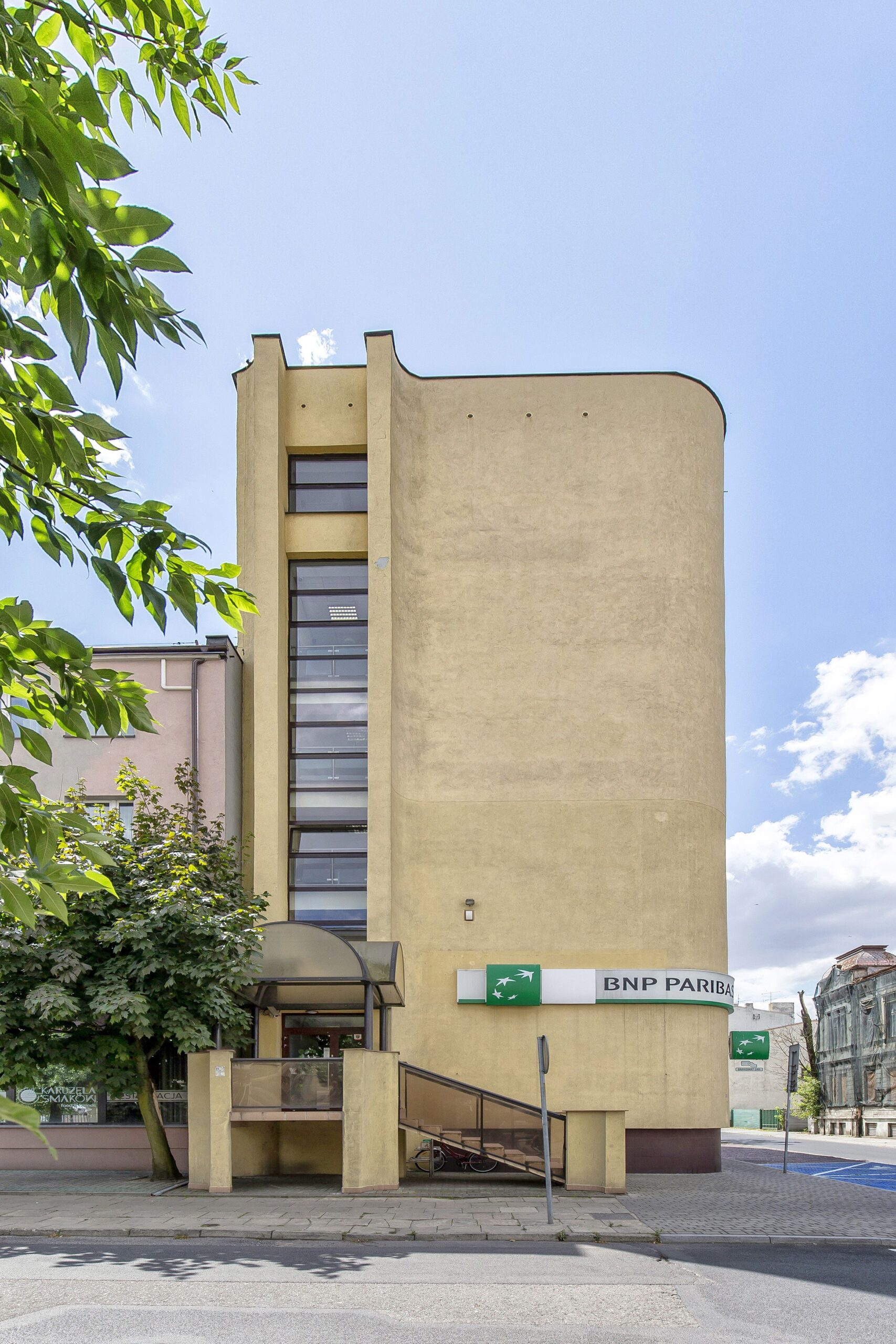 Budynek powstał w 1969 r., adaptacja i remont odbył się w latach 1994- 1995, a docieplenie w 2001 r. Powierzchnia użytkowa: 1.031 m2. To budynek 5-kondygnacyjny, maszynownia dźwigu znajduje się na 6 kondygnacji. Obiekt jest podpiwniczony, w zabudowie zwartej. W piwnicach znajduje się część magazynowo-gospodarcza i techniczna (bankomat, archiwum, kotłownia, skarbiec). Na parterze zlokalizowano salę obsługi klienta, pomieszczenia ochrony, komunikację. Na pozostałych kondygnacjach znajdują się pomieszczenia biurowe i socjalne wraz z komunikacją.