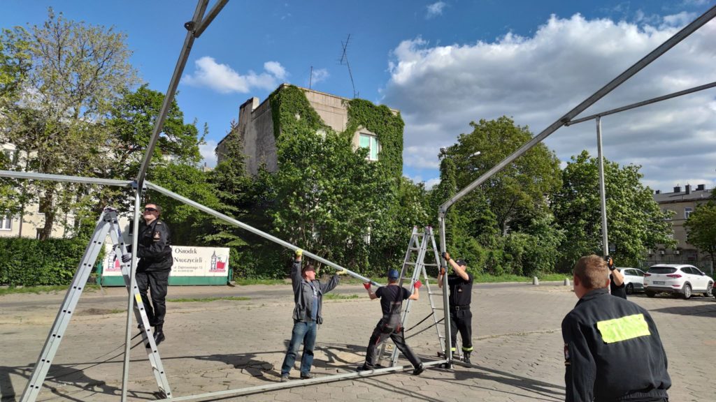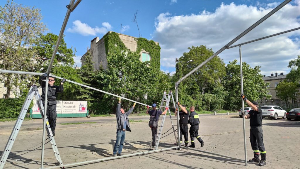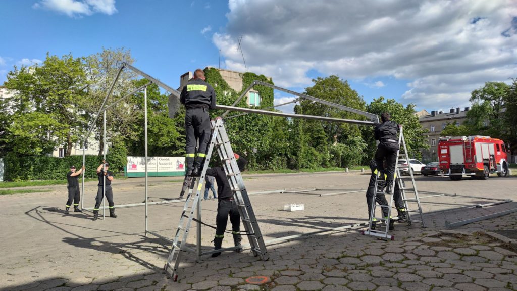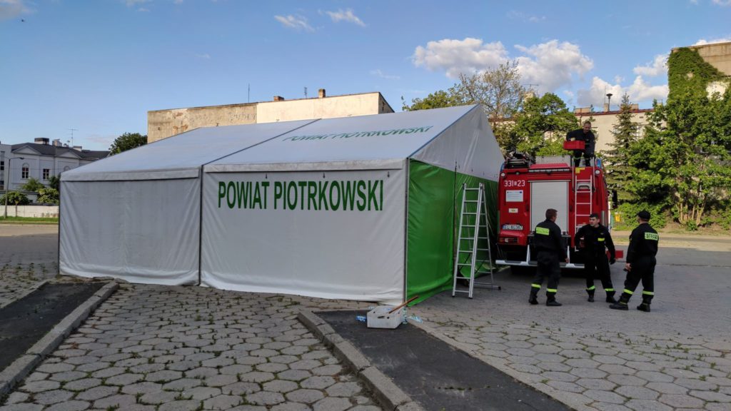 Konstrukcję namiotu postawili w miniony weekend strażacy wraz z pracownikami starostwa. – Punkt umożliwi przeprowadzenie szybkiego wymazu na obecność koronawirusa. Badanie potrwa zaledwie 10 minut, a to wszystko bez wysiadania z samochodu. Na wyniki trzeba będzie poczekać, bowiem wymazy przesyłane będą do akredytowanego laboratorium – powiedział w rozmowie z nami starosta piotrkowski Piotr Wojtysiak. – Na badania będą kierowani do nas mieszkańcy miasta i powiatu, którym kończy się kwarantanna. Otrzymają oni specjalny SMS z sanepidu, w którym będzie informacja badaniu – dodał starosta.