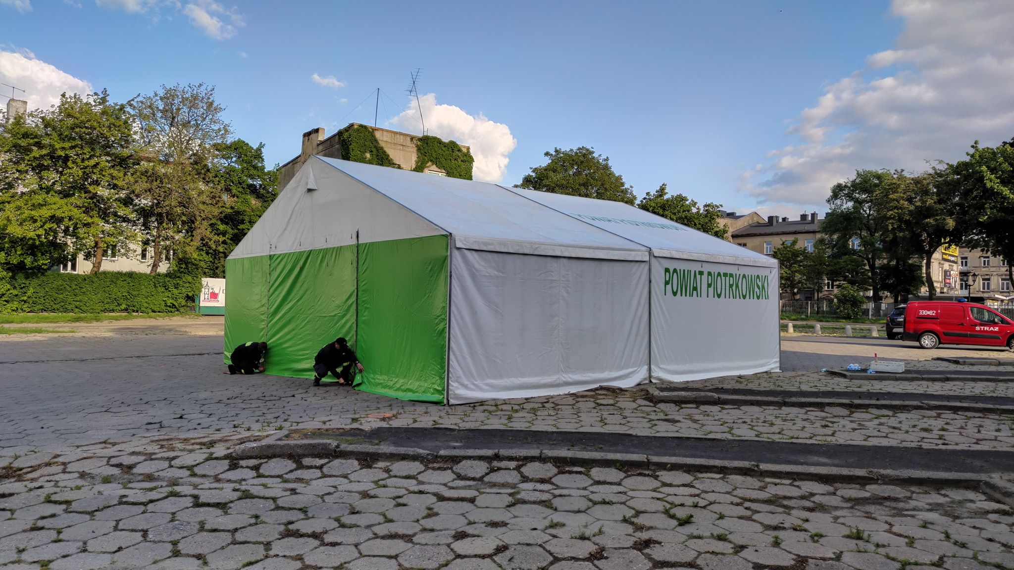 Gotowy jest już namiot w którym powstać ma punkt poboru próbek COVID-19 typu drive-thru. Namiot stanął na terenie dworca PKS w Piotrkowie a obsługiwać go będą pracownicy zatrudnieni przez Powiatowe Centrum Matki i Dziecka. NFZ zdecydowało się finansować badania, pierwsze testy mogą być wykonane choćby we wtorek. – Czekamy tylko na wpisanie naszego punktu do rejestru wojewody – mówi starosta Piotr Wojtysiak.