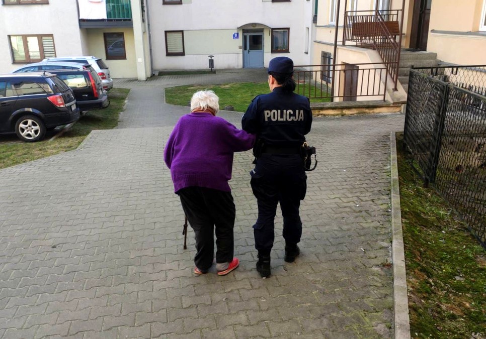 Dyżurny piotrkowskiej jednostki otrzymał zgłoszenie, że na jednym z osiedli od około godziny stoi starsza kobieta. Na miejsce od razu pojechali policjanci. Jak się okazało seniorka poruszała się o lasce i miała problem z chodzeniem.